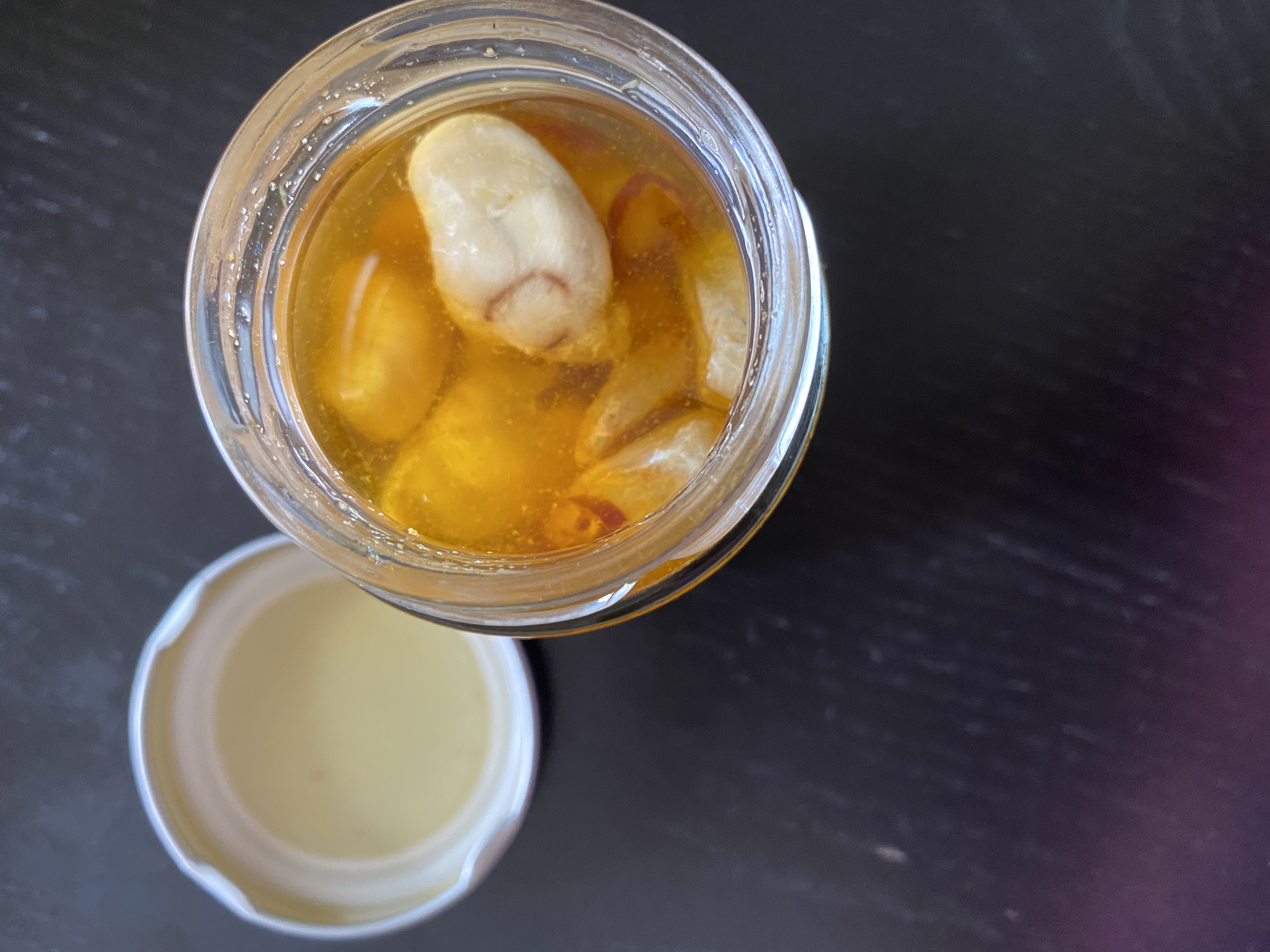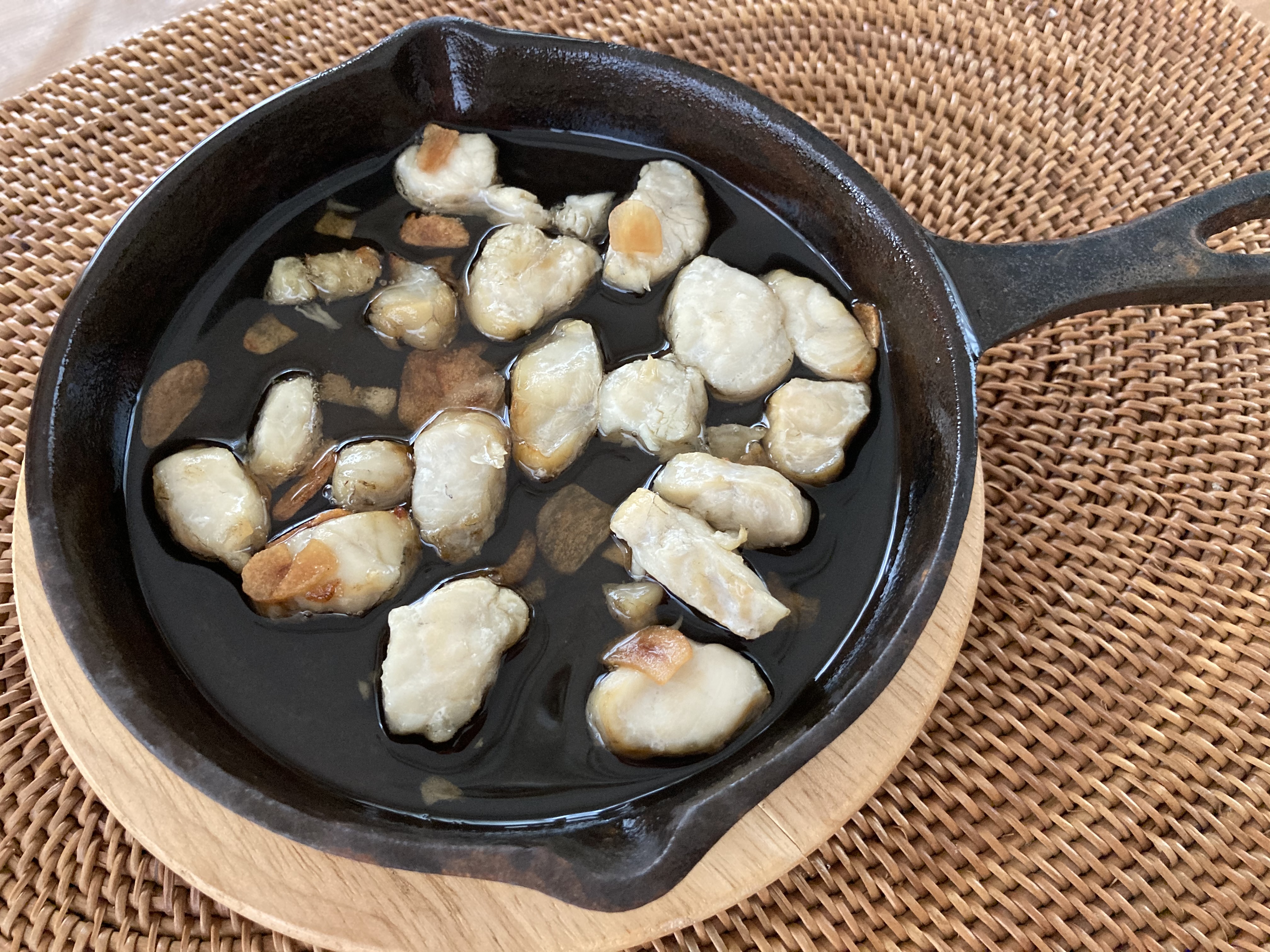 ・ガーリック…ビンから出してそのまま食べても美味しいですが、温めると一層美味しく召し上がれます。スパークリングワイン、日本酒、ビールなどのお酒のおつまみに!