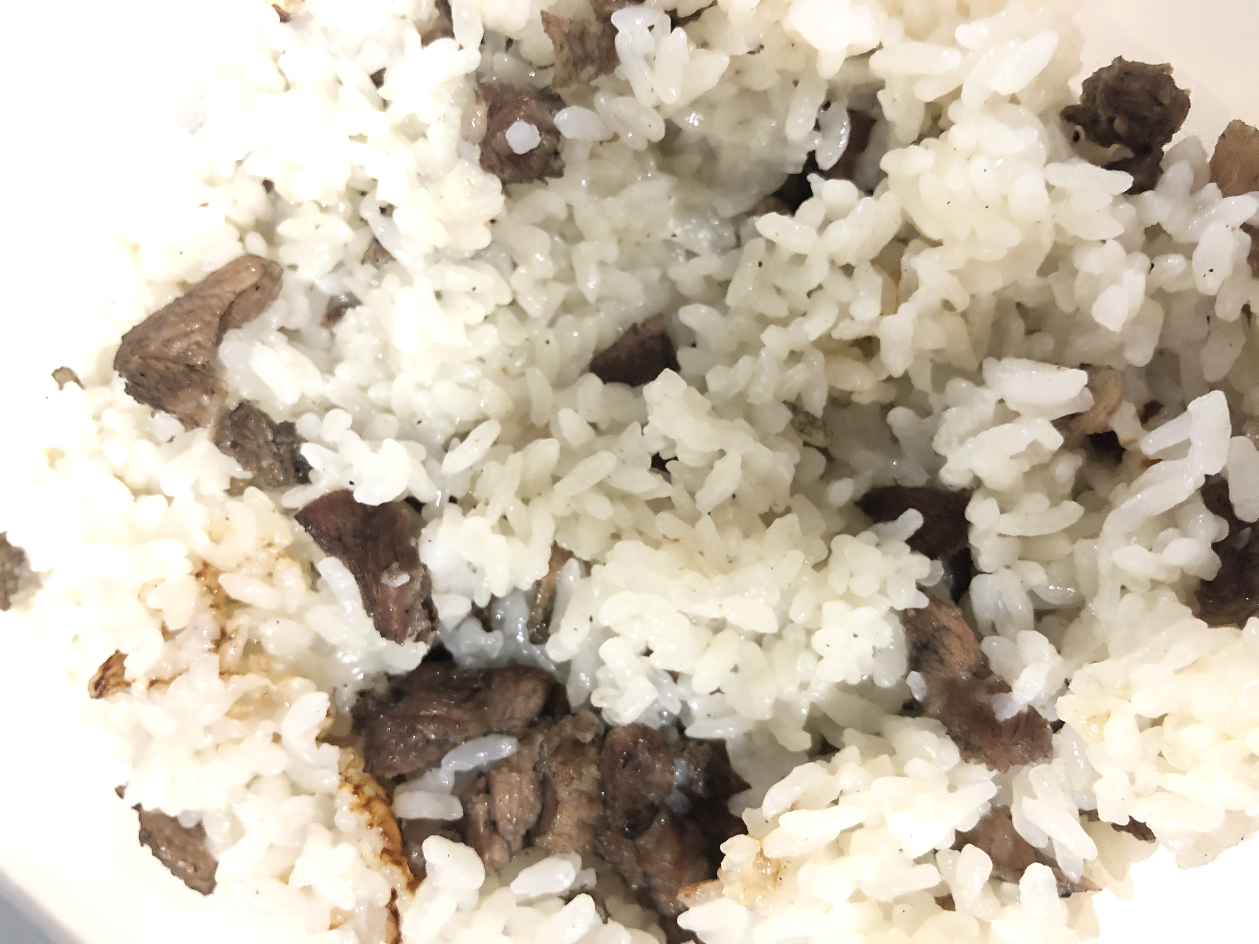 ご飯と鶏がまんべんなく混ざるようにかき混ぜました。