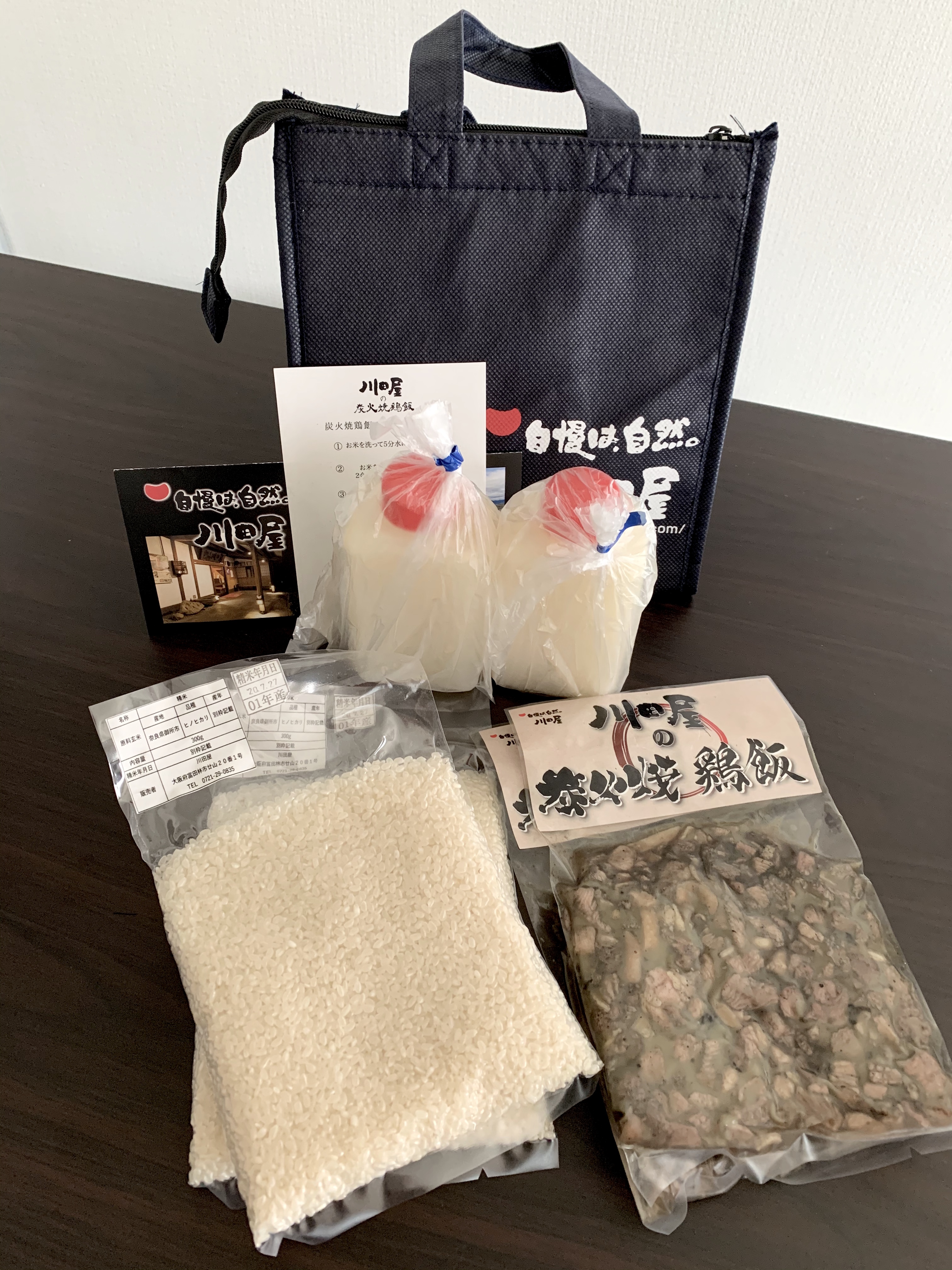 セット内容は鶏肉・お米2合(300g)・鶏ス-プ。