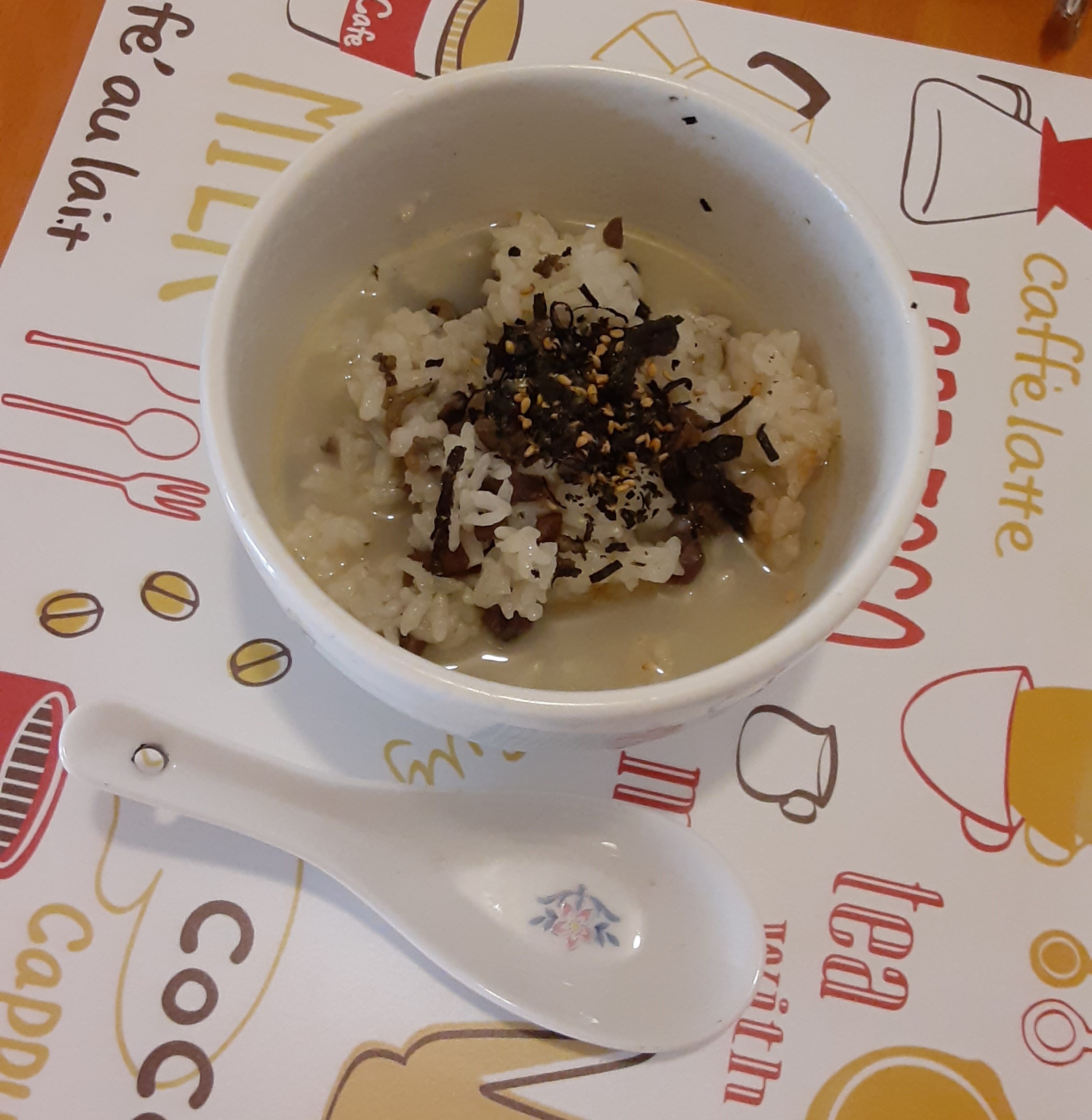 きっちり指南書通りに作ったのでお米の硬さもちょうどよい。炭火焼の鶏のうまみがお米にしみわたり最高に美味しくなっています。炭火焼ってコリコリとした歯ごたえが美味しいけれどあんまり大きいと噛むのが疲れることも。こちらの鶏はかなり小さく刻んであるので大丈夫。噛みしめるほどに鶏のうまみと炭の良い香りがお口に広がり大変美味しくて感動しました。このまま食べ続けたい気持ちを抑えつつ、第二ラウンドの鶏スープをかけていただくバージョンを。