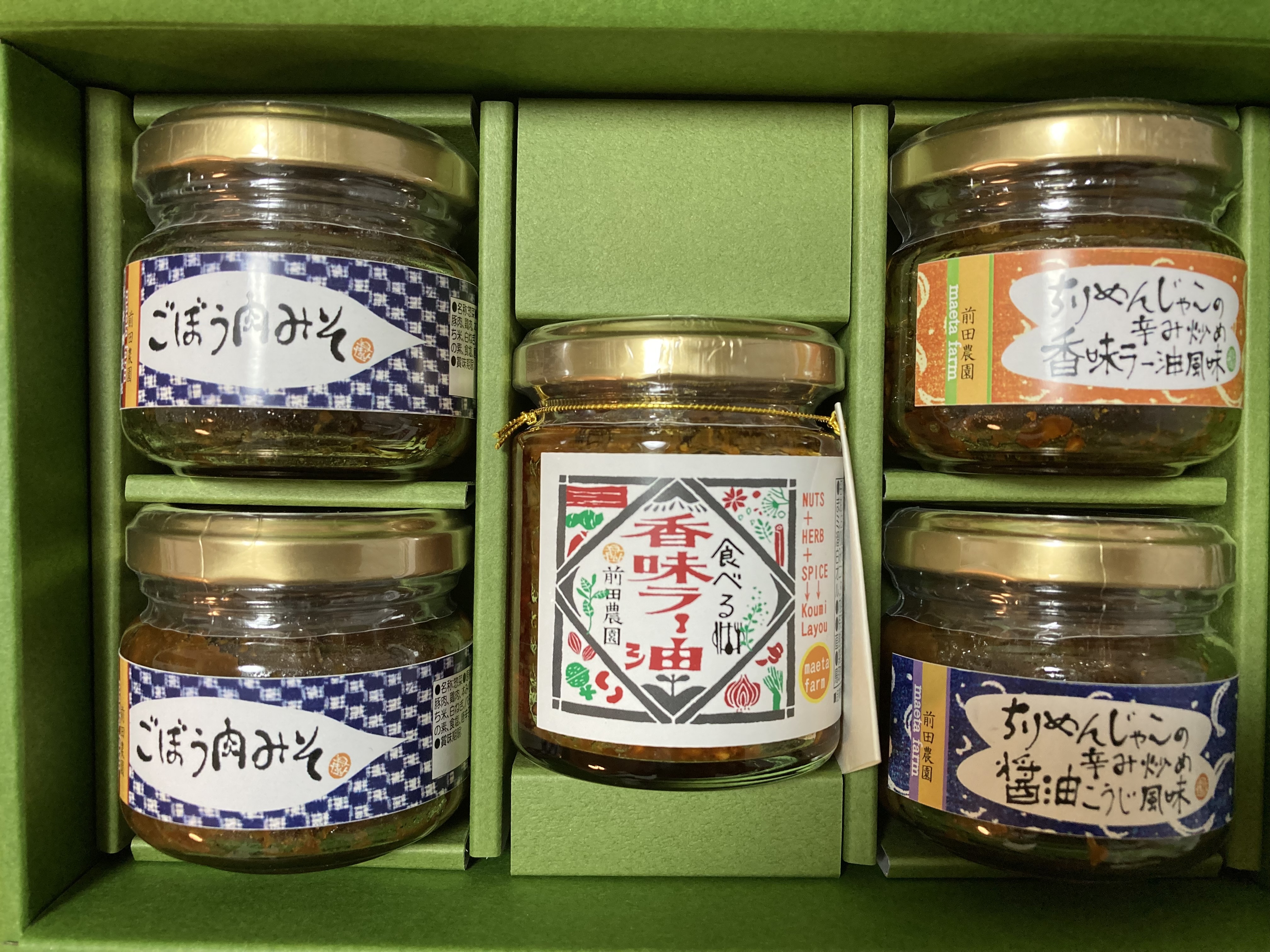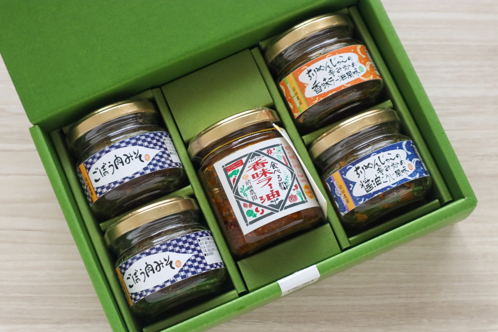 メディアで人気の「ごぼう肉みそ」を含んだ「ご飯のお供4種セット」です。砂丘ごぼうをたっぷり使用し、八丁味噌など4種の厳選味噌をブレンドした「ごぼう肉みそ」。ネギや、ニンニクなどの香味野菜に加え、ナッツやハーブ、スパイスを数種使用することで、スパイシーなのにまろやかで豊かな香りが広がる味わいを実現した「食べる香味ラー油」。その他、ちりめんじゃこを使用した「ちりめんじゃこの辛み炒め香味ラー油風味」、「ちりめんじゃこの辛み炒め醤油こうじ風味」を含んだ4種セット。ご飯のお供だけでなく調味料としても利用できる便利なアイテム。バリエーション豊富なセットなので、贈り物にもぴったりです。