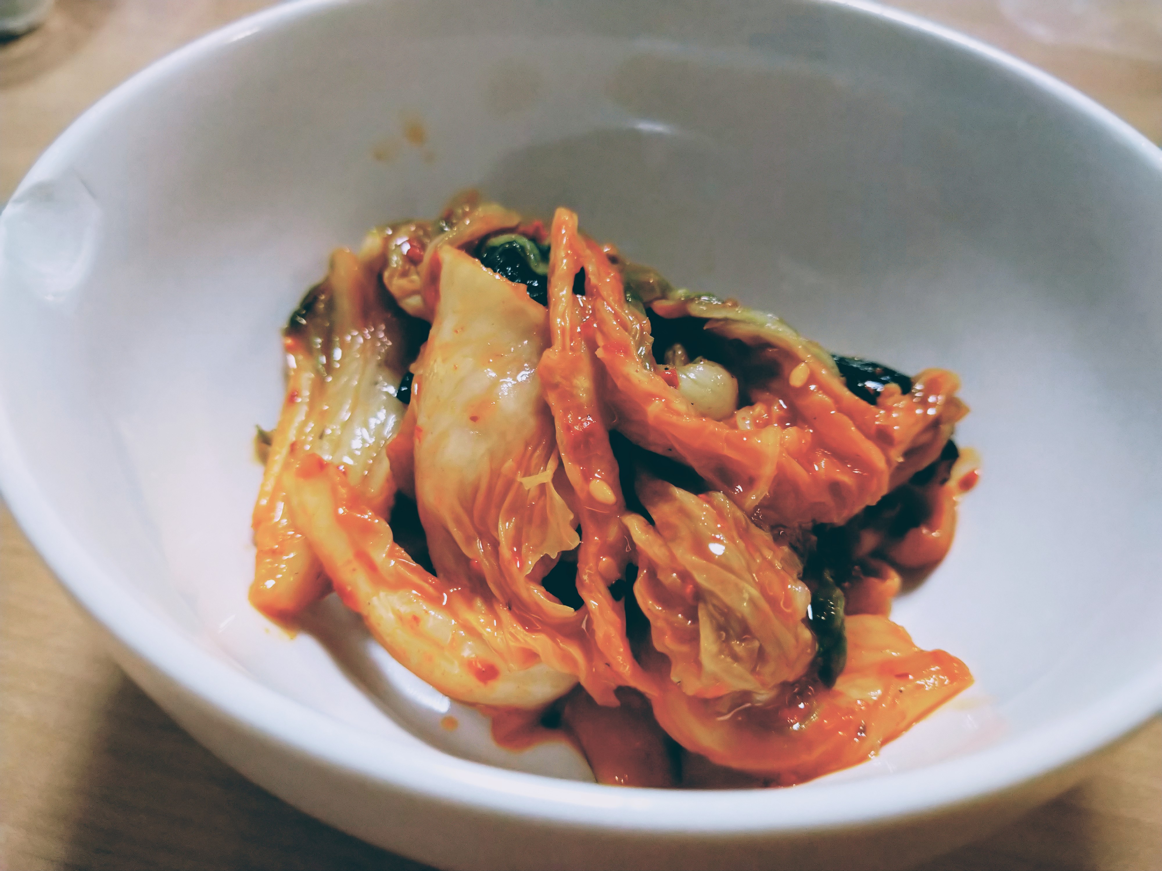 【白菜キムチ】一口食べて『あれ、あんまり辛くない…』と思いましたが、少し時間差で後から辛さがきました。ですが旨味の方が強く、嫌な辛さではありません。作ってからすぐの新鮮なキムチを発送していただけるので、白菜がとてもみずみずしく感動しました。サムギョプサルで豚肉と一緒にいただきましたが、豚肉との相性が抜群!豚肉のジューシーな脂とキムチの旨味のコラボがたまりませんでした◎一週間程度で酸味が出てくるとのことなので、そうなればチャーハンなど他の料理でも楽しんでみたいです♪