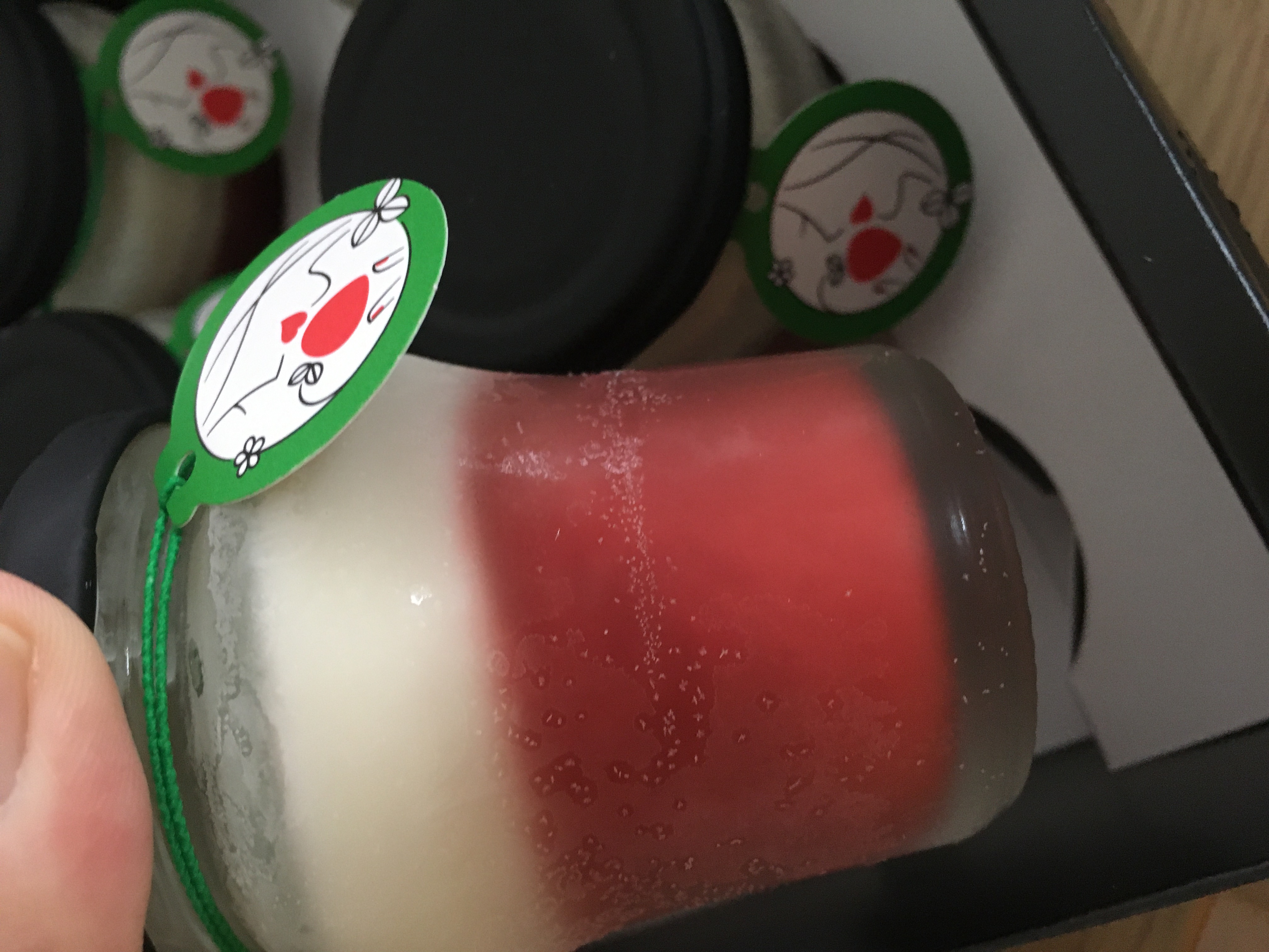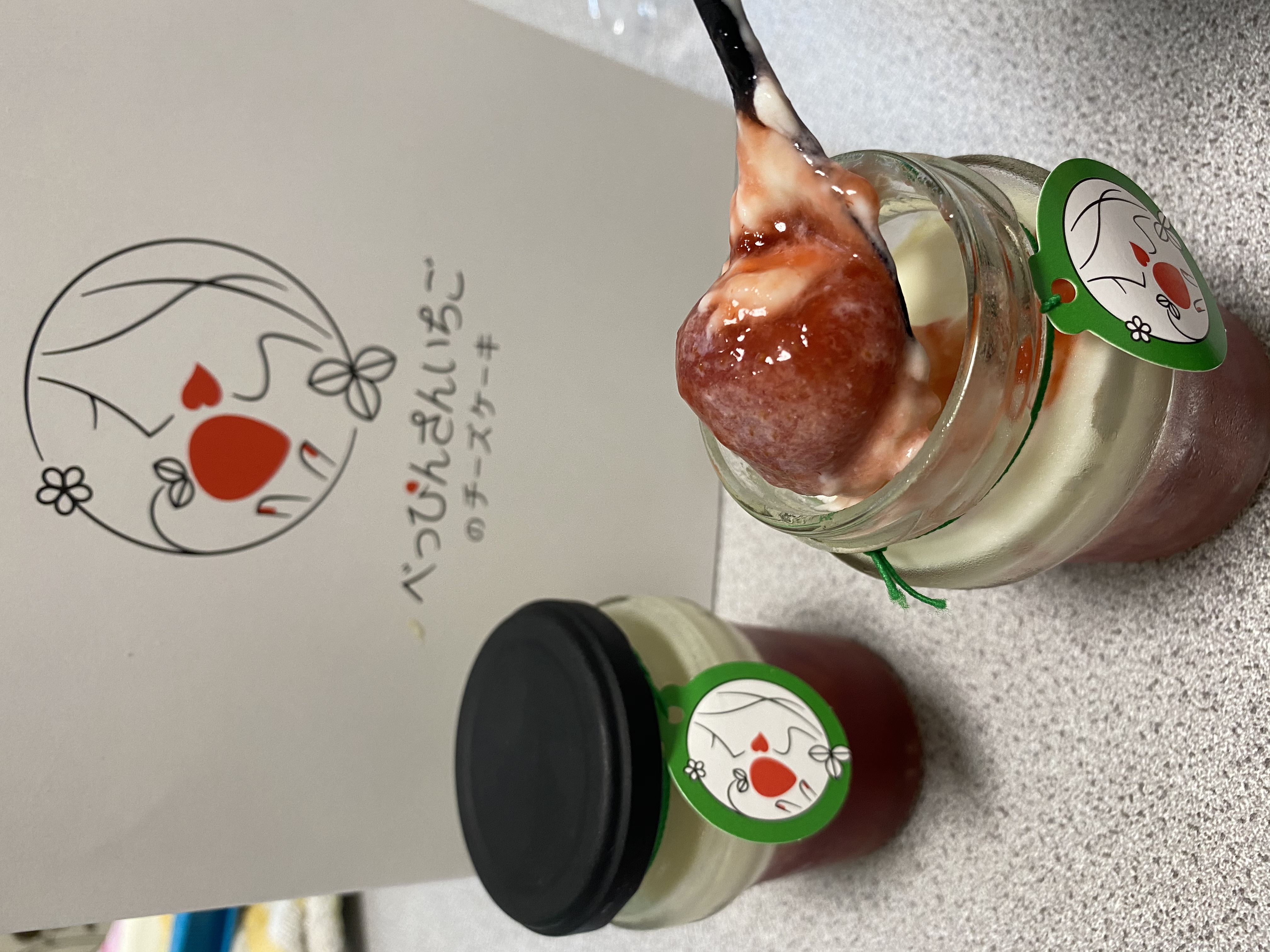 はじめての方は、箱を開けた時にビンに入れられたチーズケーキを見てまず驚くと思います。