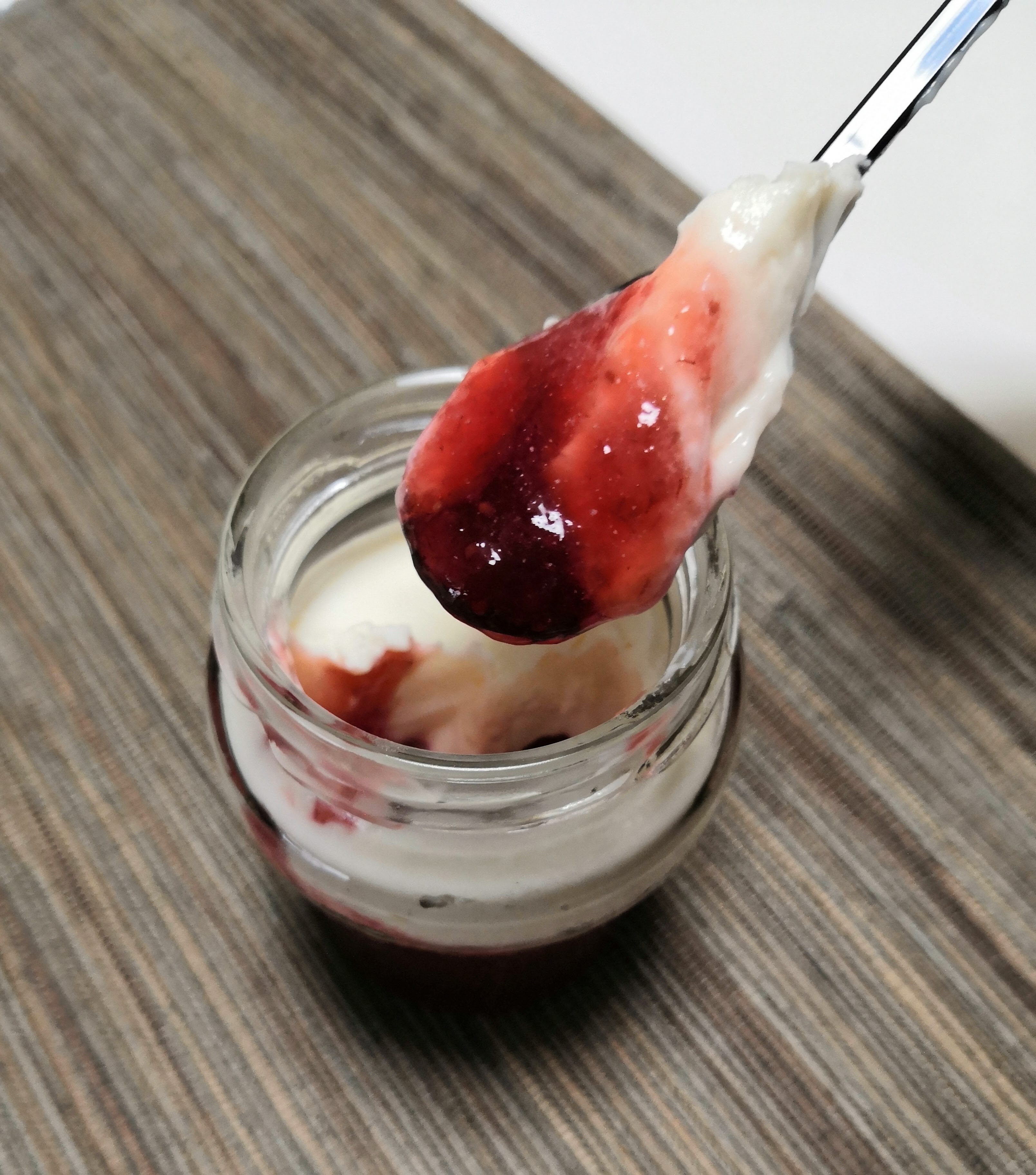 解答して食べてみましたが、上のチーズケーキがとてもなめらかで、軽い口当たりに少し塩味が効いていて、いちごのジュレの甘味と酸味、クリームチーズの塩気がバランス良く混じり合い、とても美味しく、スッキリとしたお味です。
