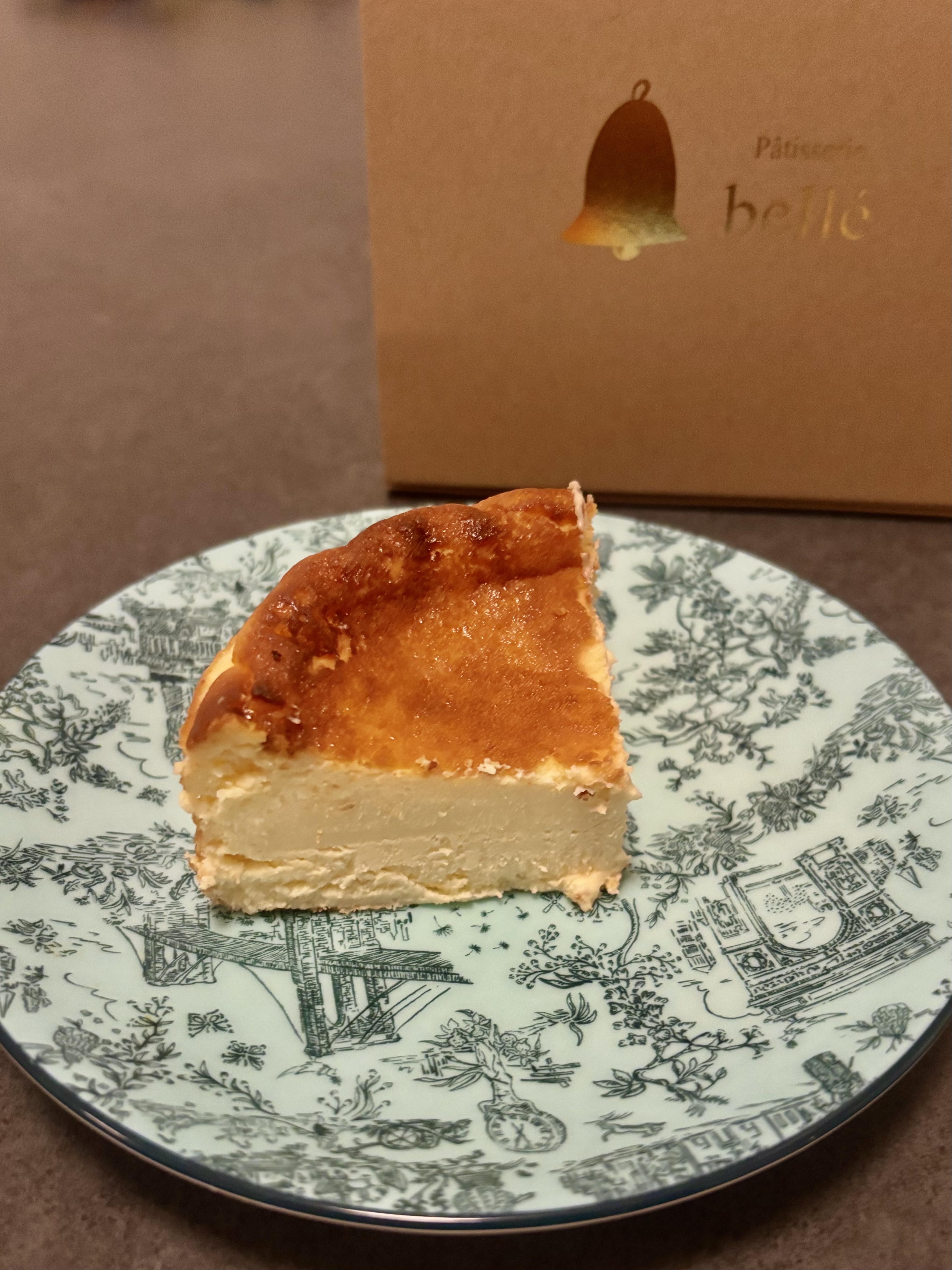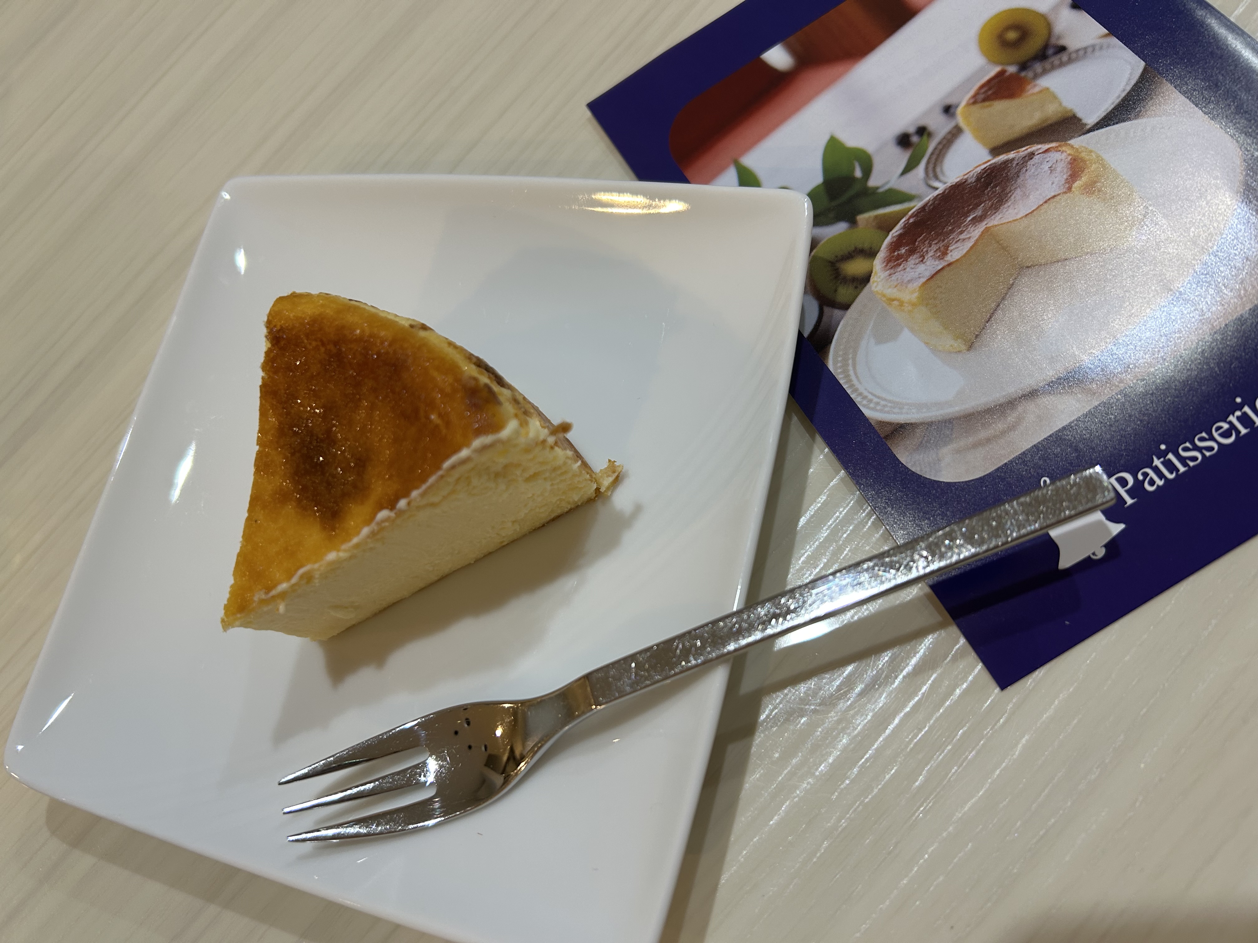 表面はこんがりと、そして中身はトロッとなめらかで、その絶妙なバランスがなんとも言えず、幸福感を醸し出します。表面のサクッとした食感を楽しんだあとの濃厚でクリーミーなチーズの味わい。かといってそのチーズの風味は決して嫌味なほど強くなく、”上品”という言葉がぴったりの逸品でした。12cmというサイズもほどよく、外観、味わい、食べた後の味の余韻などなど、すべてが満足度の高いチーズケーキでした。