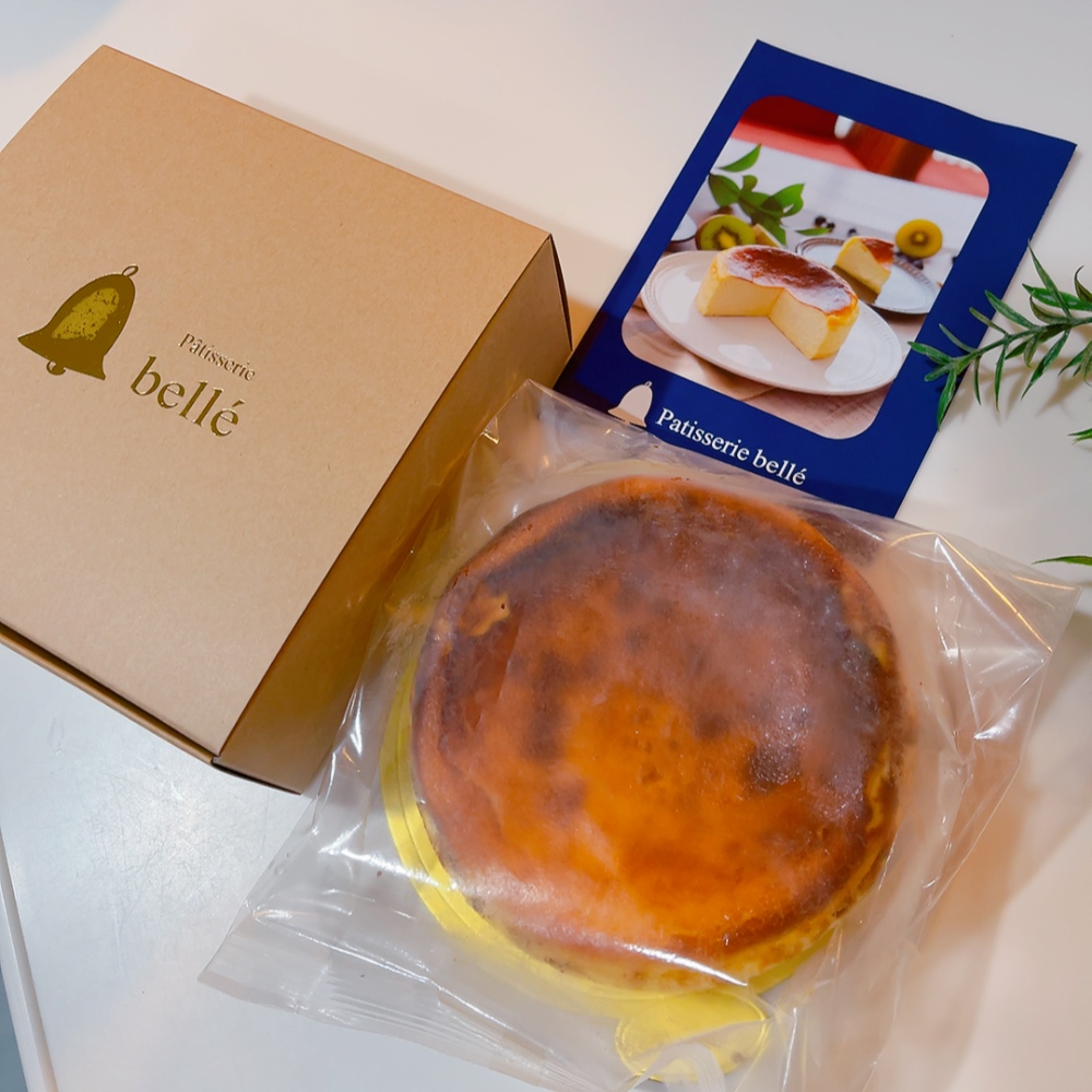 カットすると濃厚な生地がとろりと溶け出す「バスクチーズケーキ」です。表面はさくっとほどけるような食感で、中心部はチーズのなめらかな味わいを引き出すために、設定温度と焼き時間にこだわっています。家族や友人と集うティータイムや、自分へのご褒美にぴったり。店名でもあるベルのイラストを施したボックスに入って届くので、ギフトにもおすすめです。