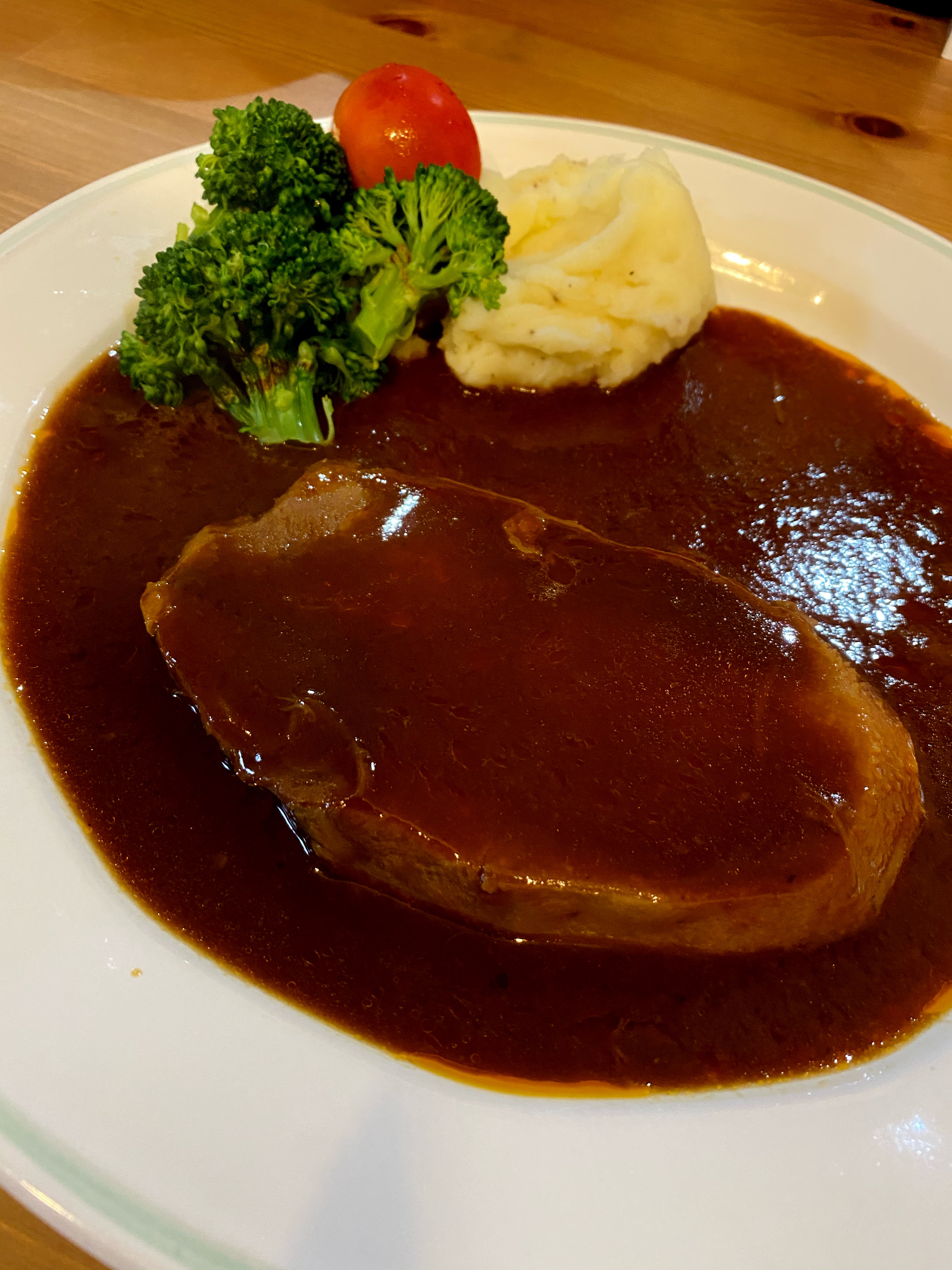 タンシチューは、おすすめの通り、マッシュポテトを付け合わせにして、赤ワインと一緒にいただきました。こちらも深みのあるお味で、トロトロで、堪能しました。