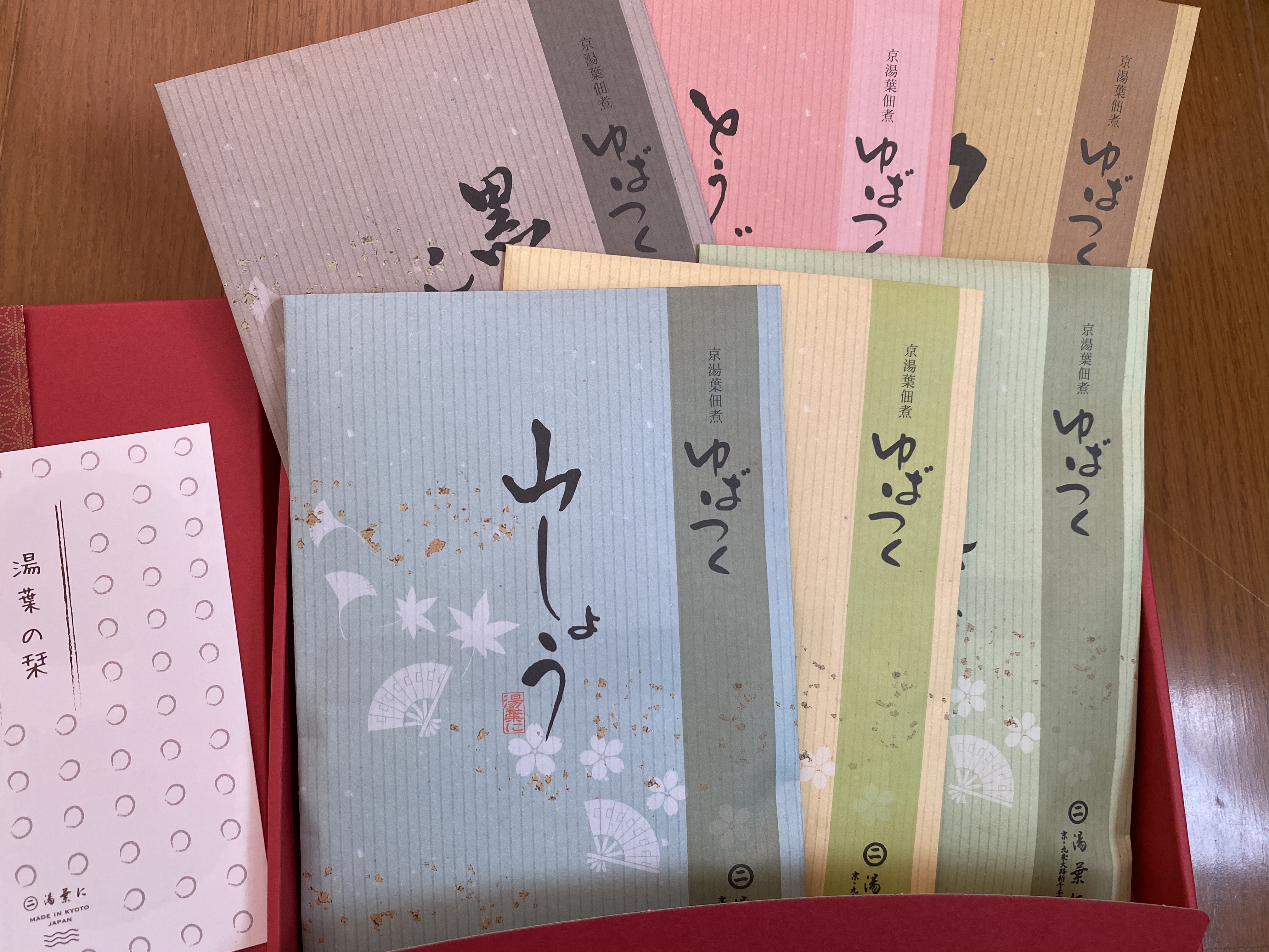 当店人気商品、ゆばつく(湯葉の佃煮)を6種類詰め込んだギフトボックスです。