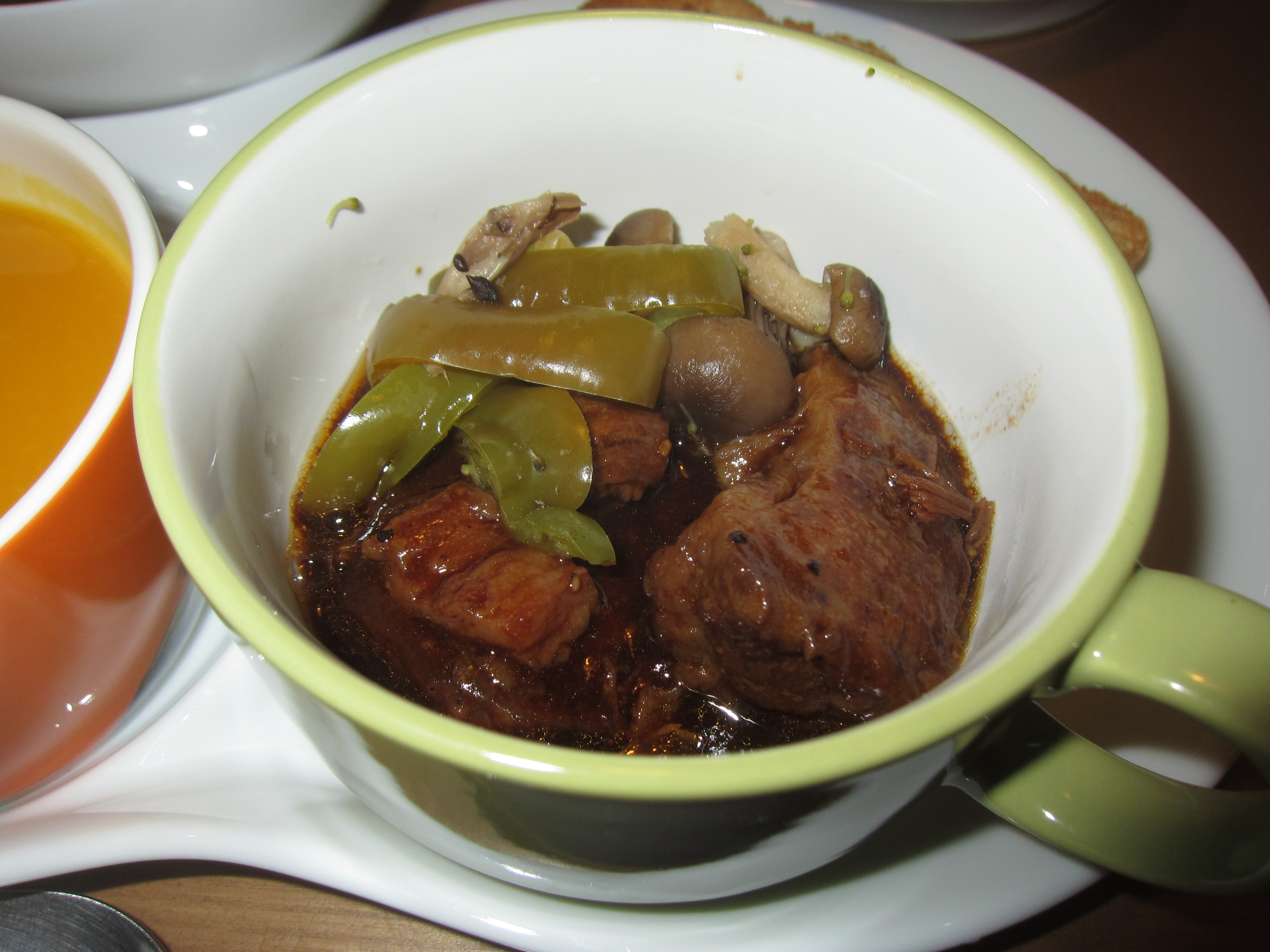 甘さ強めの豚の角煮もある中、こちらは甘さよりも赤ワインで煮込まれたスッキリとしたソースの味わい。