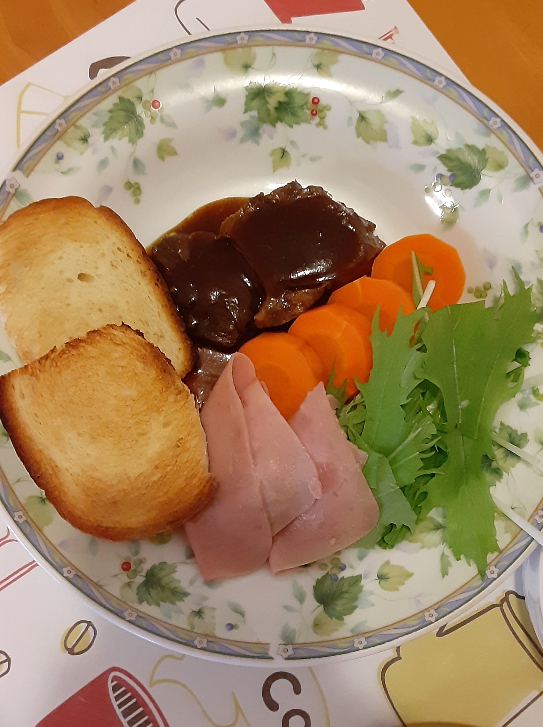 一口食べた瞬間に、今まで食べたことのある舌シチューとは全然違いました。舌先でつぶれるくらいの軟らかさ。固めのプリンくらいやわらかいです。(拙い表現ですみません!)ソースもしみじみと味わい深い。牛タン好きな旦那と感動しながらいただきました。