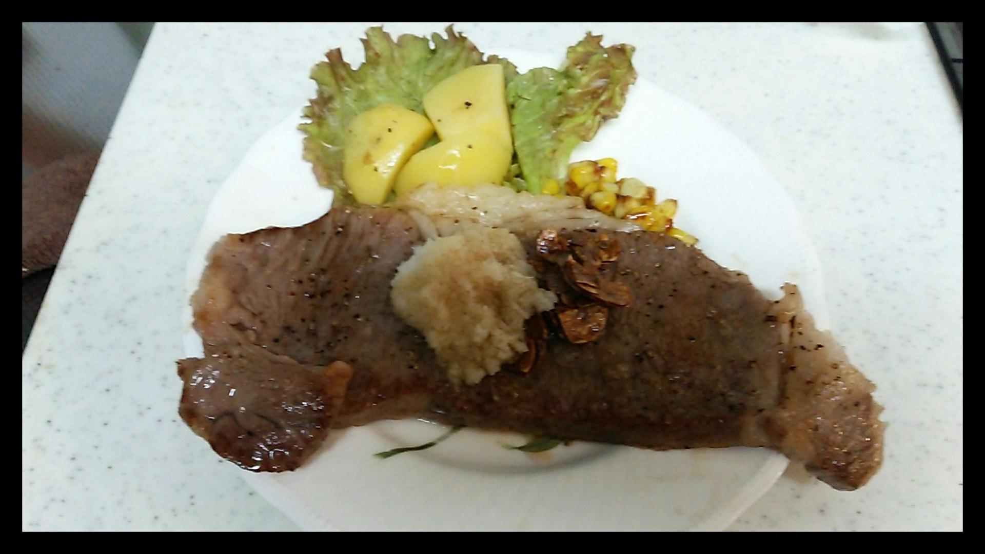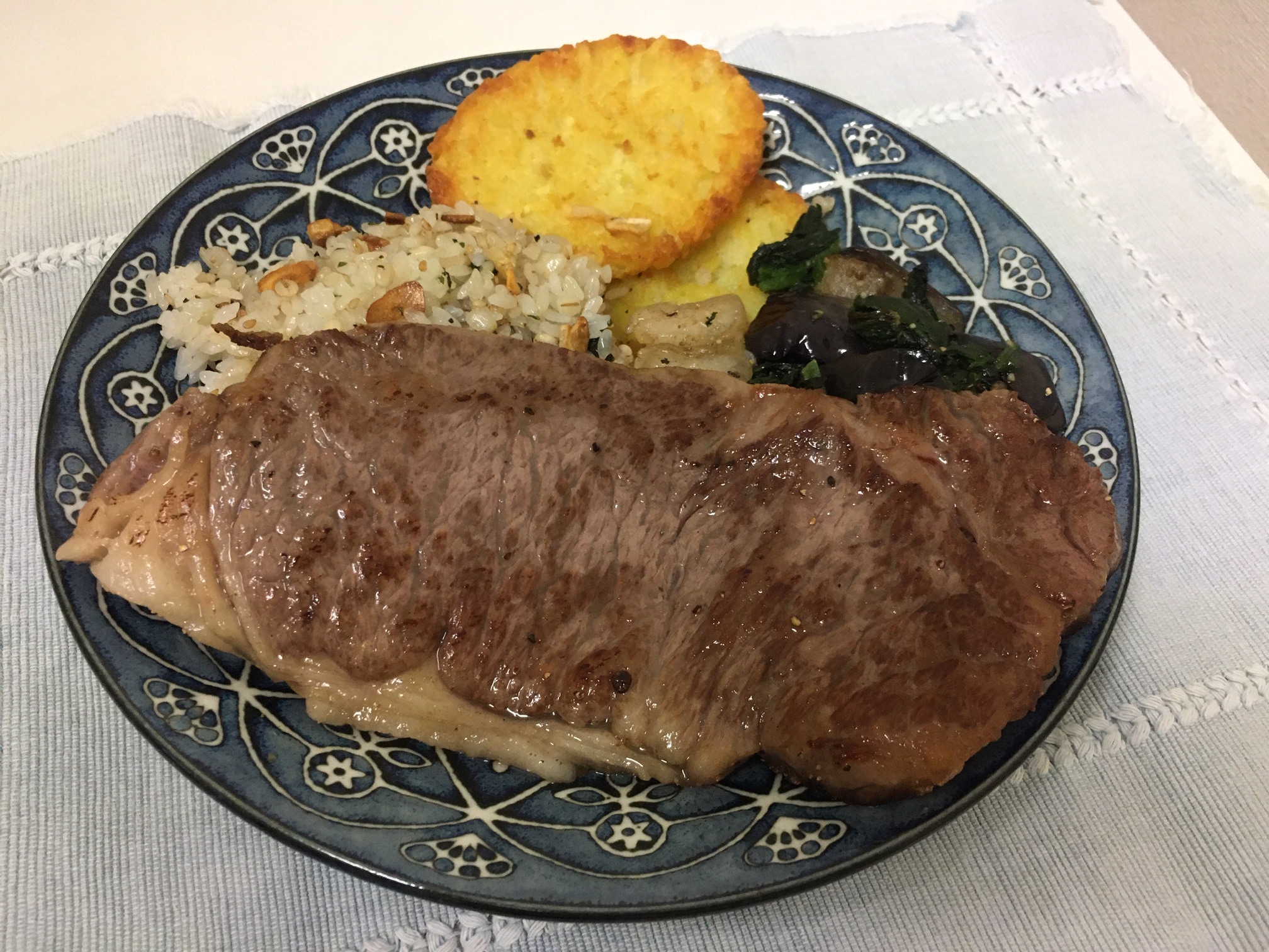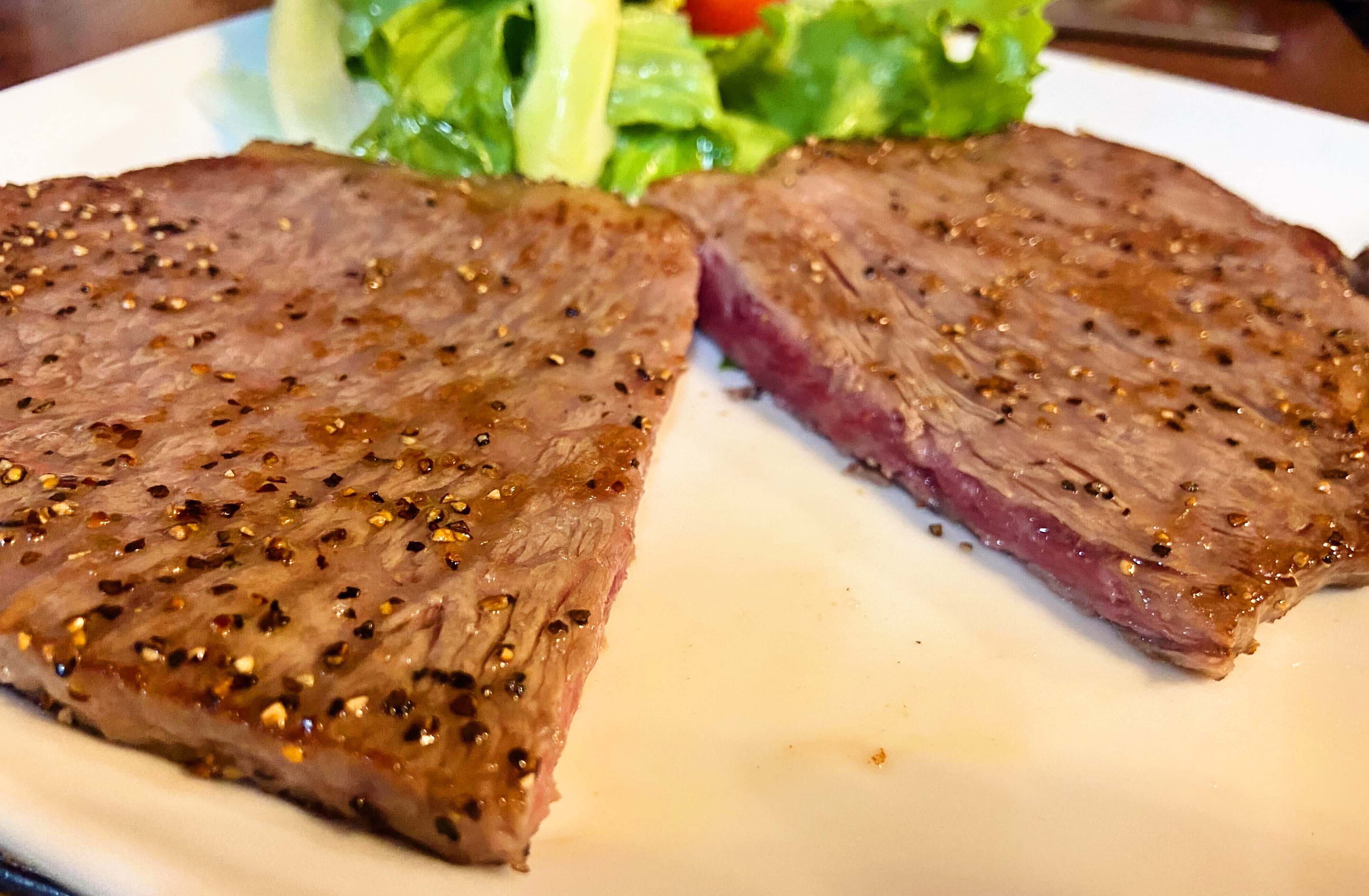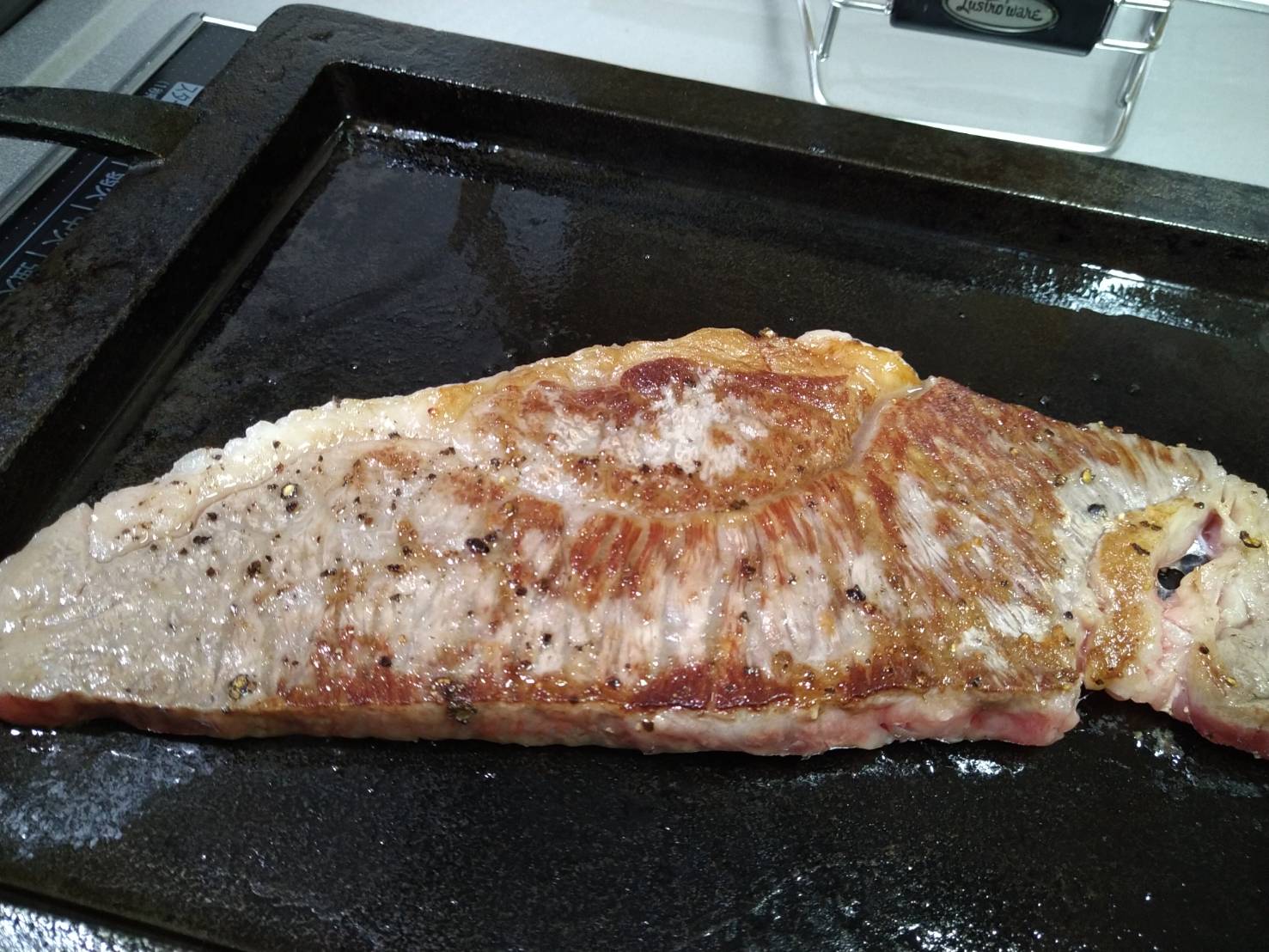 ステーキを焼いた際の食欲をそそる米沢牛のいい香り、ナイフを