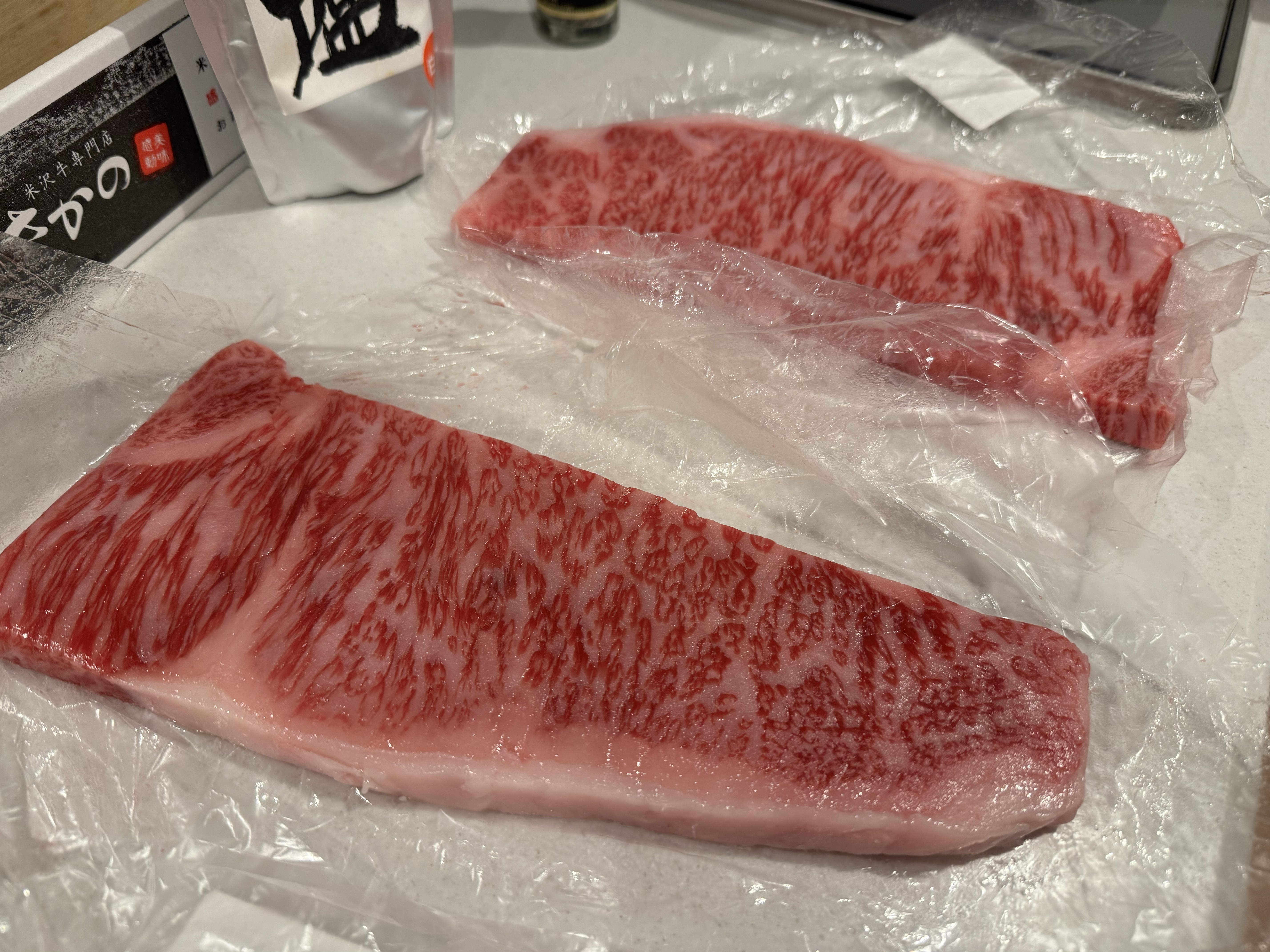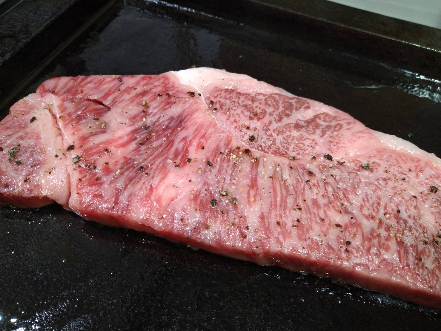 鮮やかな赤身の色合いに、きれいな霜降が入りそれだけでもワクワク感が止まりません。