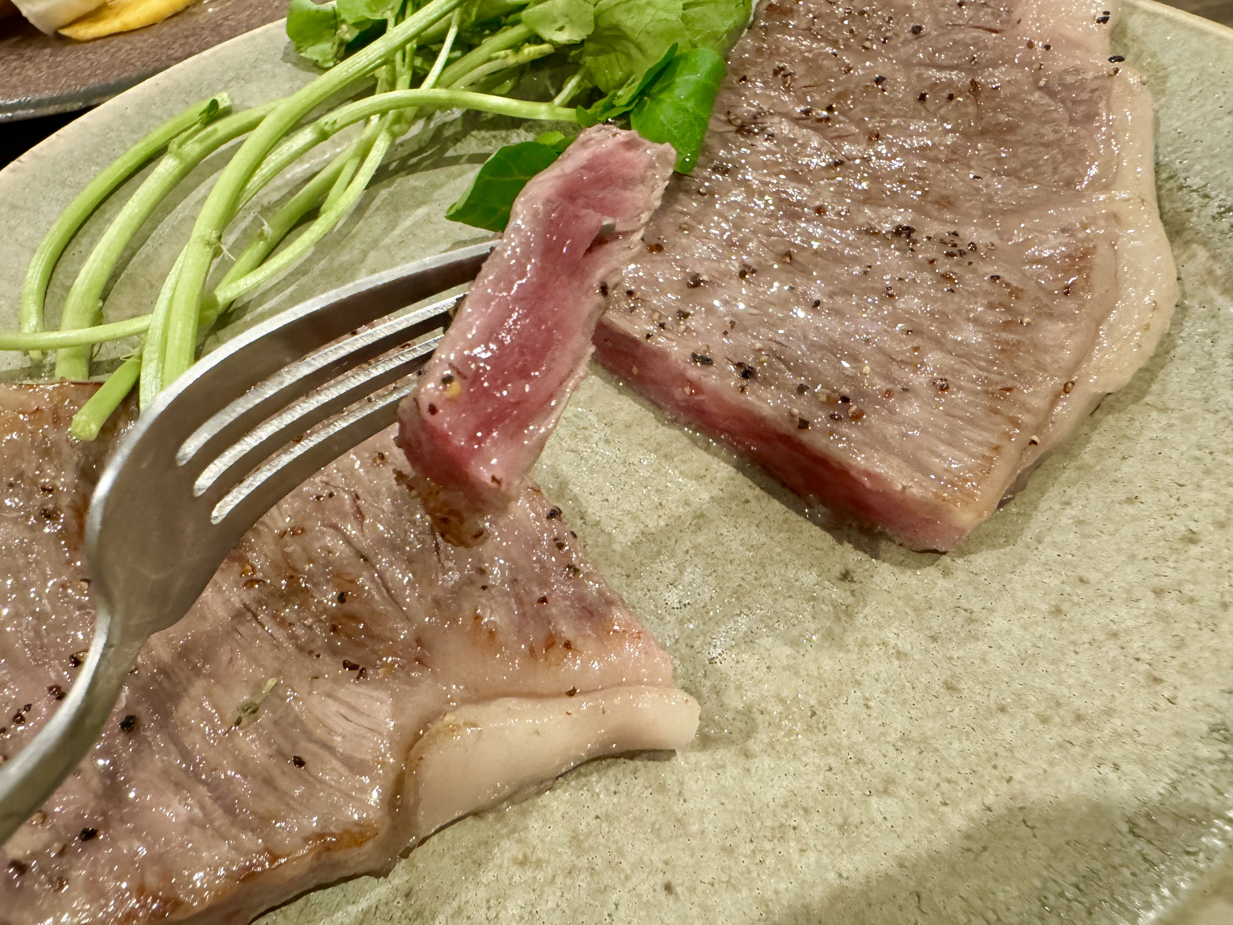サーロインはステーキの王様というだけあって、霜降り具合、赤身とのバランス、お肉の柔らかさは完璧です!