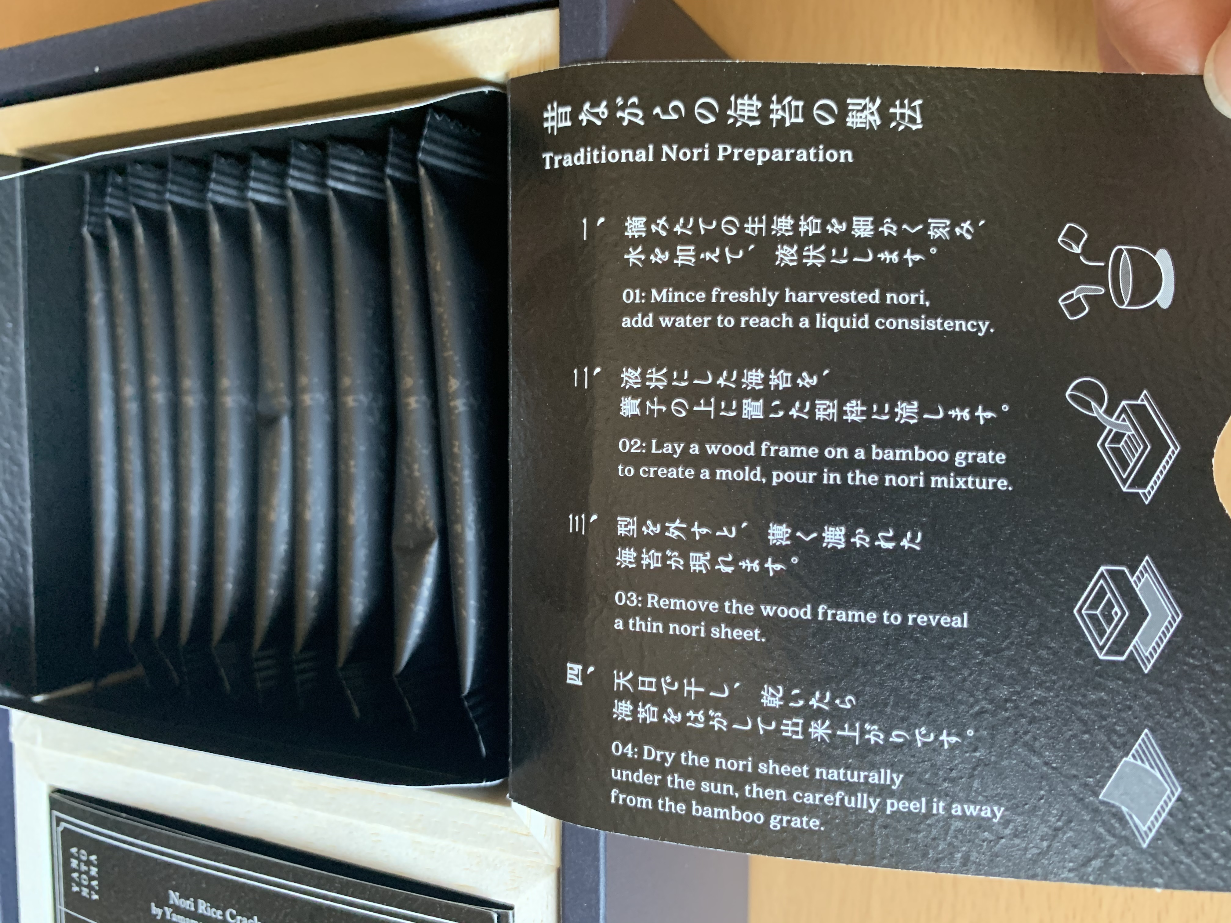 のり本来の風味とパリパリとした食感を楽しんで頂くため、とても薄いおせんべいを使用しておりますので、お子様からご高齢の方までお召し上がりいただけます。