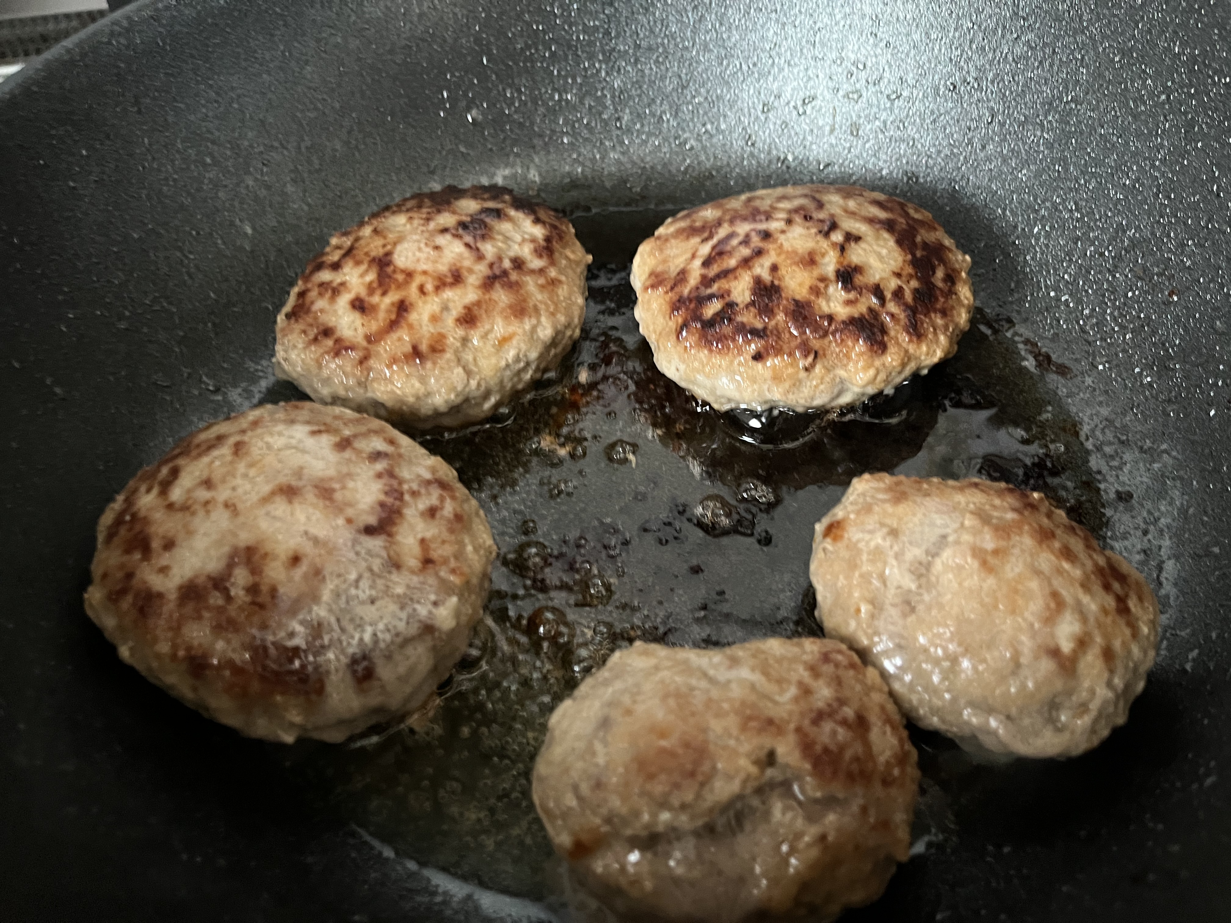 「これが薫格ハンバーグか!」と感心しつつ良い薫りにつつまれながら、両面5分ずつ焼きました。