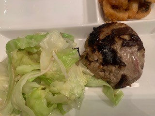 ぺったんこだったハンバーグが焼き上がりのときはまんまるに。