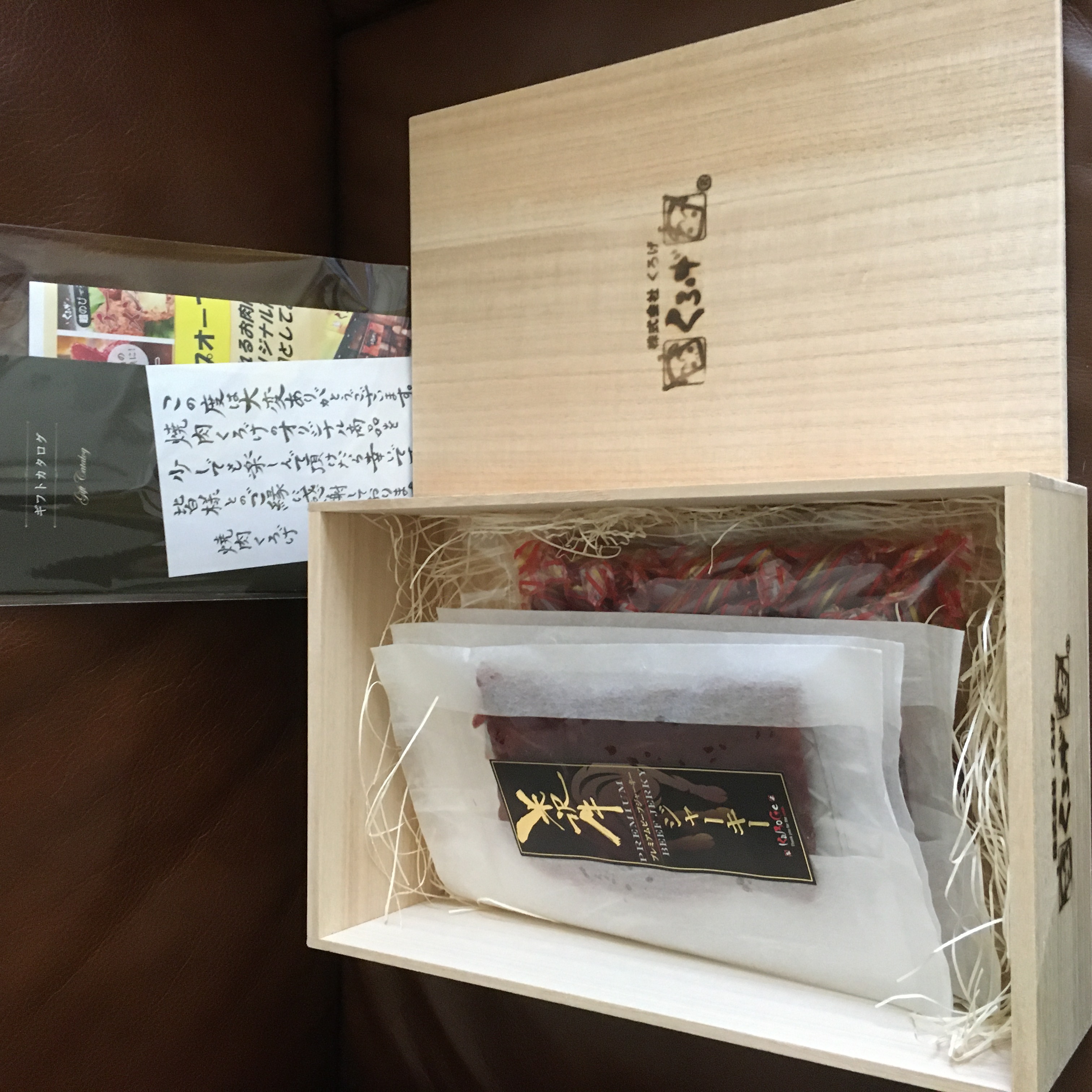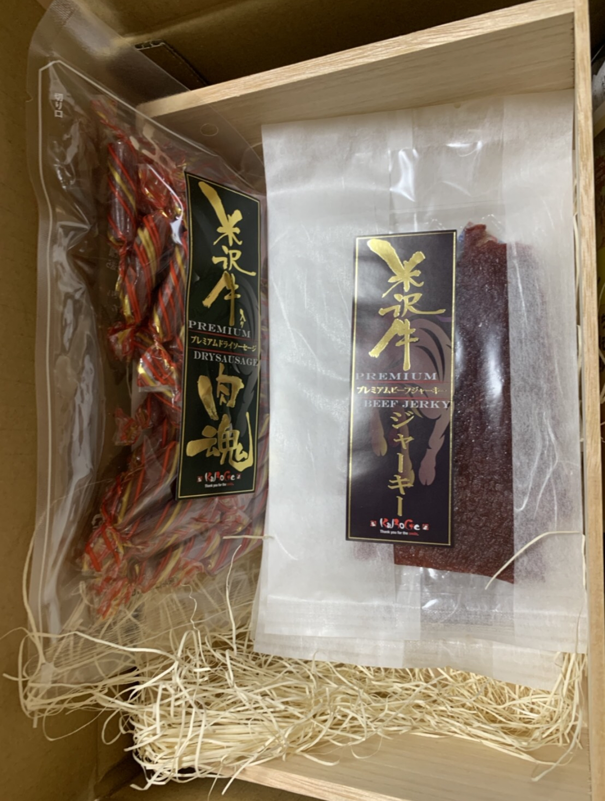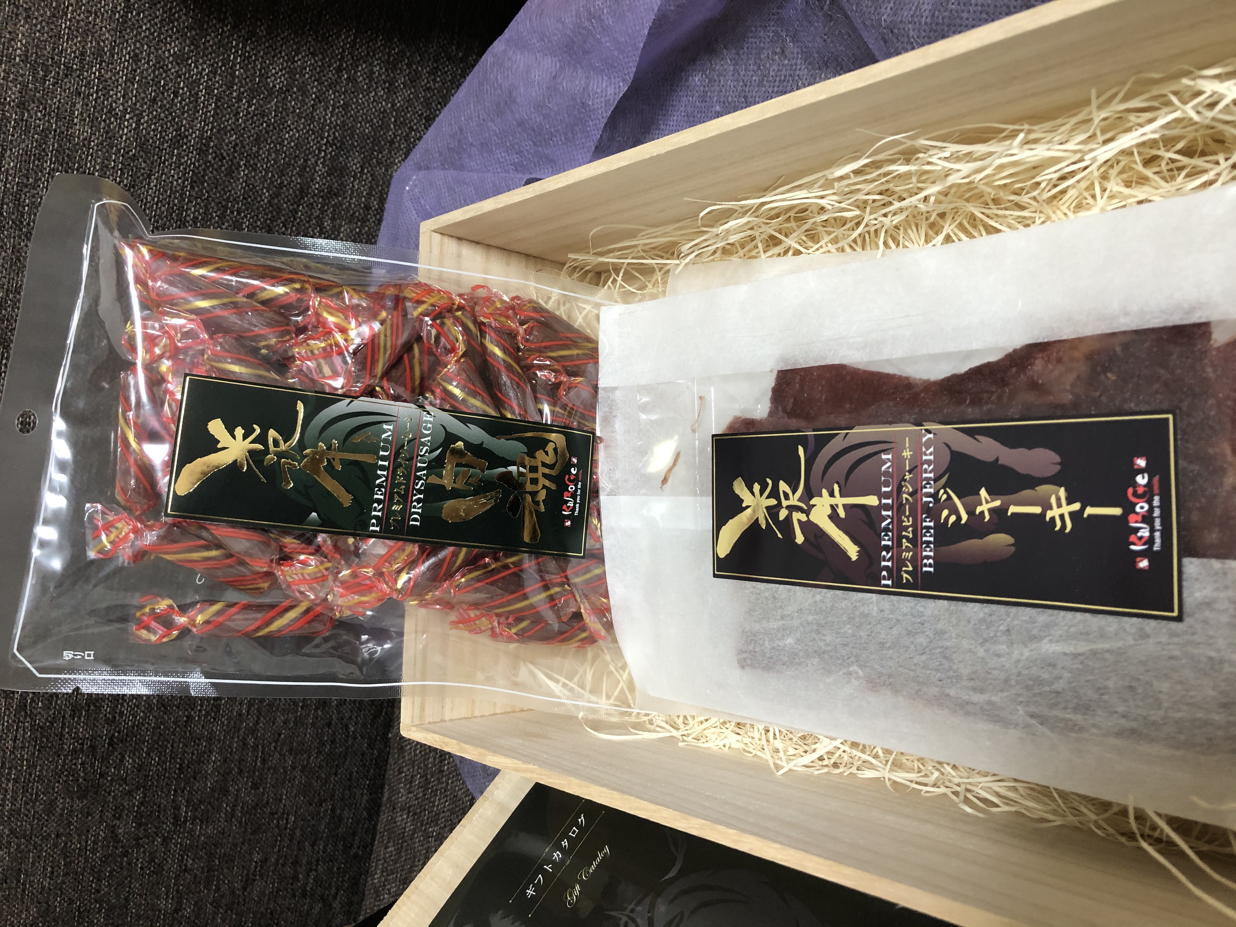ビーフジャーキーは大きな袋が3つ分。和紙のような美しい梱包です。