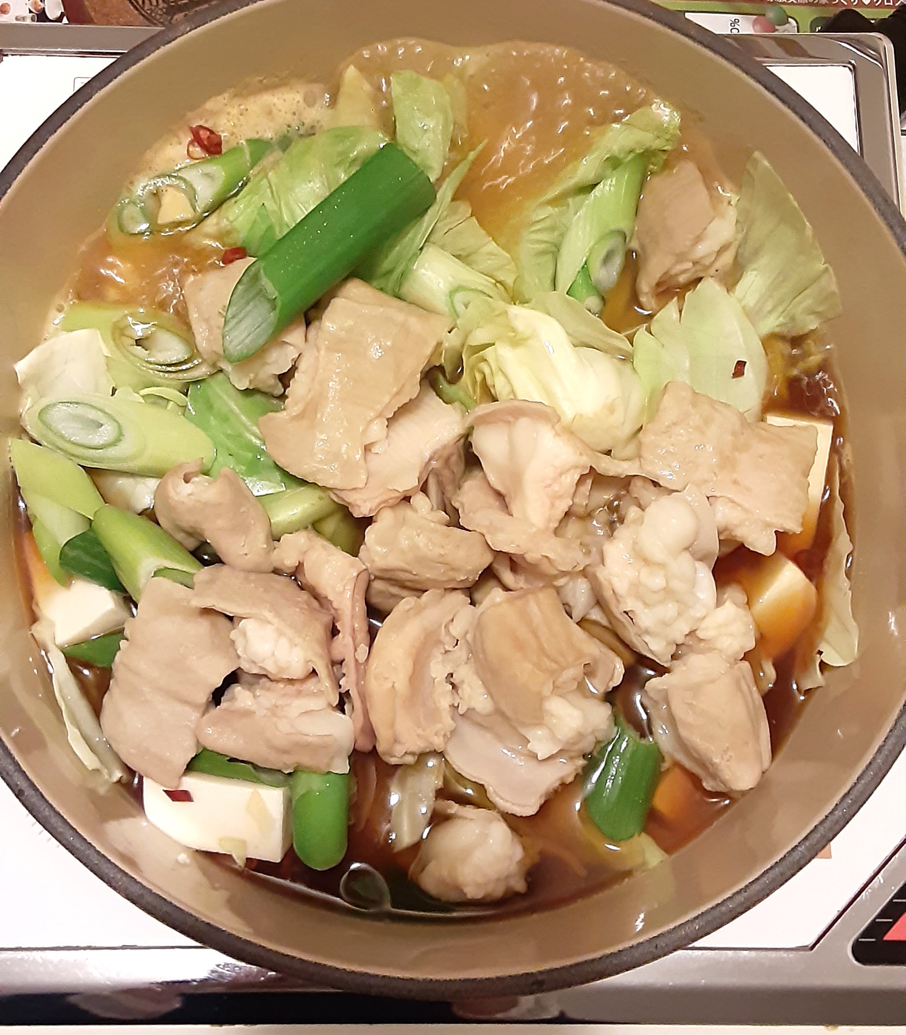 張り切って〆のラーメンを購入前日のお昼から解凍し、翌日の夕ご飯にもつ鍋をしました。
