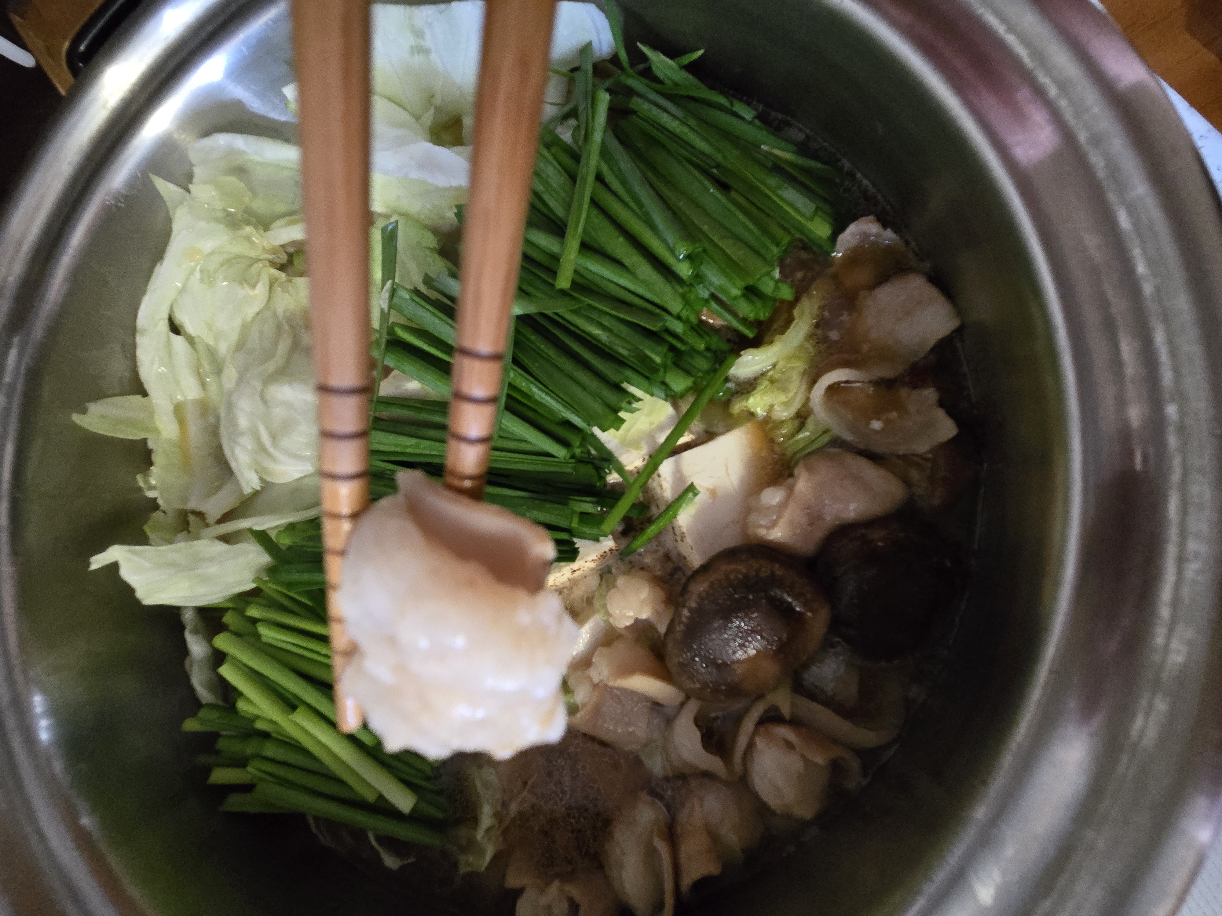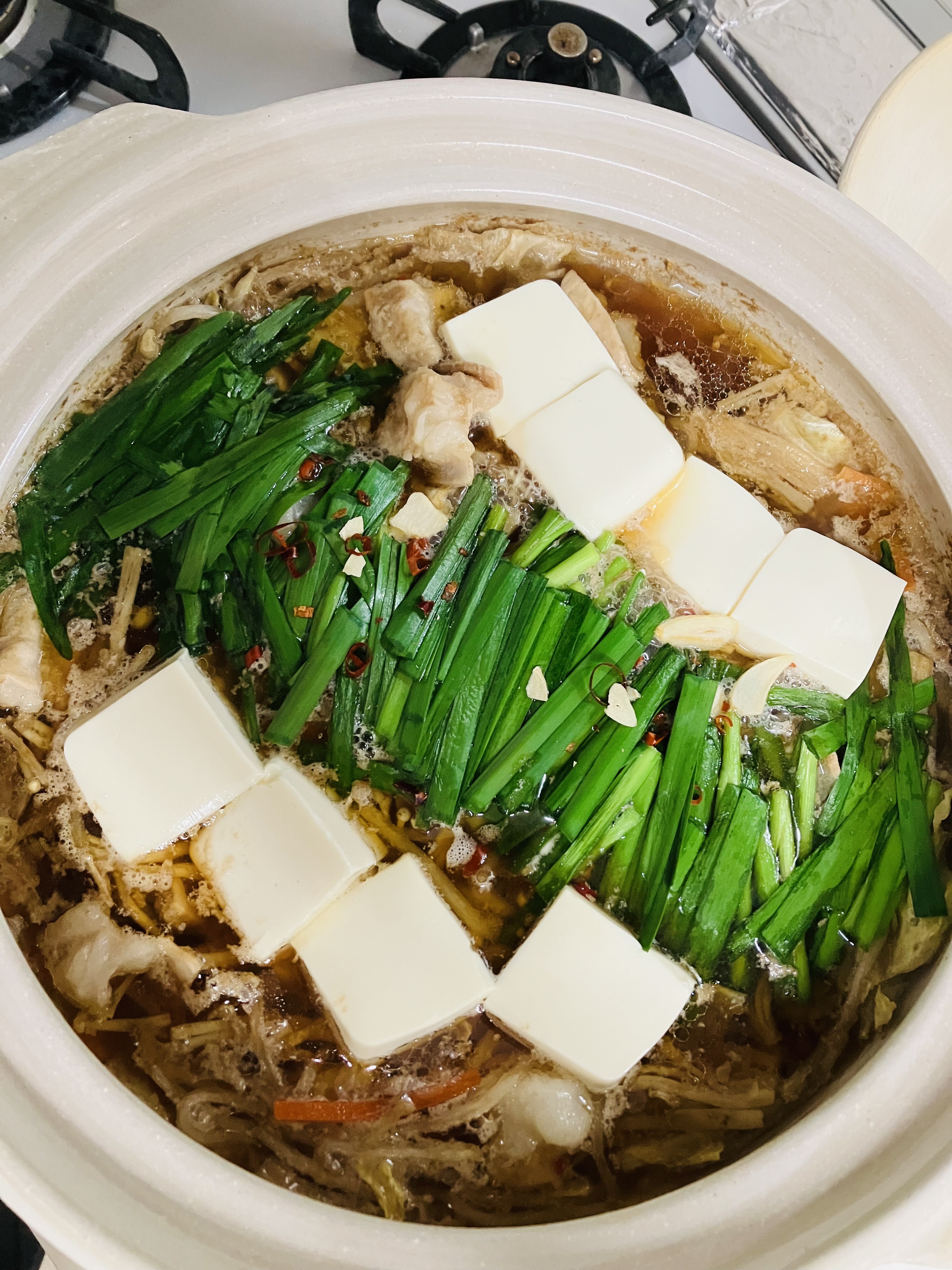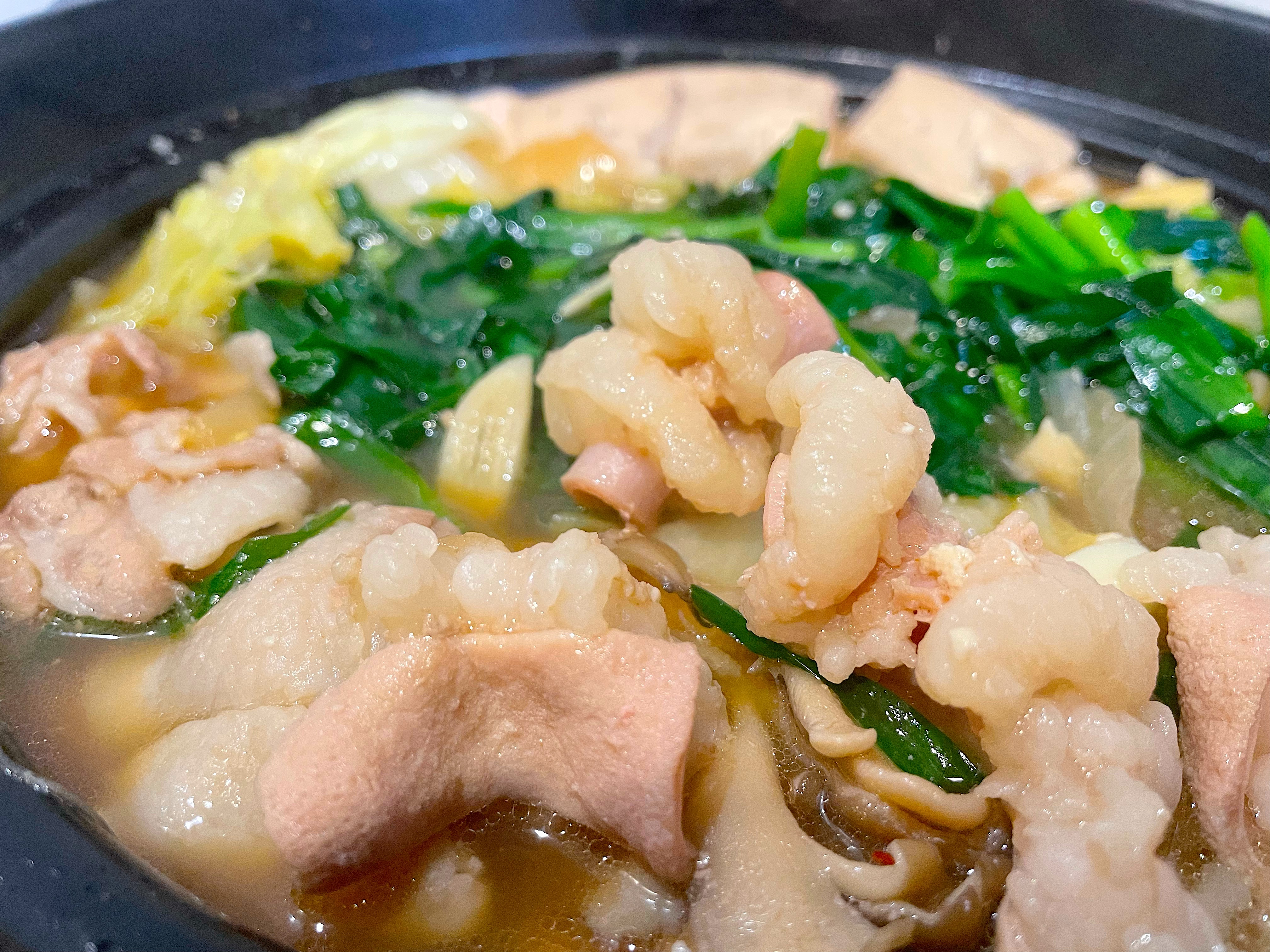 近江牛ホルモンと豚バラとお好みのお野菜で、美味しいもつ鍋の完成です!