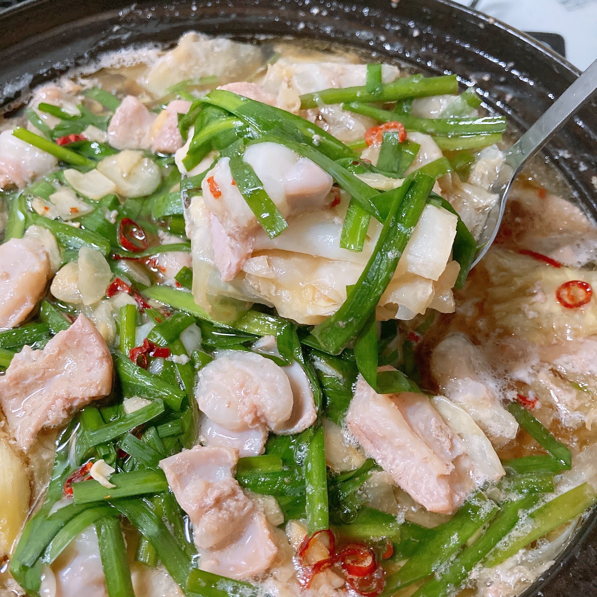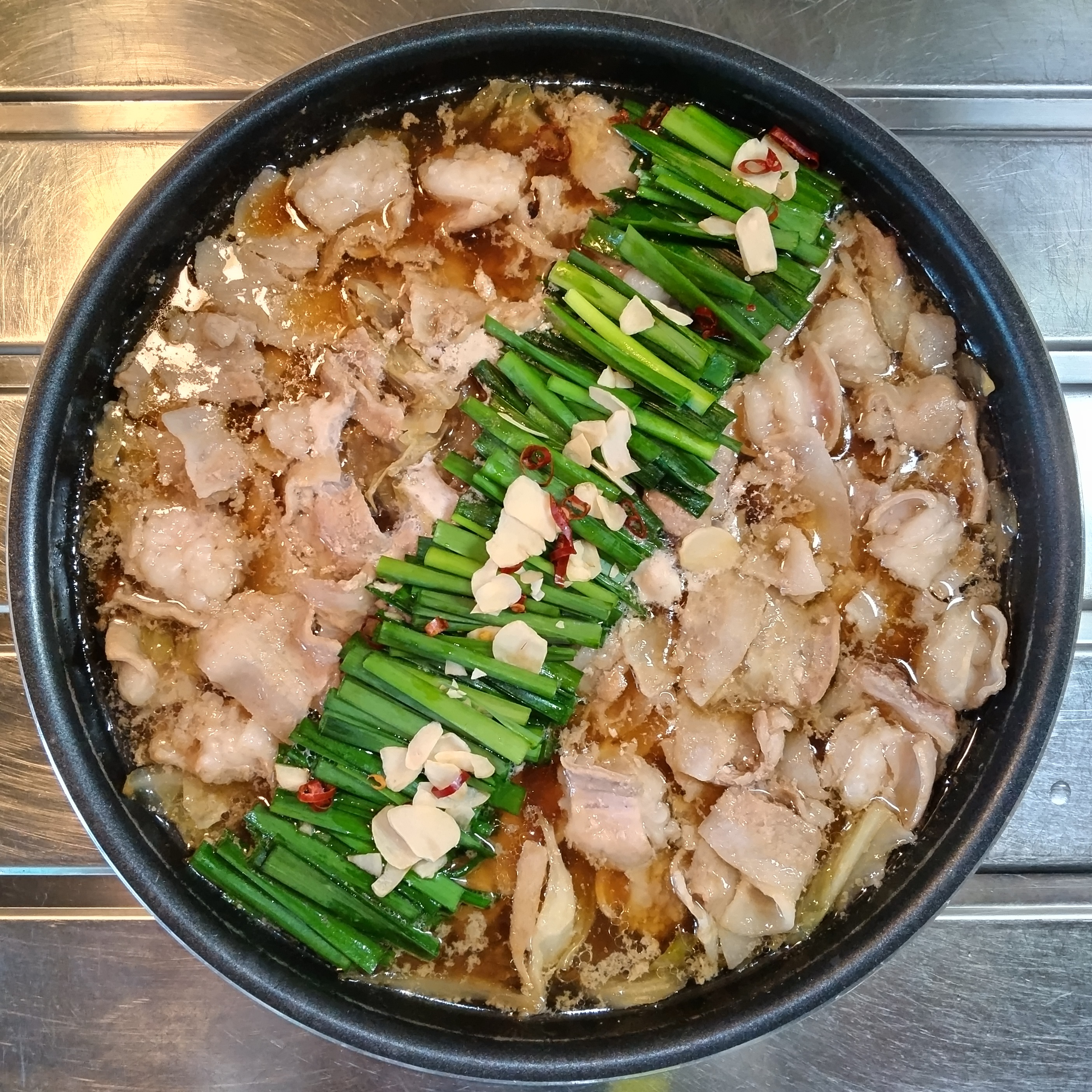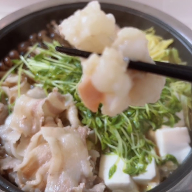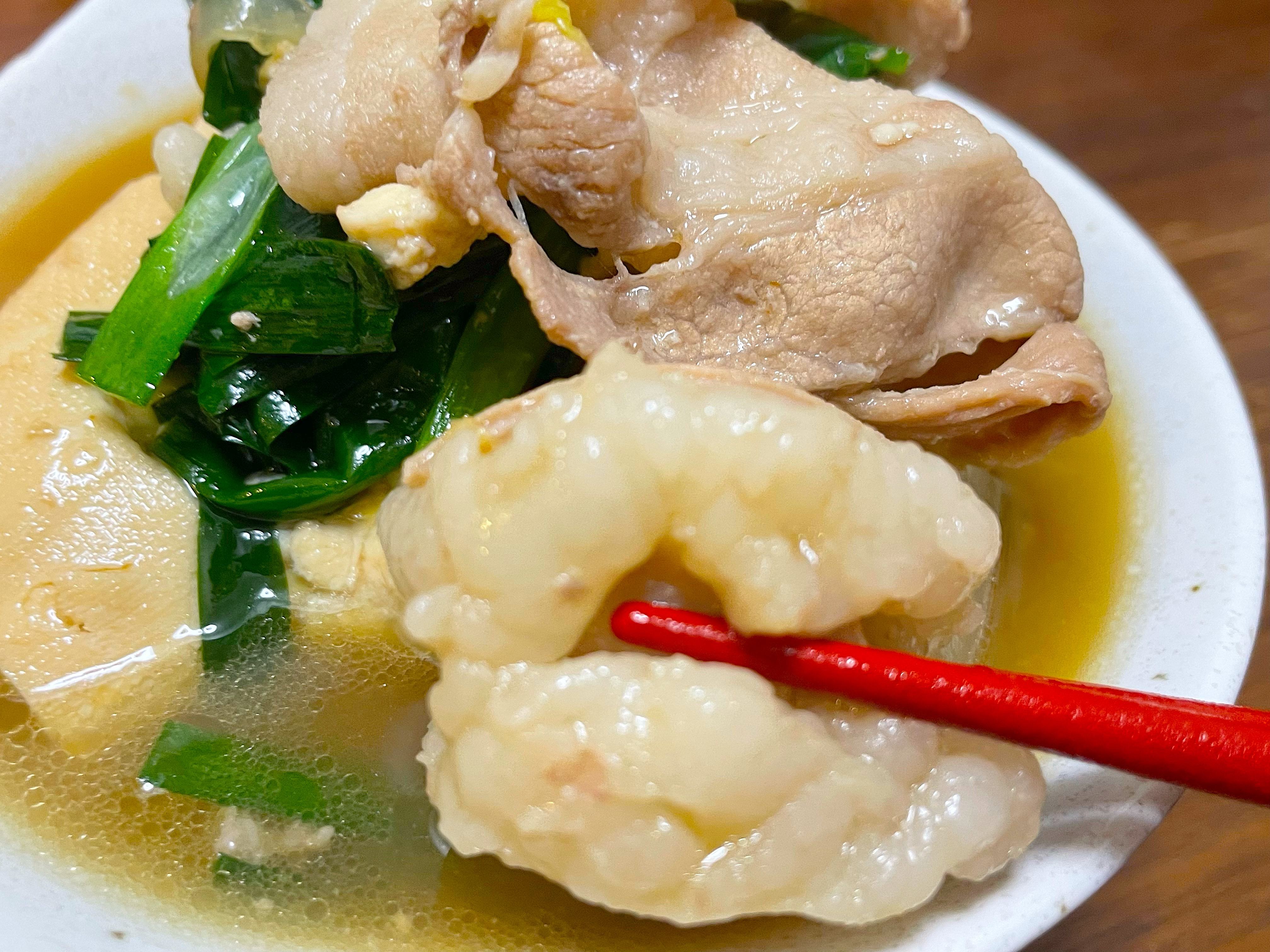 にんにくチップをもつ鍋に入れるのが初めてでしたが、ホルモンも豚肉もスープも、とてもさっぱりしていて美味しかったです。