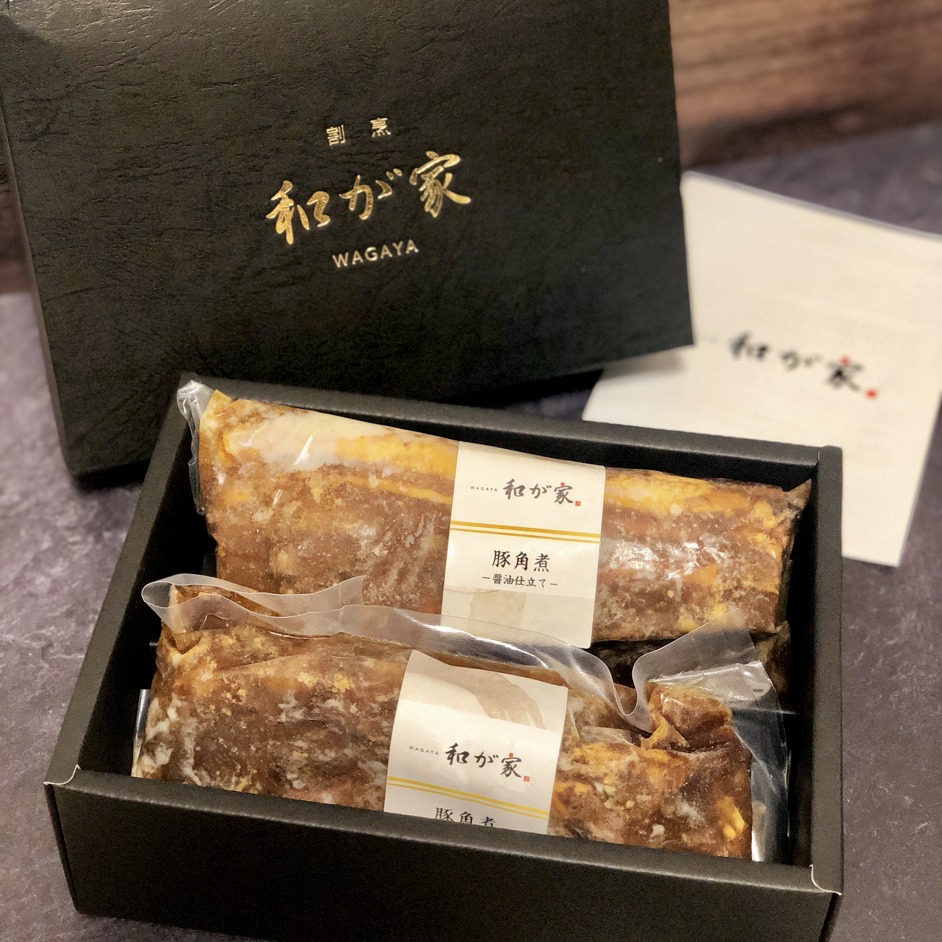 和食店と精肉店が協力して作り上げた「豚角煮」です。老舗の精肉店が肉のプロとして角煮のレシピに最も合う豚肉を目利きしてます。産地やブランドではなく、肉本来の脂や肉の旨味・肉質を重視して厳選しています。大正8年創業 老舗醤油店の醤油を使用しているので、醤油の味の効いた柔らかい角煮に仕上がっています。和食店の一流の技術と食材、職人たちのこだわりを詰め込んでいます。化粧箱で届くので、贈り物にもおすすめです。