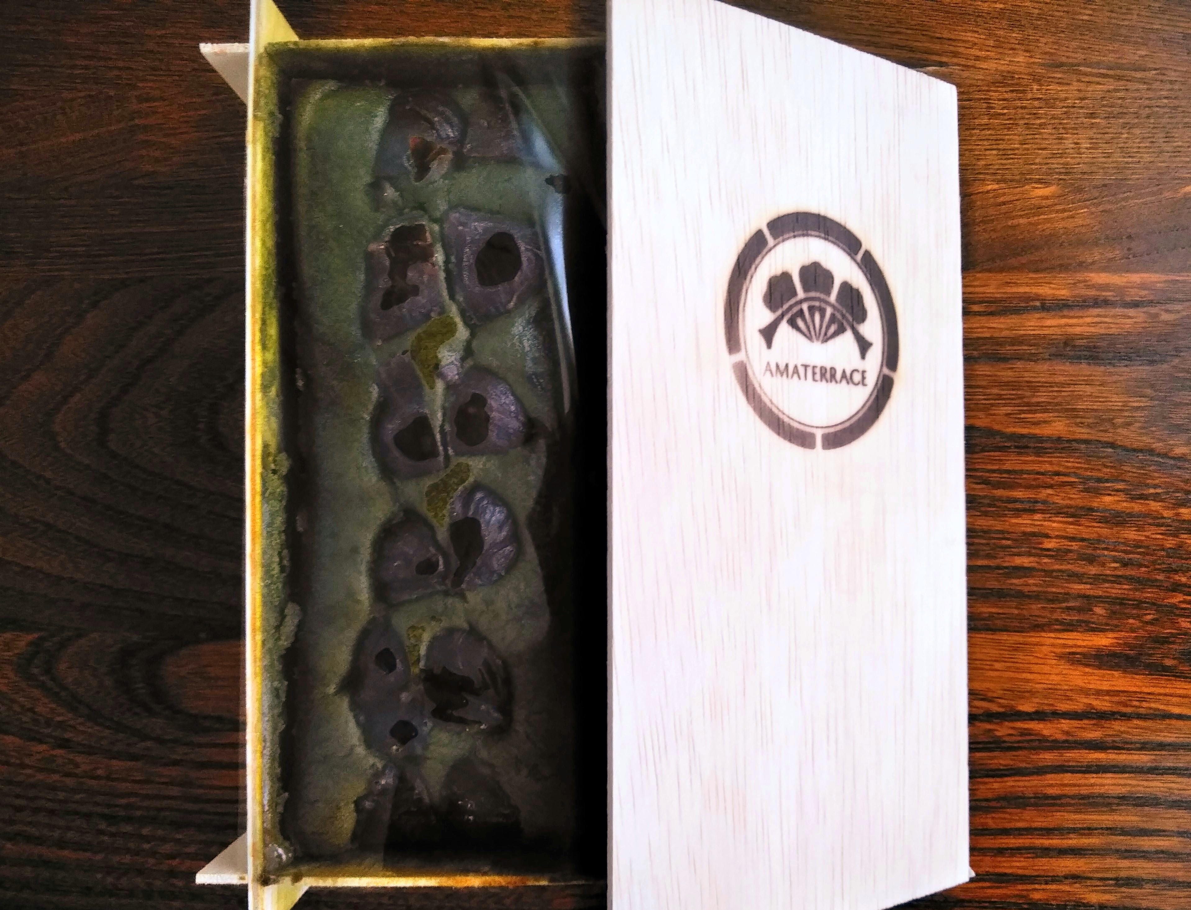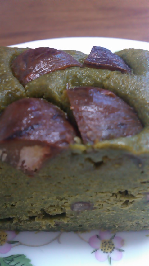 パウンドケーキとしては、かなり濃厚な味ではあるけれど、後味に抹茶のほろ苦さが残り、すっきり食べられるように感じました。密芋のしっとりさ、ほんのりした甘さがきいているのかなーなんて思いました。