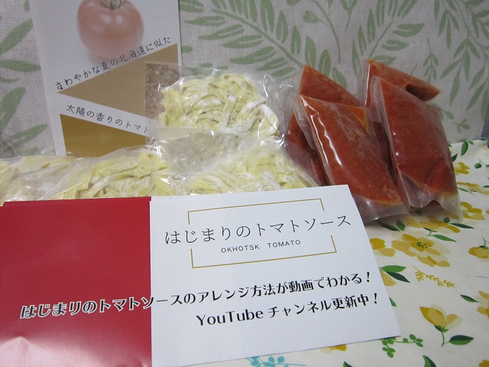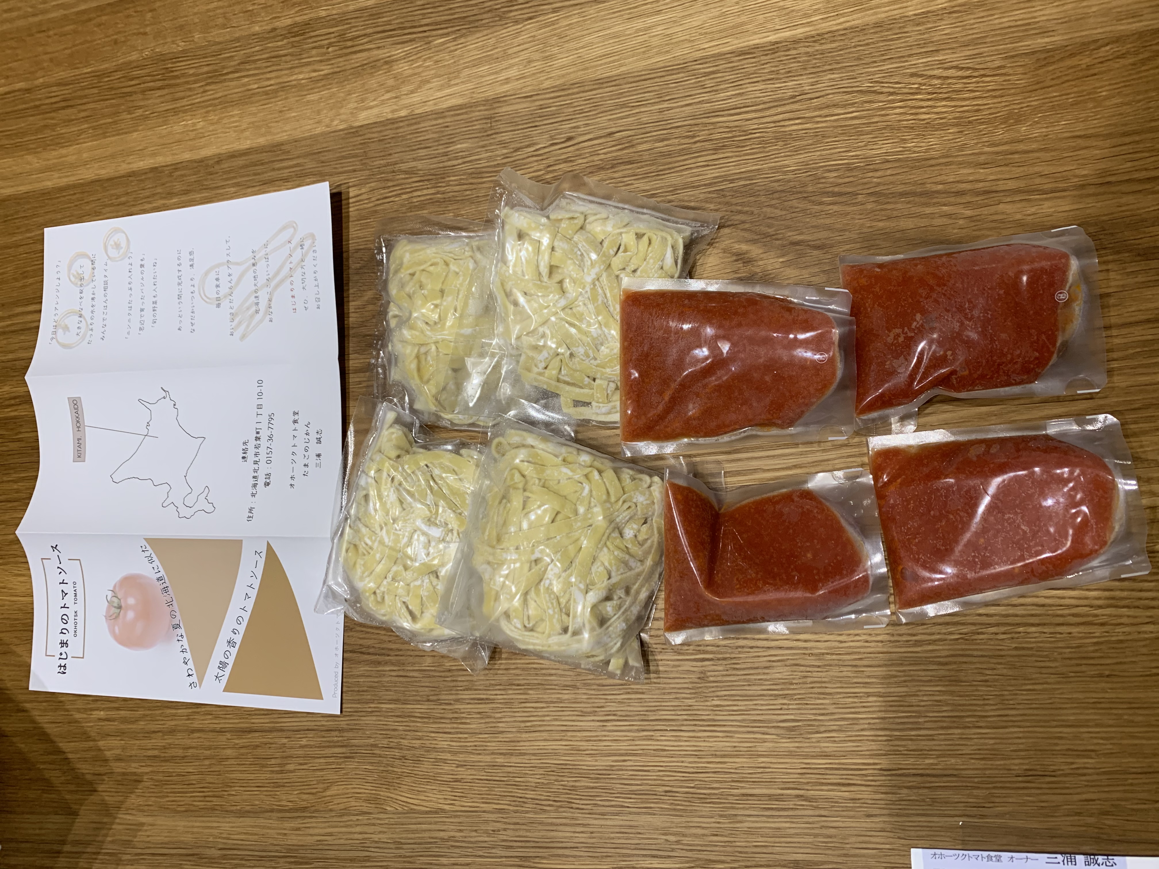 北海道オホーツク産クッキングトマト「なつのしゅん」を使用したトマトソースと生パスタのセットです。「なつのしゅん」は、鮮やかな赤色とさわやかな酸味と豊かな香り、適度な甘みをもち、トマトソースやジュースなどの加工にピッタリの品種。合わせる生パスタは、北海道オホーツク産小麦(ゆめちから・きたほなみ)を使った、トマトソース専用生パスタ。パスタの旨みによって引き立てられる、道産トマトソースの味わい深さを堪能できます。