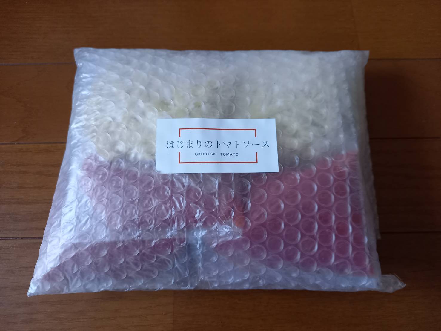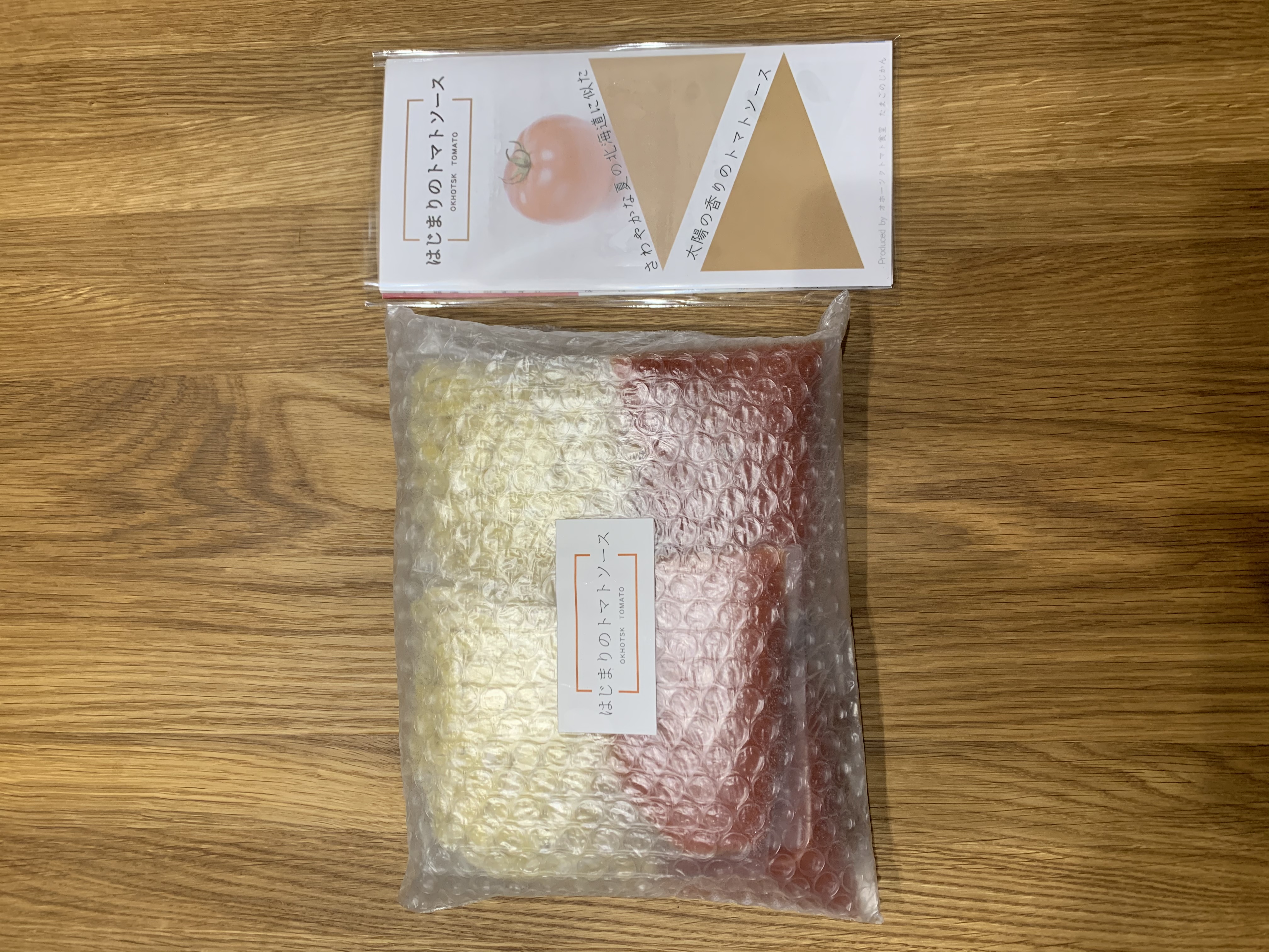 まずお届け状態は、クール便で日付、時間指定通りに到着しました。段ボール箱を開けると緩衝材のプチプチで覆われた袋内にトマトソースと生パスタがそれぞれ4個ずつ冷凍された状態で入っていました。周りには衝突防止用の紙材とパンフレットが同封されていました。