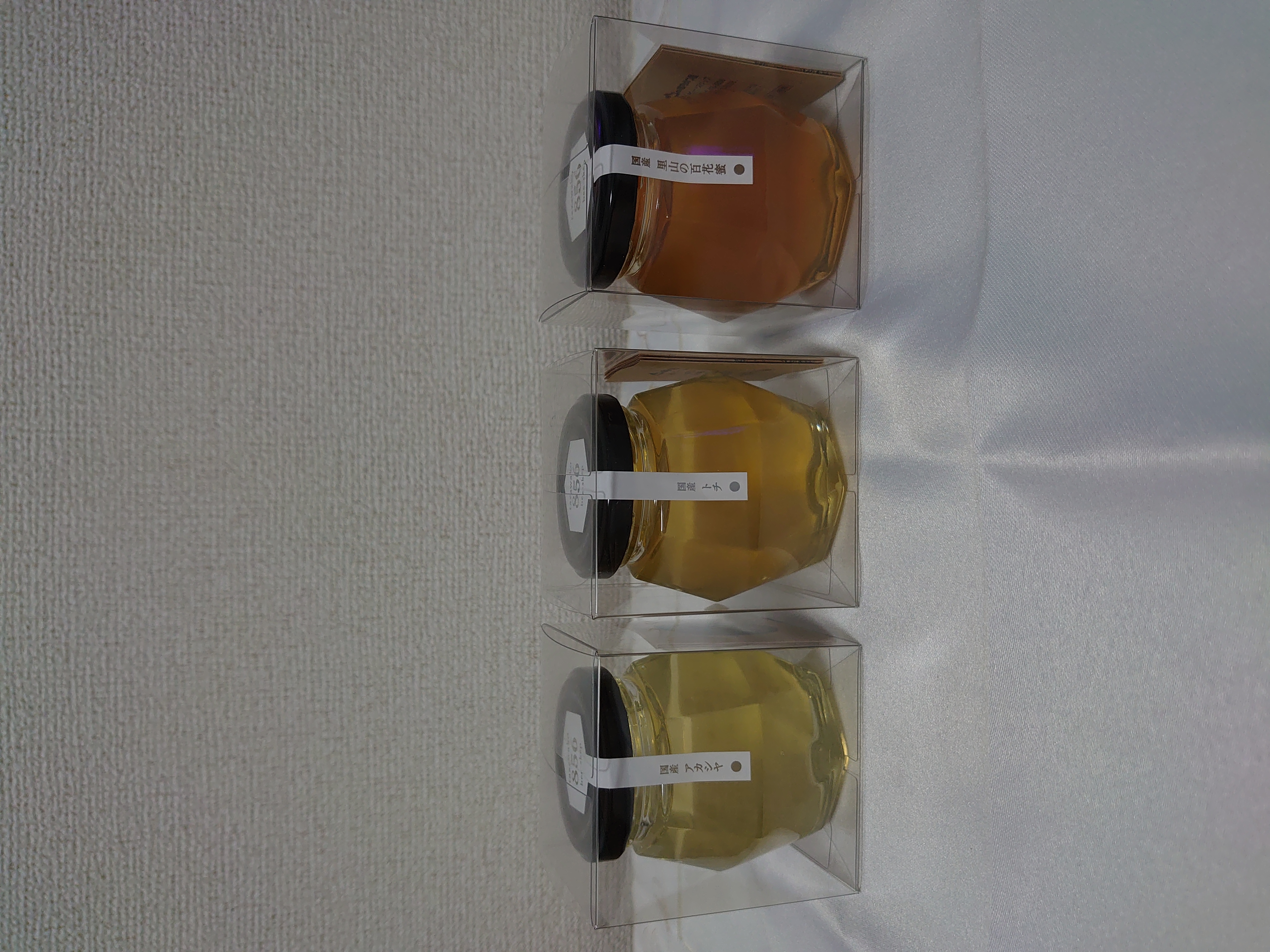 専門店の国産はちみつ3種セットです。「国産アカシヤ蜜」はクセのない優しい甘さ。「トチ蜜」はコクがありまろやかな甘さ。「里山の百花蜜」は色々な花蜜が混じり合う色も香りも濃厚な蜂蜜です。「プレゼントで贈りたいかわいい蜂蜜」、「小さめのビンで試してみたい」などの要望に応えることができる商品です。