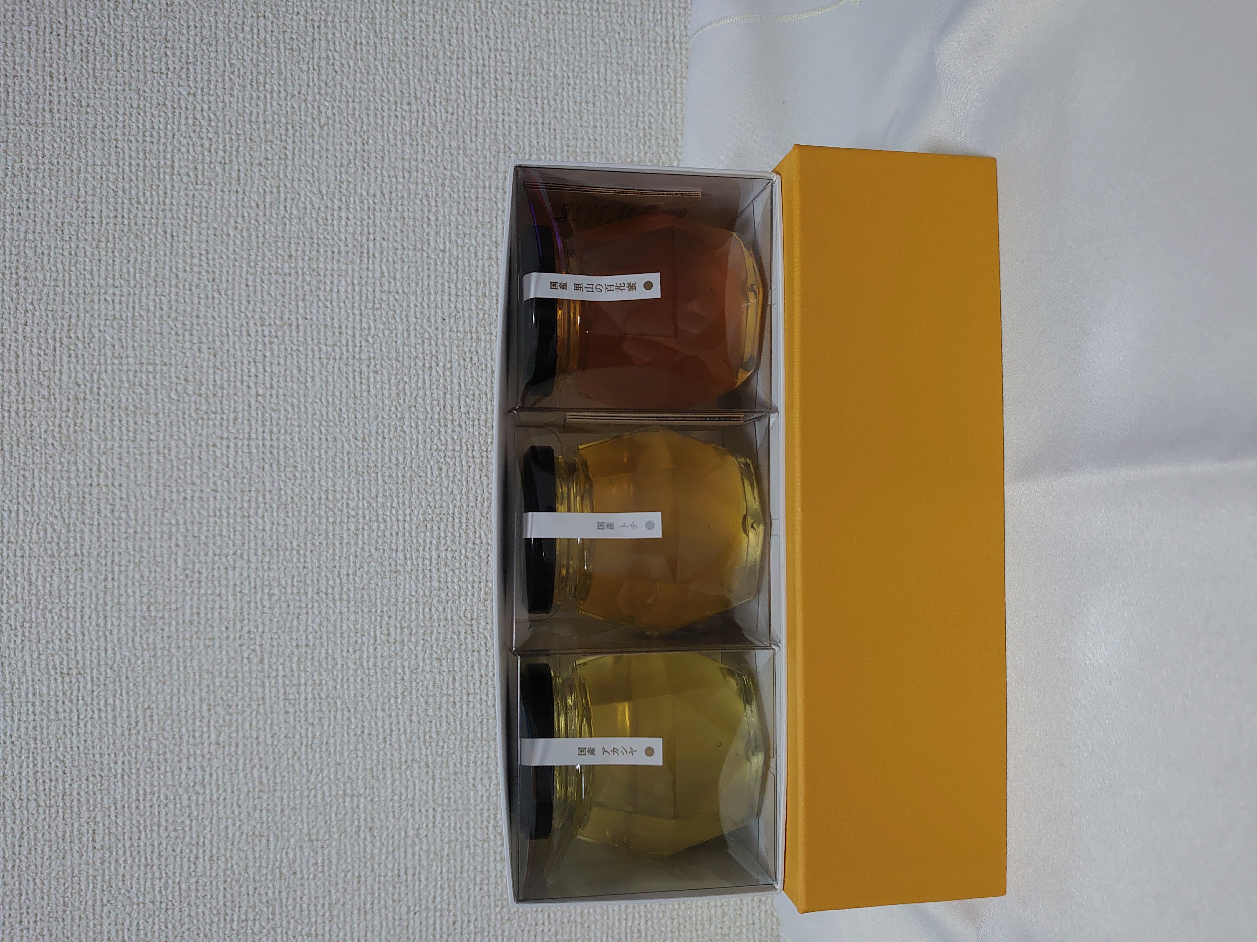 山のはちみつ屋で人気の国産蜂蜜が3種セットで、ご自宅用・ご贈答用にも人気の商品です。国産アカシヤ蜜は優しい甘さでクセも少ないので初めての方にも好まれる味です。コーヒーや煮物など幅広くお料理に。トチ蜜はコクがありまろやかでヨーグルトやチーズとも相性ばっちり。百花蜜は季節によって表情も様々ですが、濃厚奥深い味わいです。
