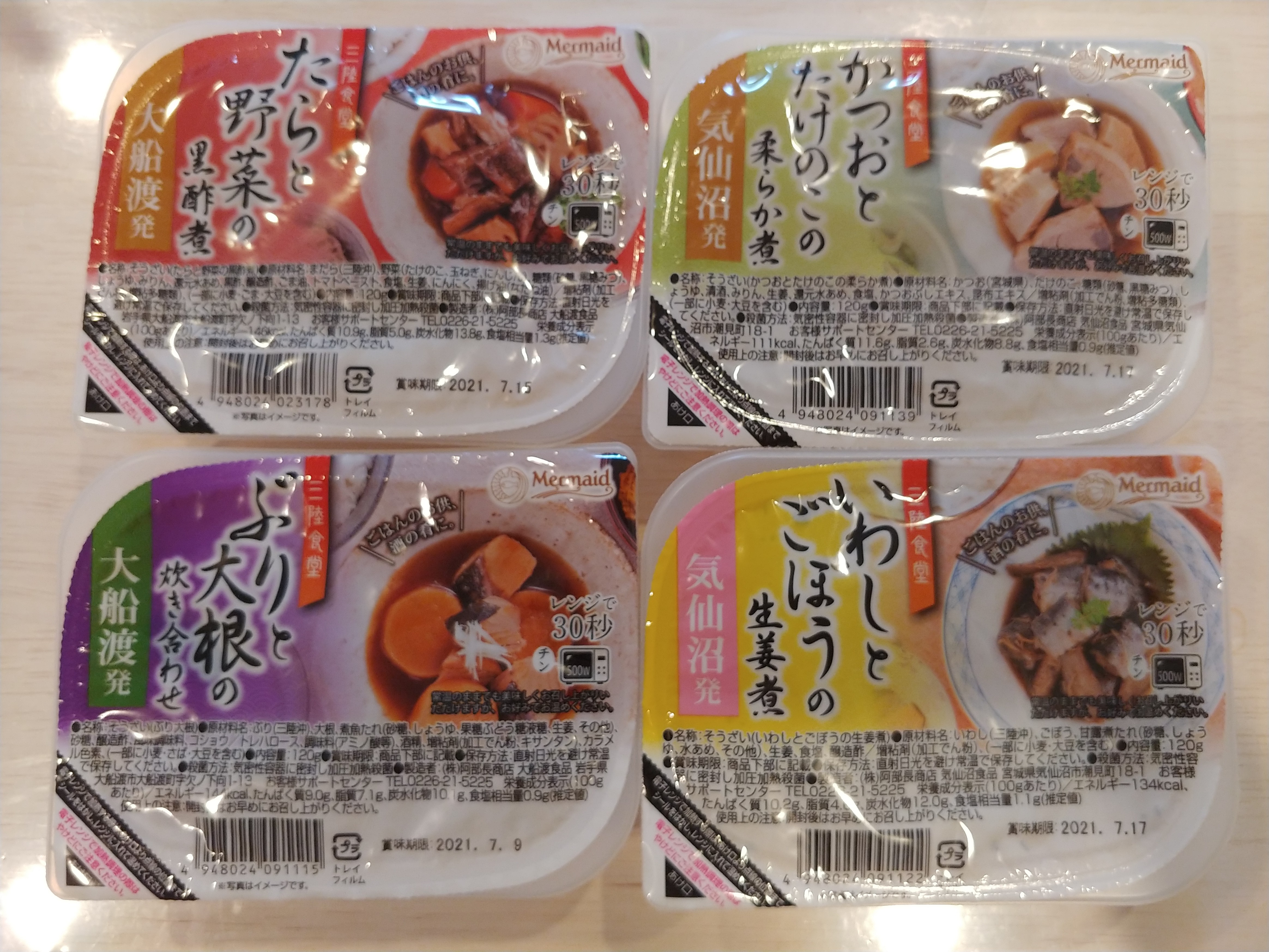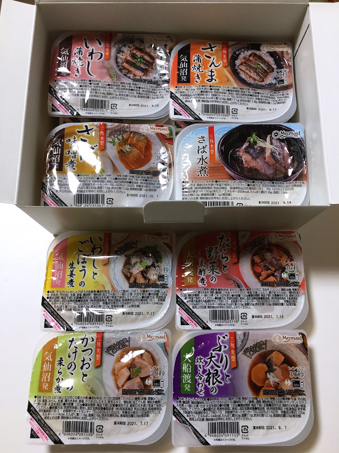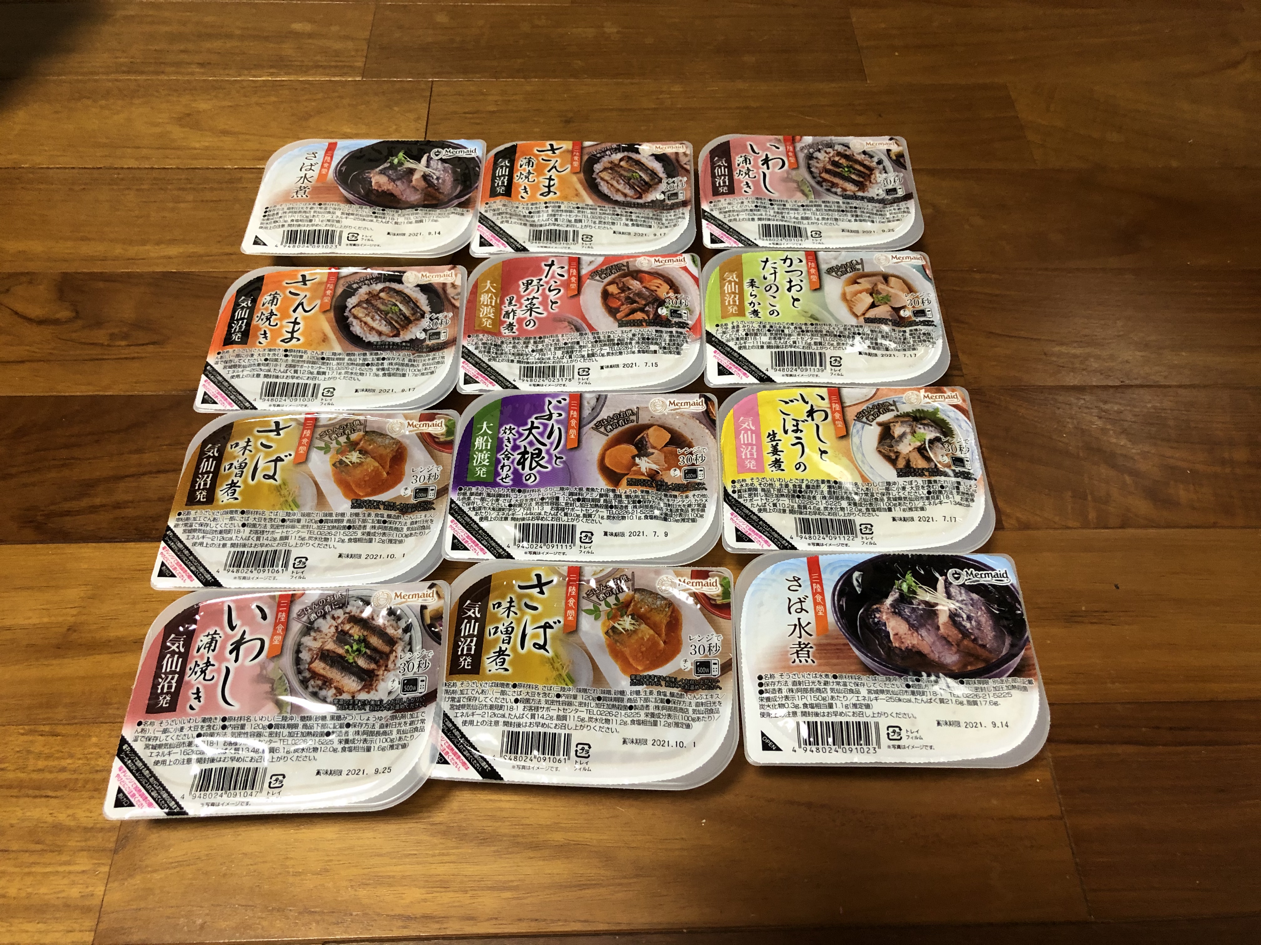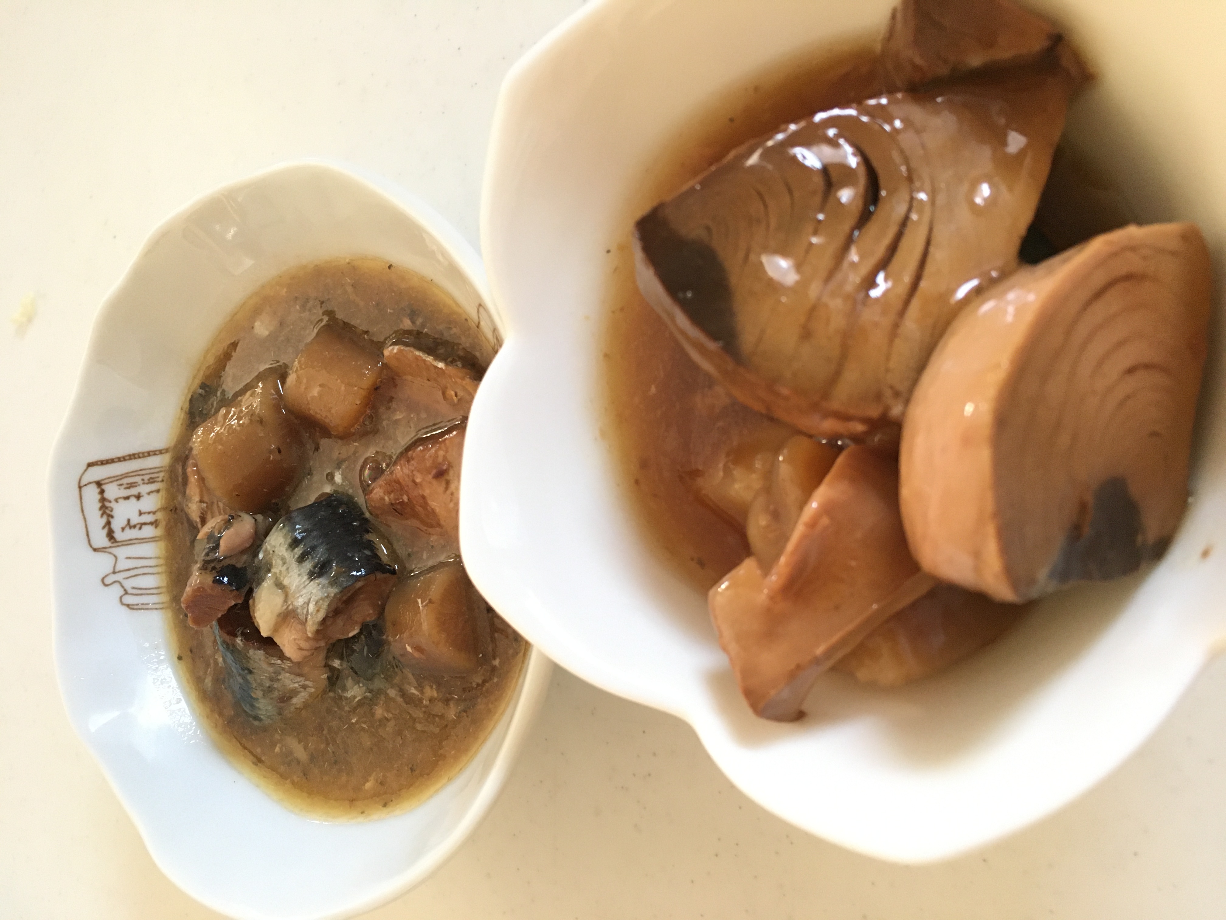 さんま蒲焼は秋にぴったりの一品で、魚独特の臭いもなく身も大きくて大変美味しいです。いわし蒲焼はご飯との相性抜群、甘辛い醤油の味が食欲をそそります。さば味噌煮はご飯との相性抜群、ゴマをかけて食べると風味が増します。いわしとごぼうの生姜煮は生姜のおかげで体の芯から温まるので寒い冬にぴったり、ごぼうの食感も楽しみながら食べれます。かつおとたけのこの柔らか煮は柔らかく煮たたけのこに優しい味が染み込んでいて、かつおと一緒に食べることで更に美味しくなります。たらと野菜の黒酢煮はたらと野菜に黒酢の甘さと酸っぱさが丁度良く絡んでいて美味しいです。ぶりと大根の炊き合わせは、大根に味がとても染み込んでいてぶりとの相性が抜群です。さば水煮は味付けがされていないのでアレンジして食べても美味しいです。