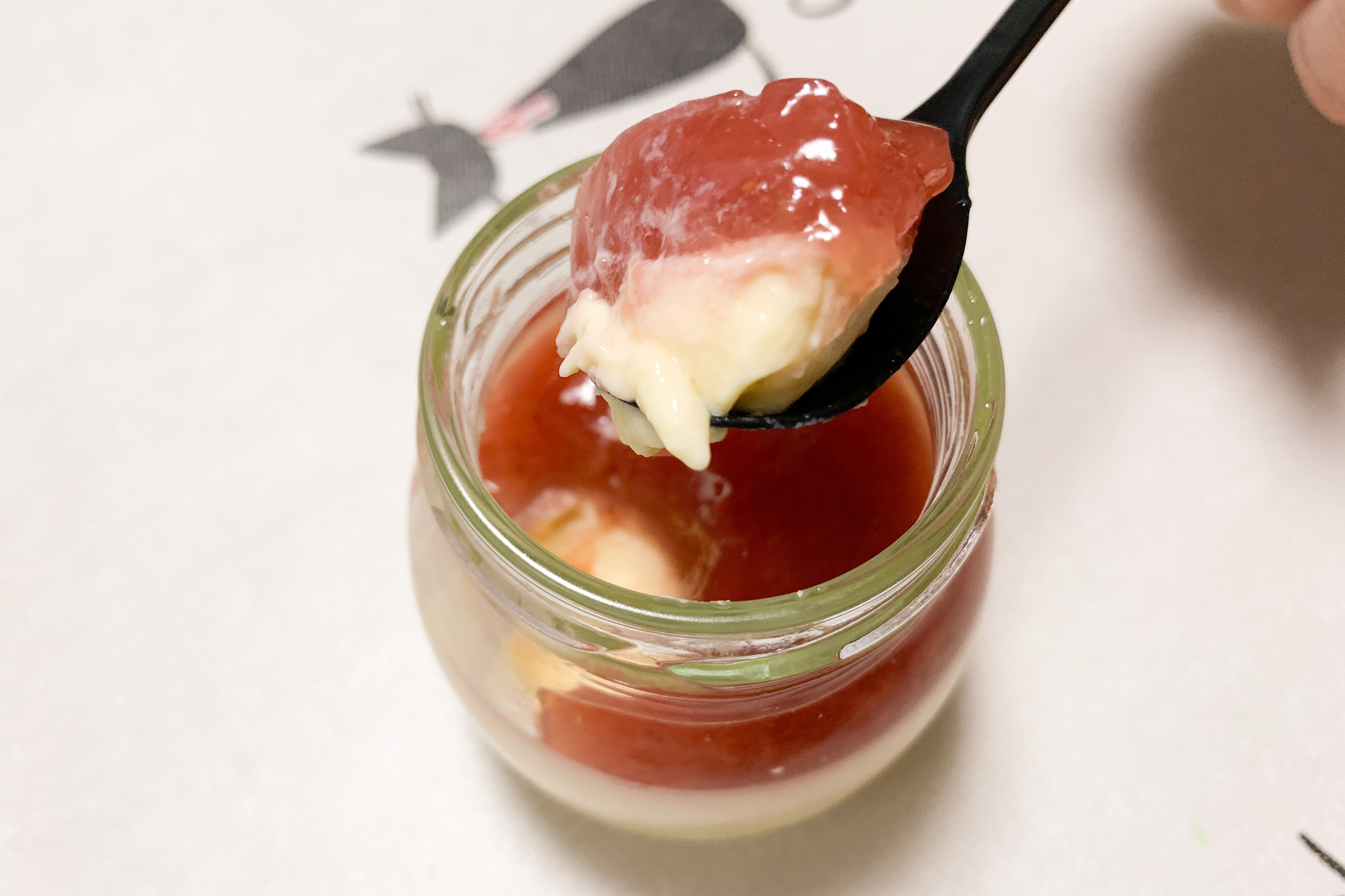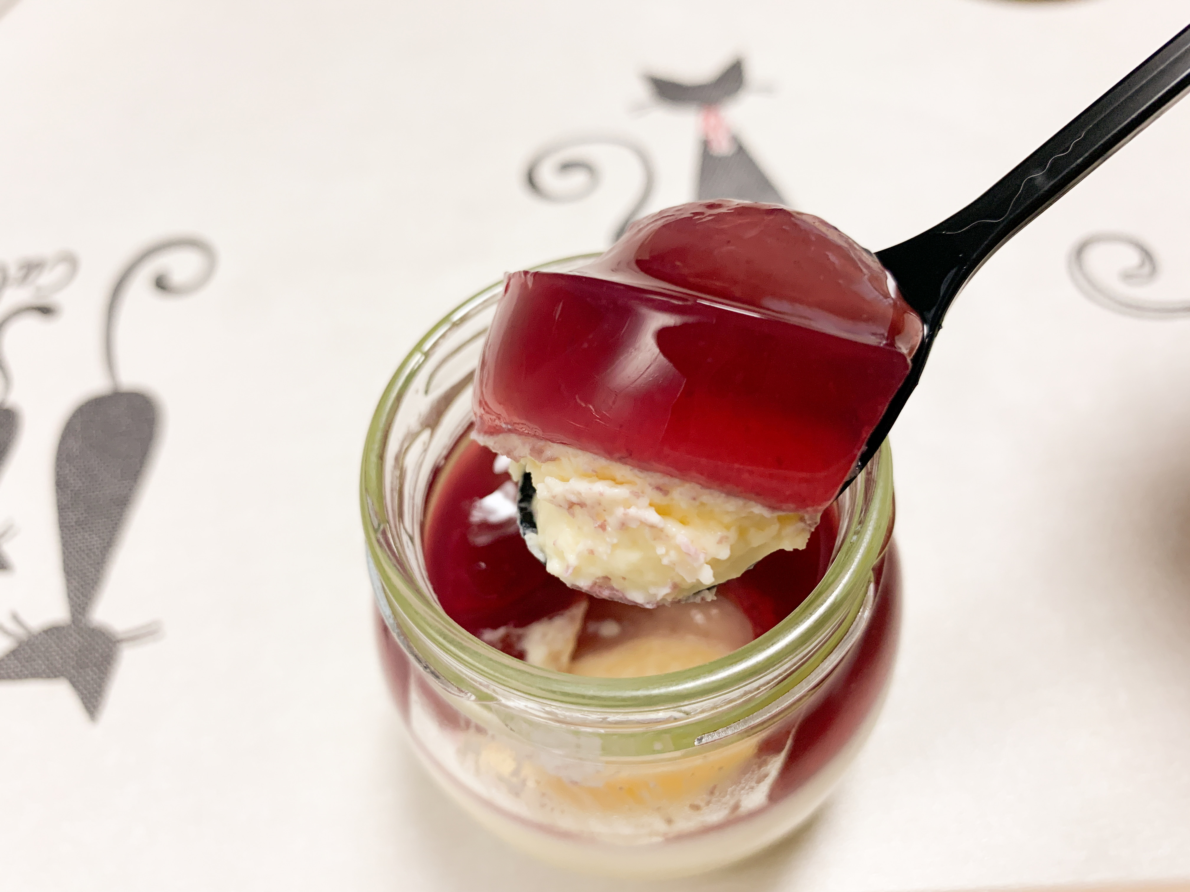 それぞれの果実のフルーツジュレがあり、その下に滑らかなプリンが入っていました。