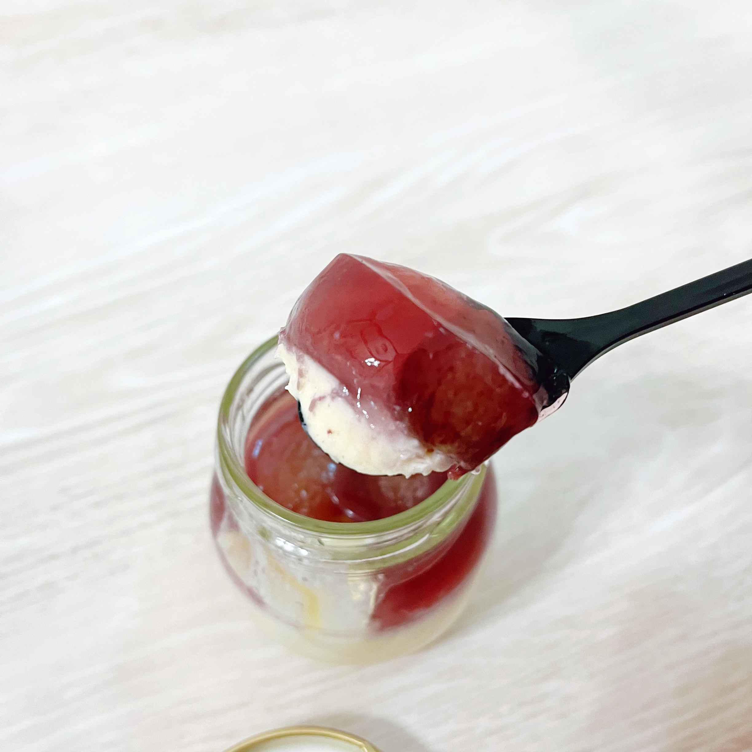赤いフルーツジュレの色が可愛く、映えスイーツです。