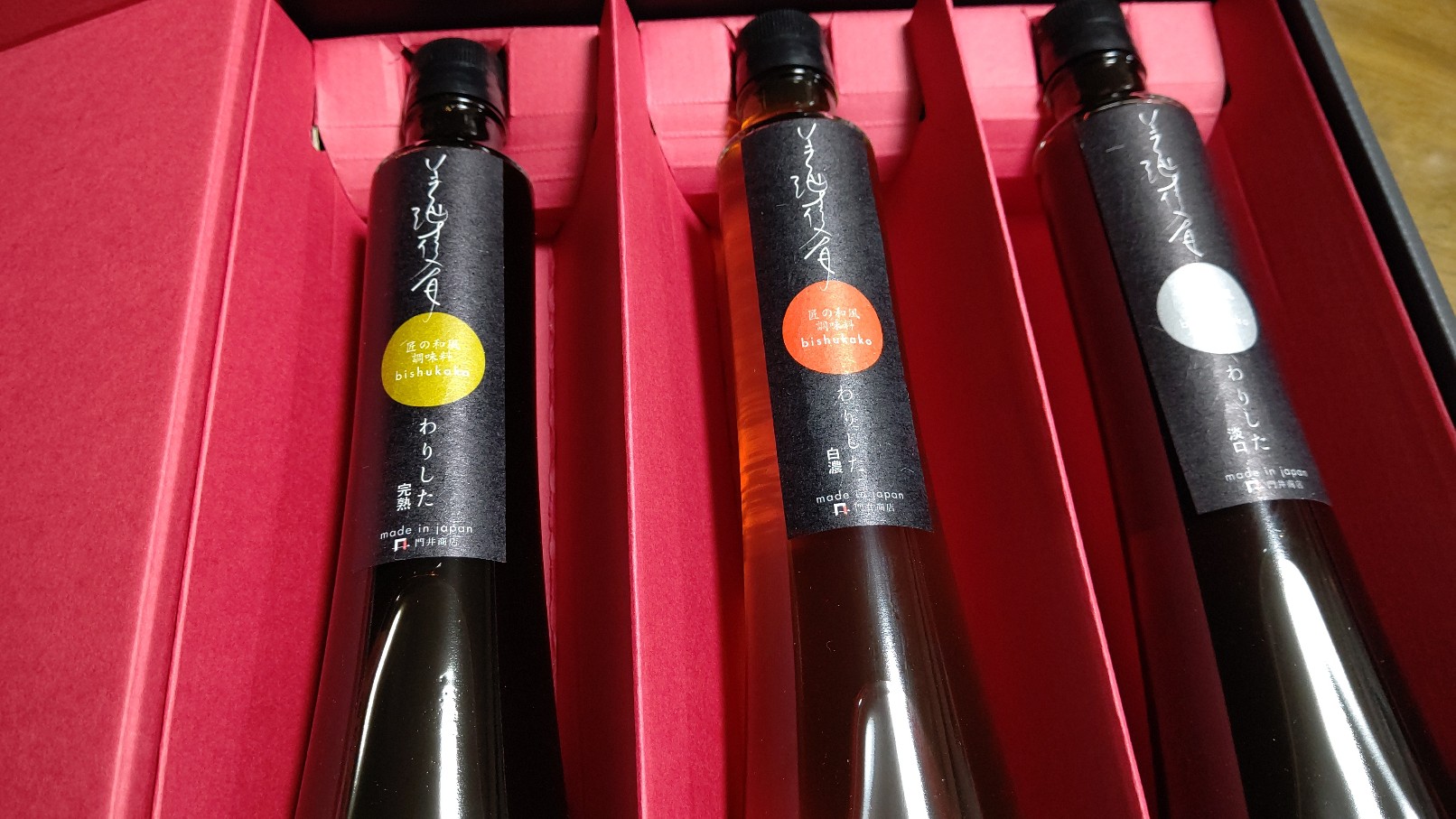 醤油、酒、みりん、昆布だしだけで作った「高級万能調味料」です。料理人が作る本格和食の味わいを探求し、開発に1年2ヶ月。徹底的にこだわってベストな配合で作り上げました。ハイレベルなコクと旨味、風味を堪能できます。基本の「わりした完熟」は、醤油の旨味を十分に感じられ、「わりした 淡口」はコクはありながら淡白な味わい。色味が薄い「わりした 白濃」は、素材の色合いを邪魔しません。すき焼きはもちろんのこと、和食全般に使用できます。高級感のあるパッケージで届くので、贈答用にもおすすめです。