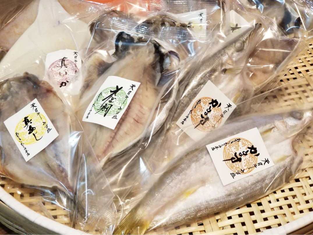 慶応二年創業の干物屋専門店の詰め合わせセット。真あじ、かます、えぼ鯛、真いかの4種を楽しめます。国産・近海ものを、新鮮なうちに熟練した職人が一枚一枚丁寧に開きます。添加物・着色料は一切使用していません。焼くと皮はパリッとした仕上がり。噛めば噛むほど旨味がにじみ出ます。おしゃれな模様の化粧箱で届くので、贈答用にもピッタリです。
