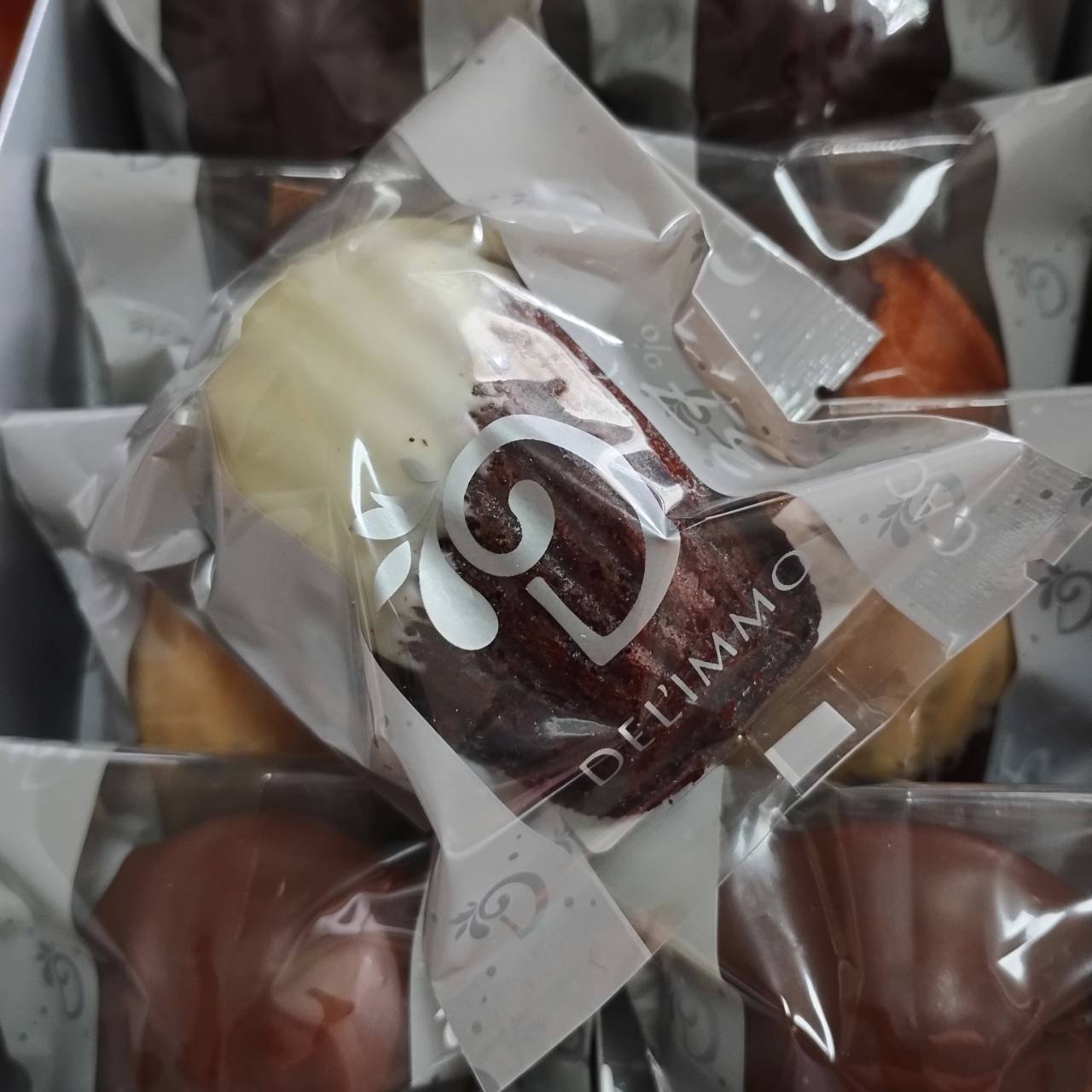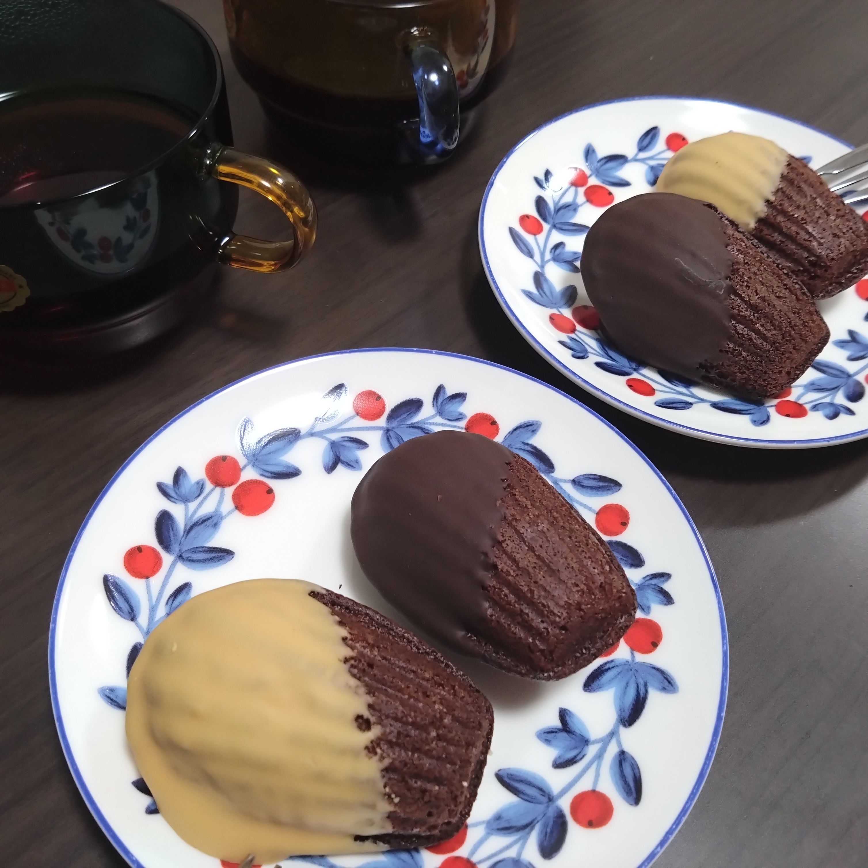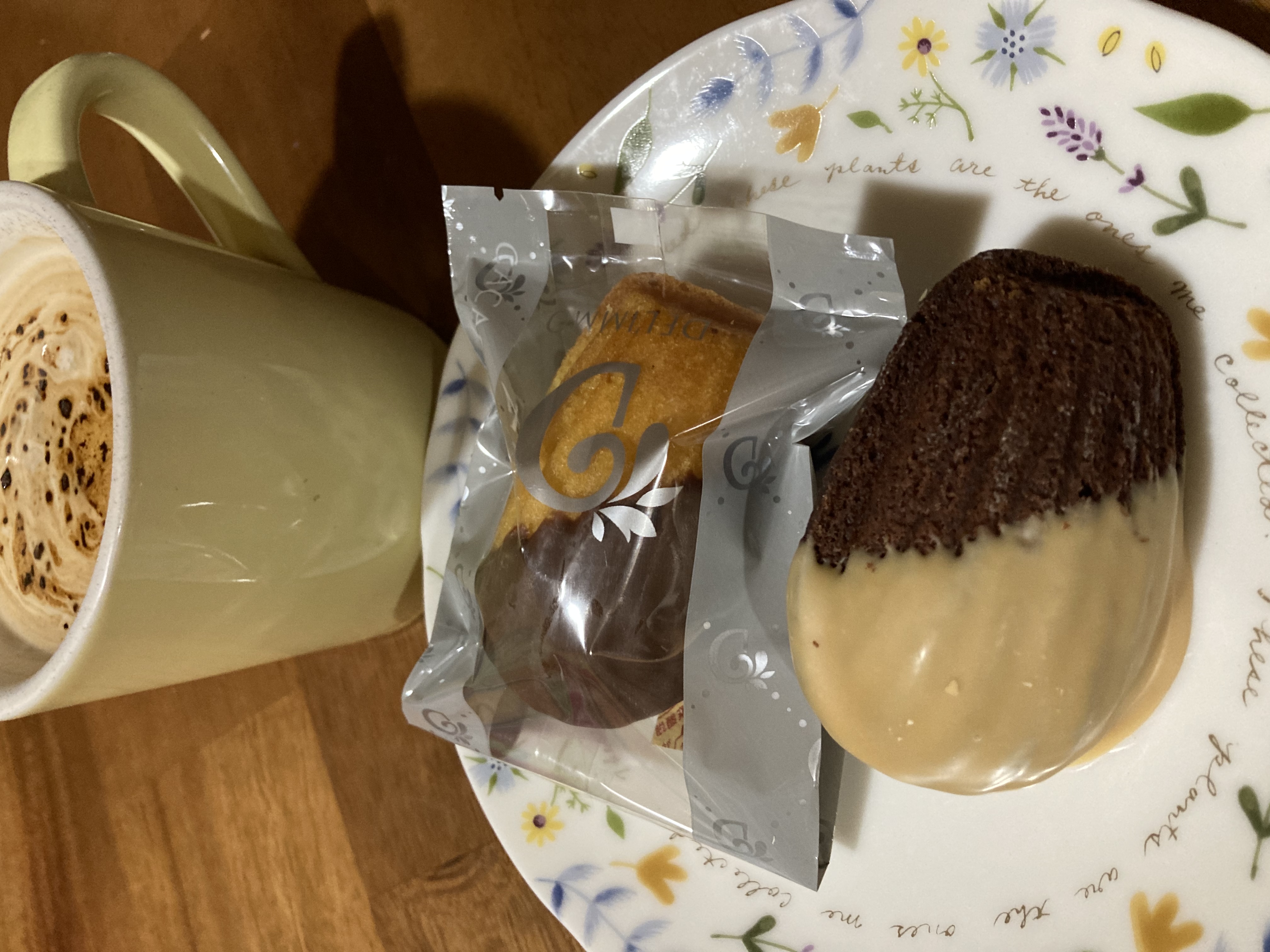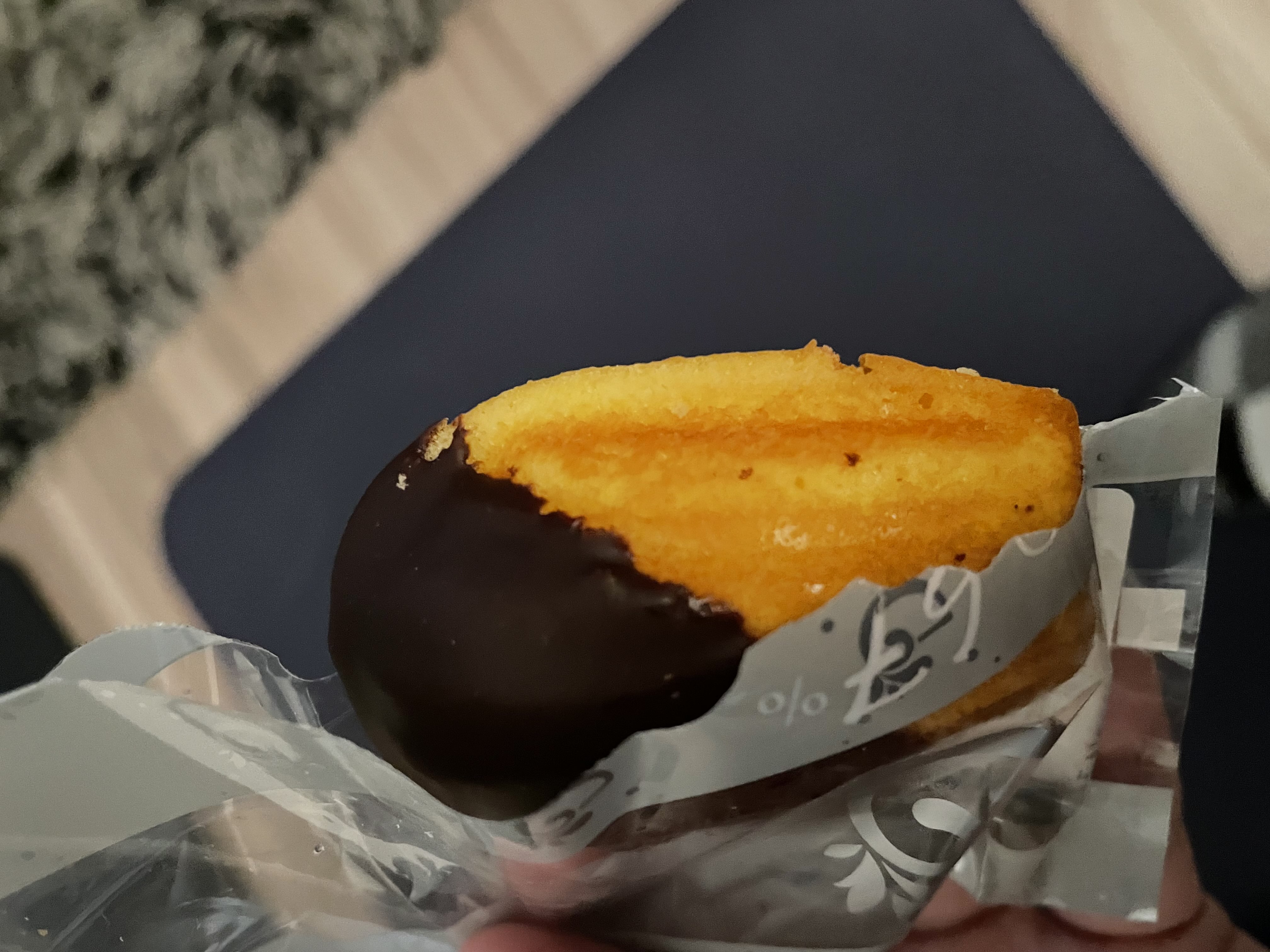 苦味があって甘さ控えめのチョコレートがディップされた大人のマドレーヌです!ビター感が気に入りました!