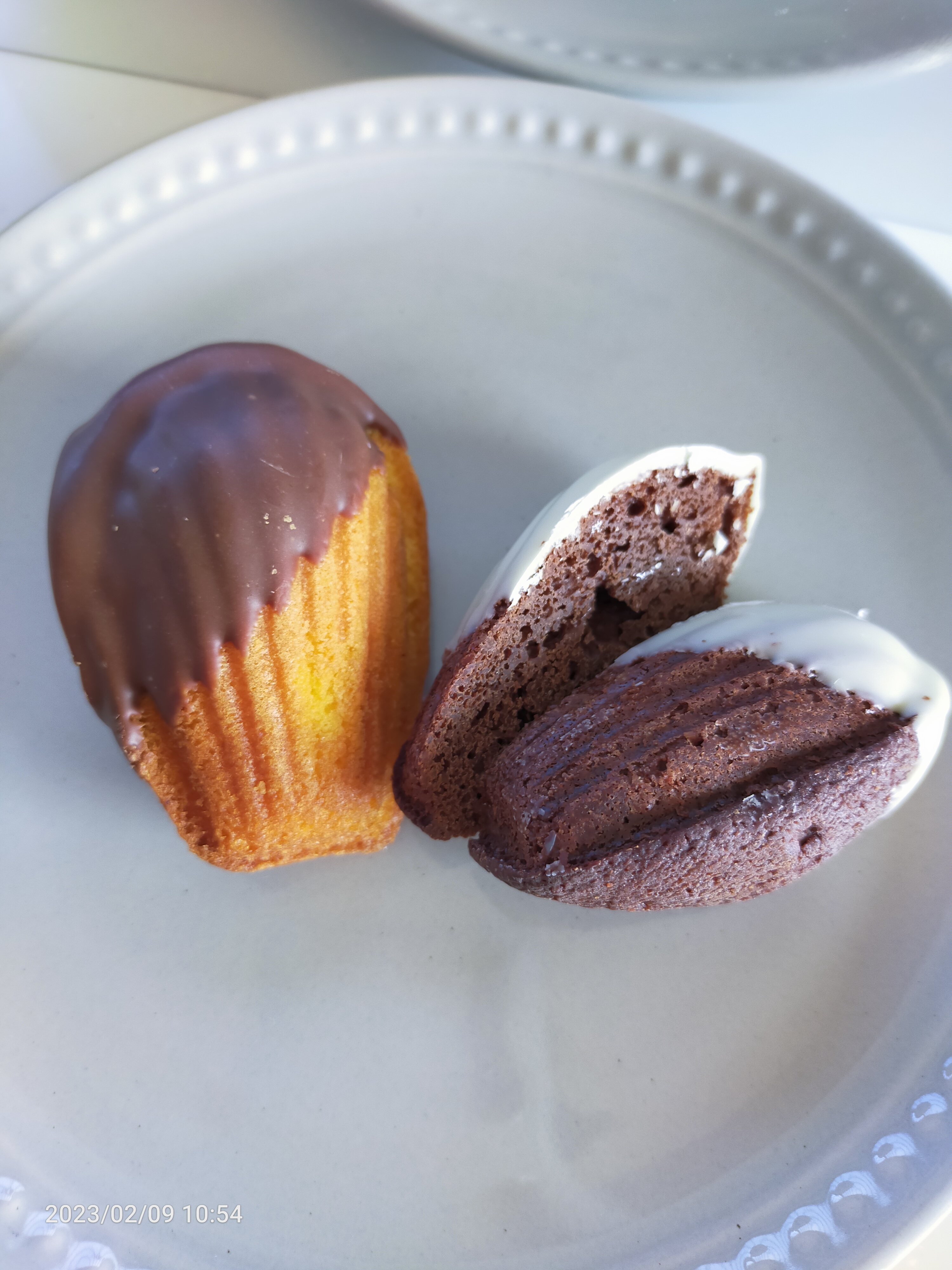 バターの香りがフワッと香り、しっとりとした生地がとても美味しかったです。ディップされていたブロンドチョコレートは、ほんのりと塩味のあるチョコレートで、ショコラ生地との絶妙な風味でした。