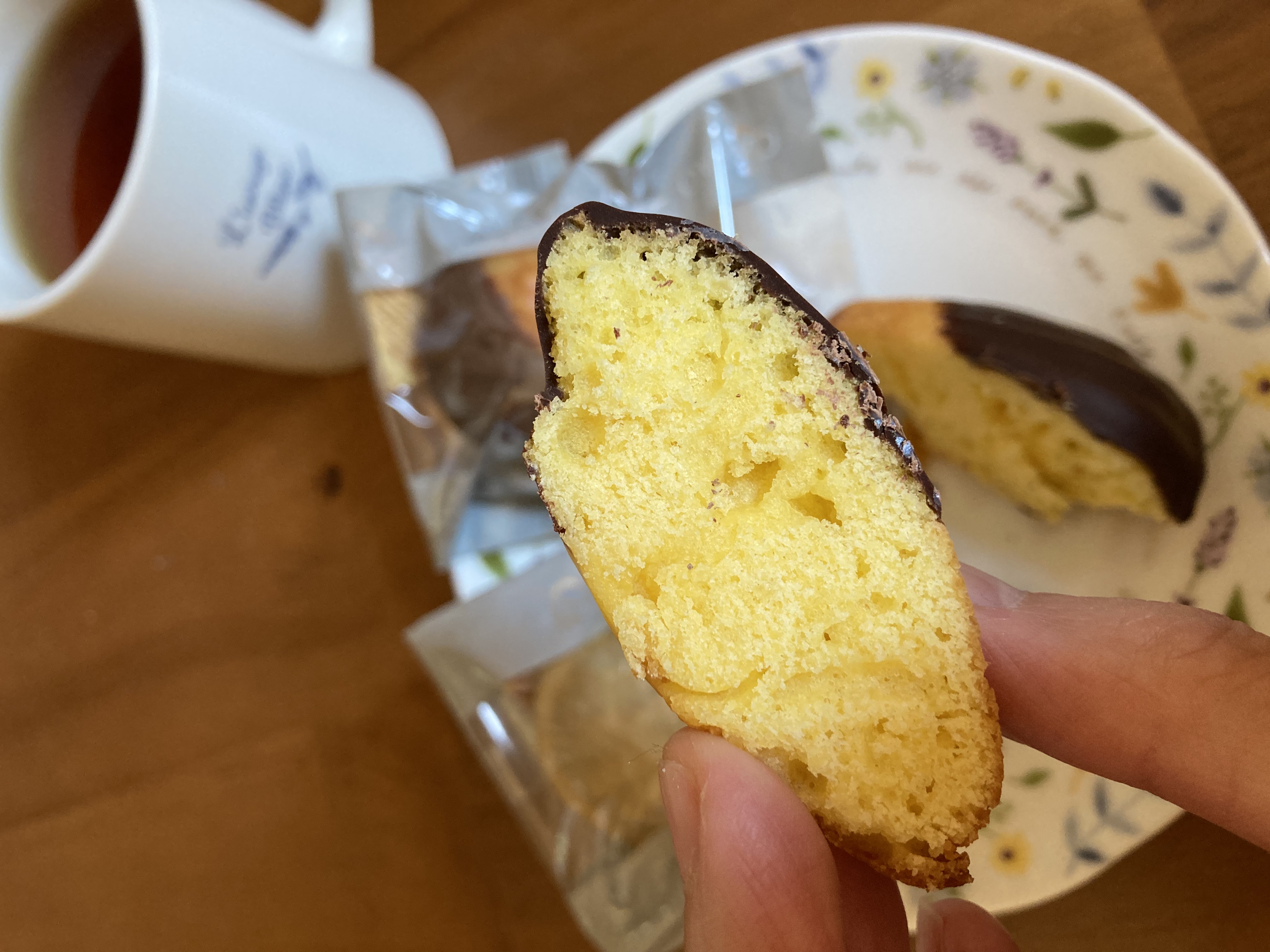 ディップされたチョコレートはちょっと苦味があって、絶妙な食べ応え。チョコレートがビターなので、生地の甘さがより挽きたてられている感じです!