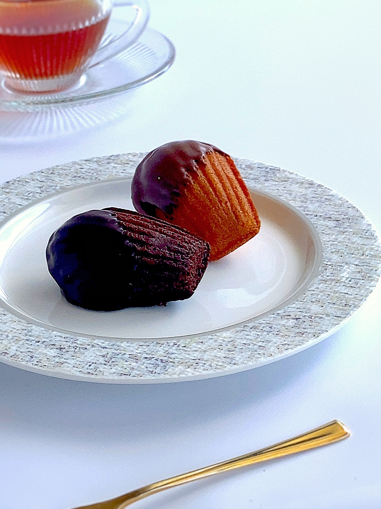 マドレーヌには、ショコラティエこだわりのチョコレートを贅沢にディップ。