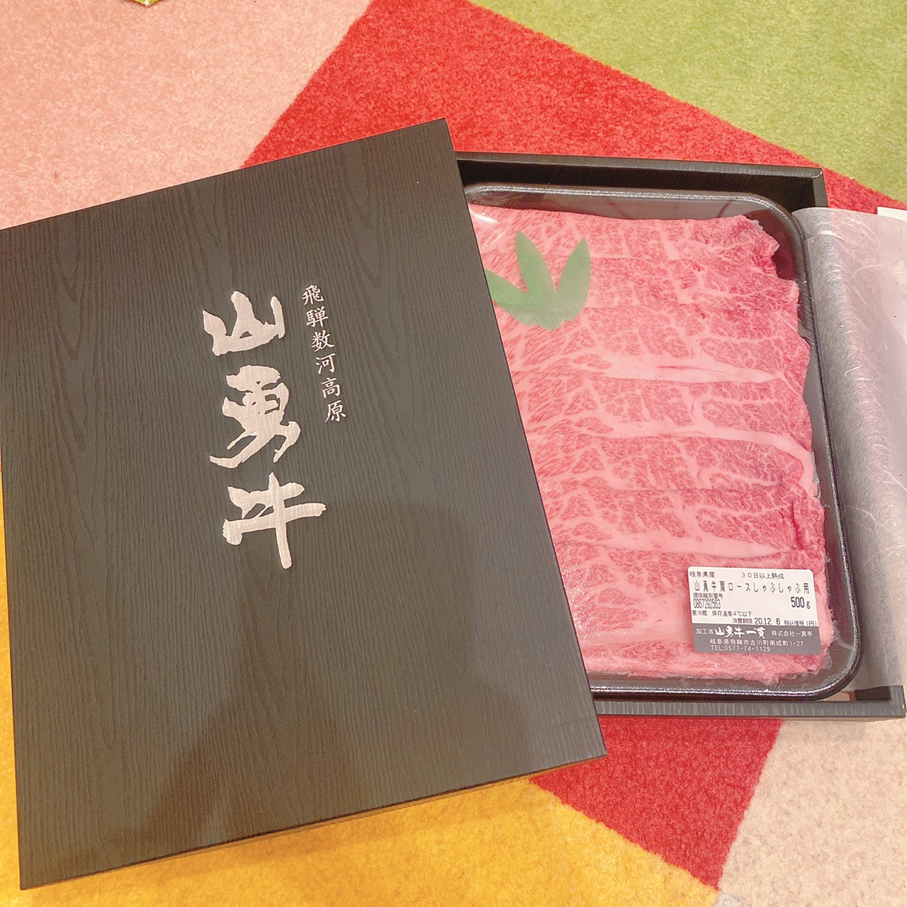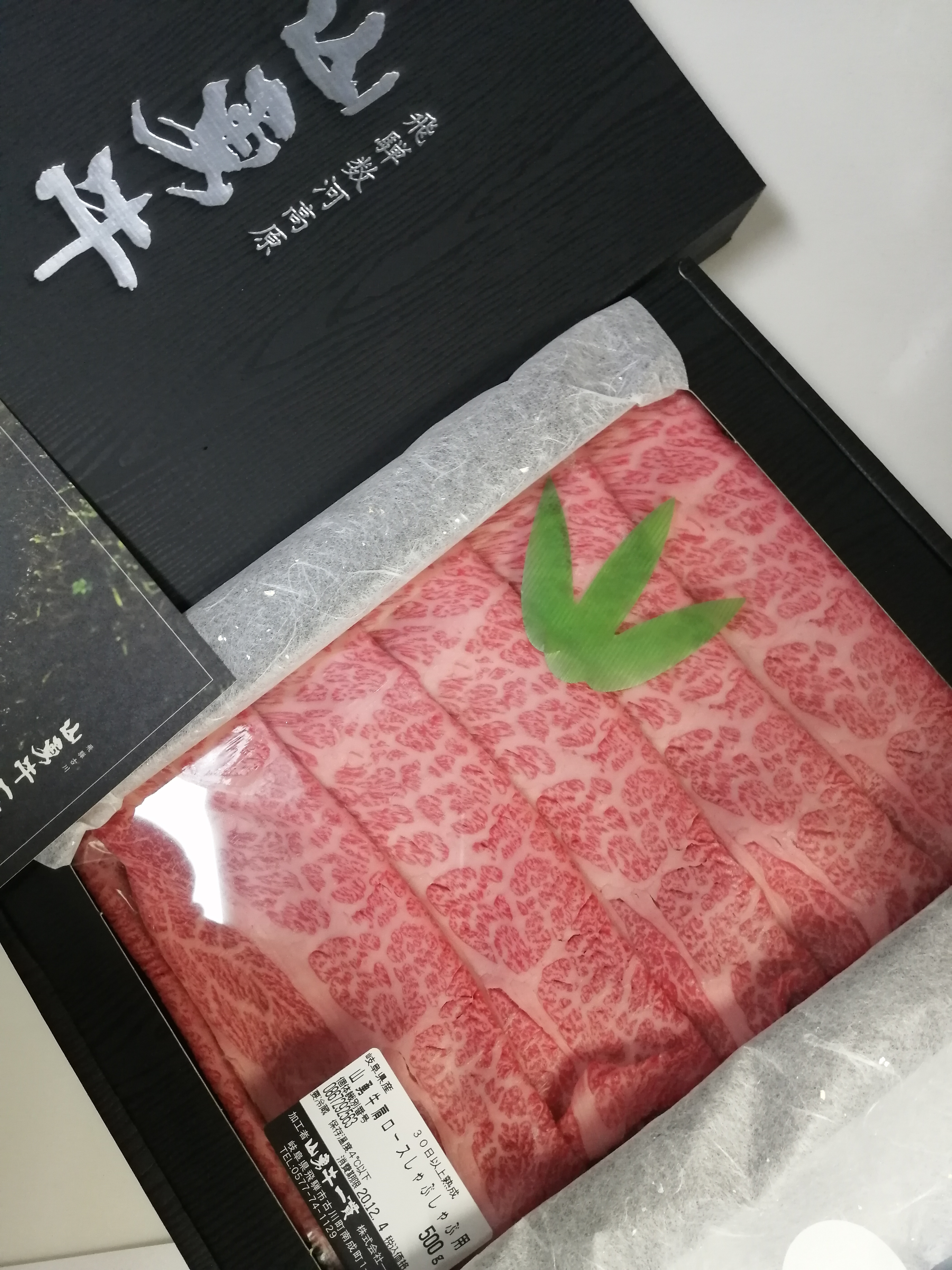 高級感のある黒い箱を開けると、美しい和紙に包まれたお肉が表れます。
