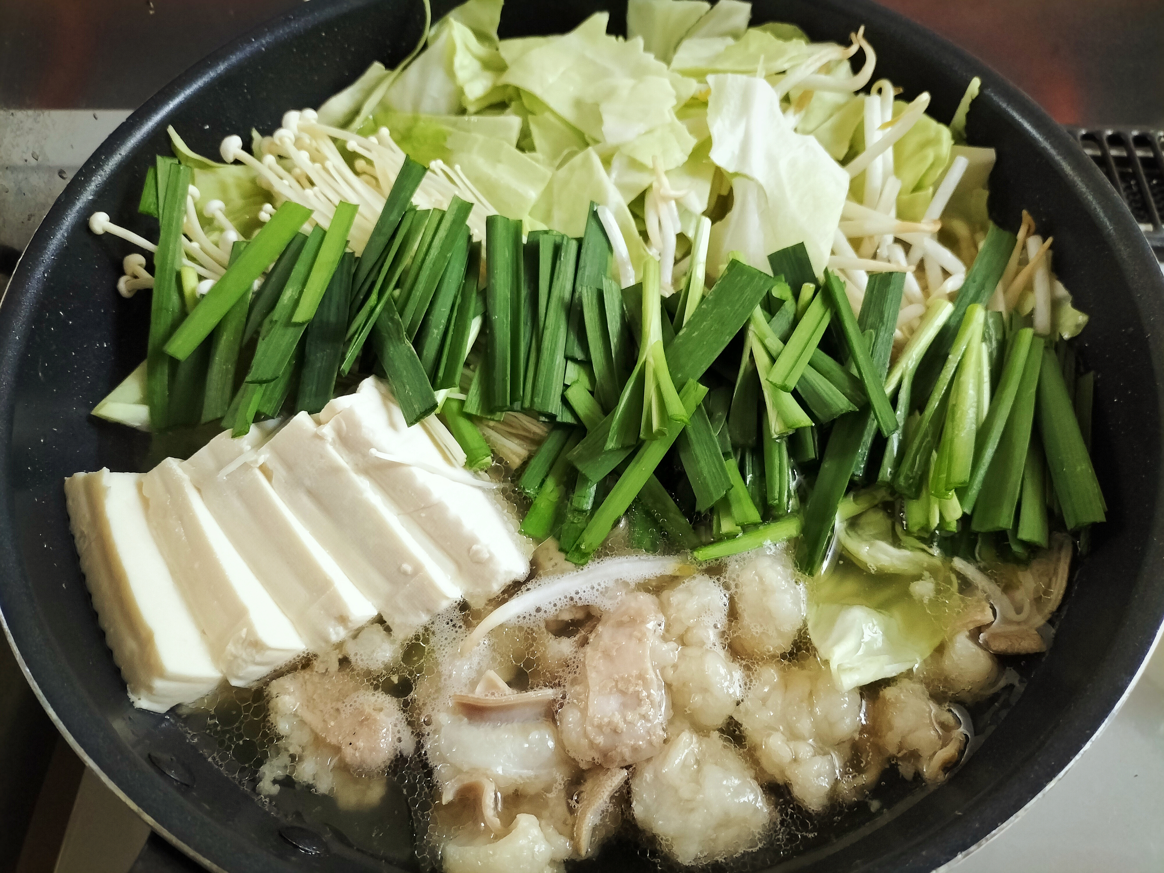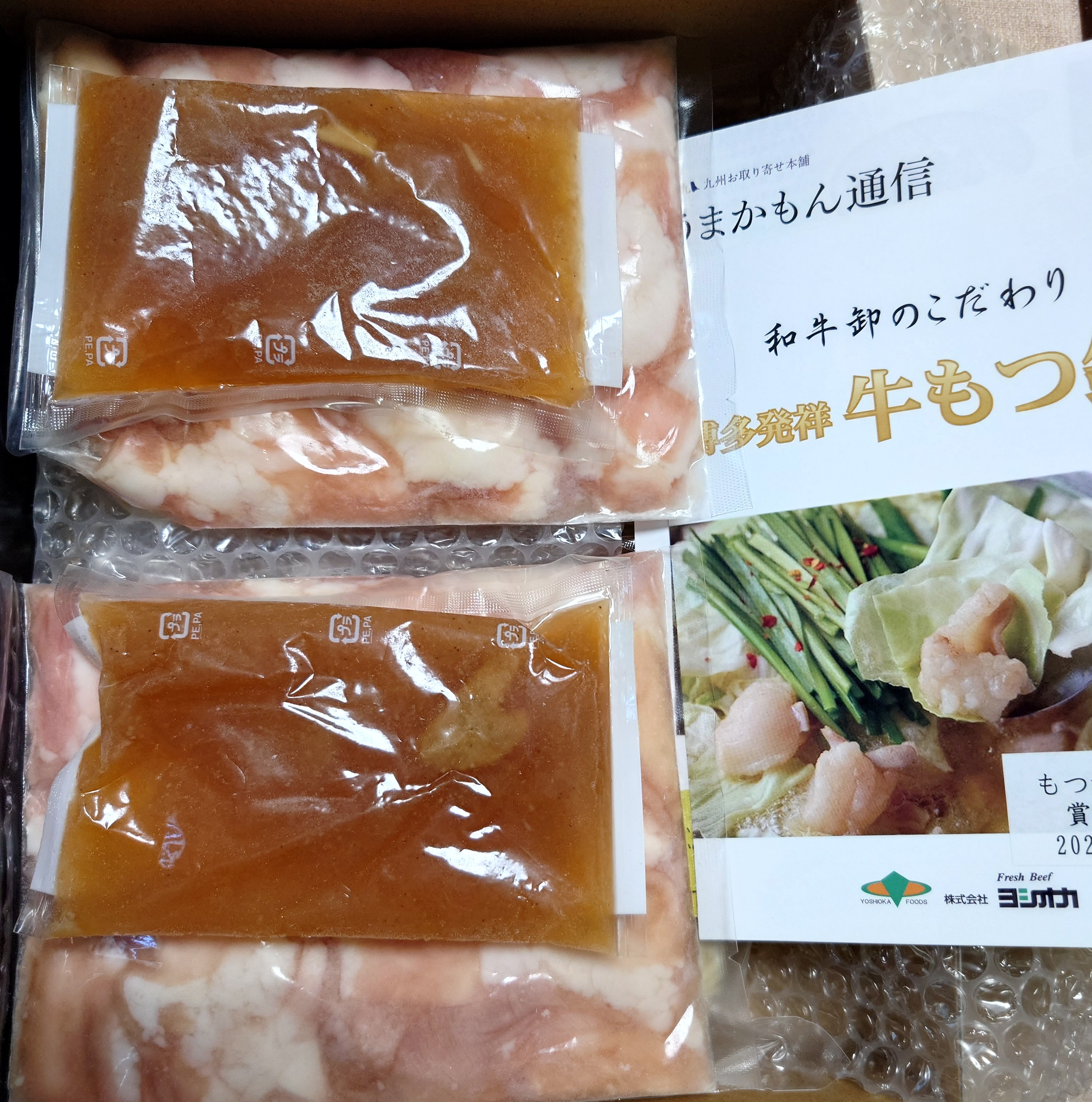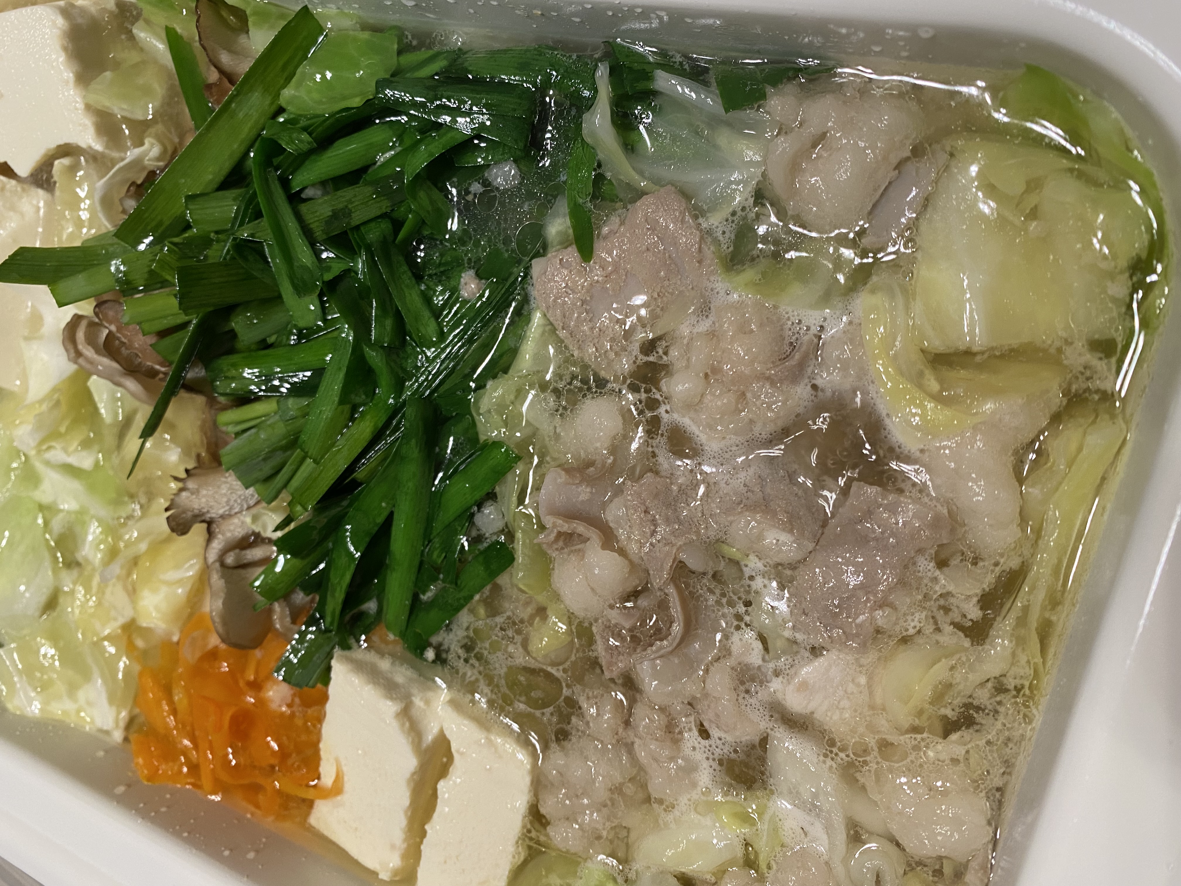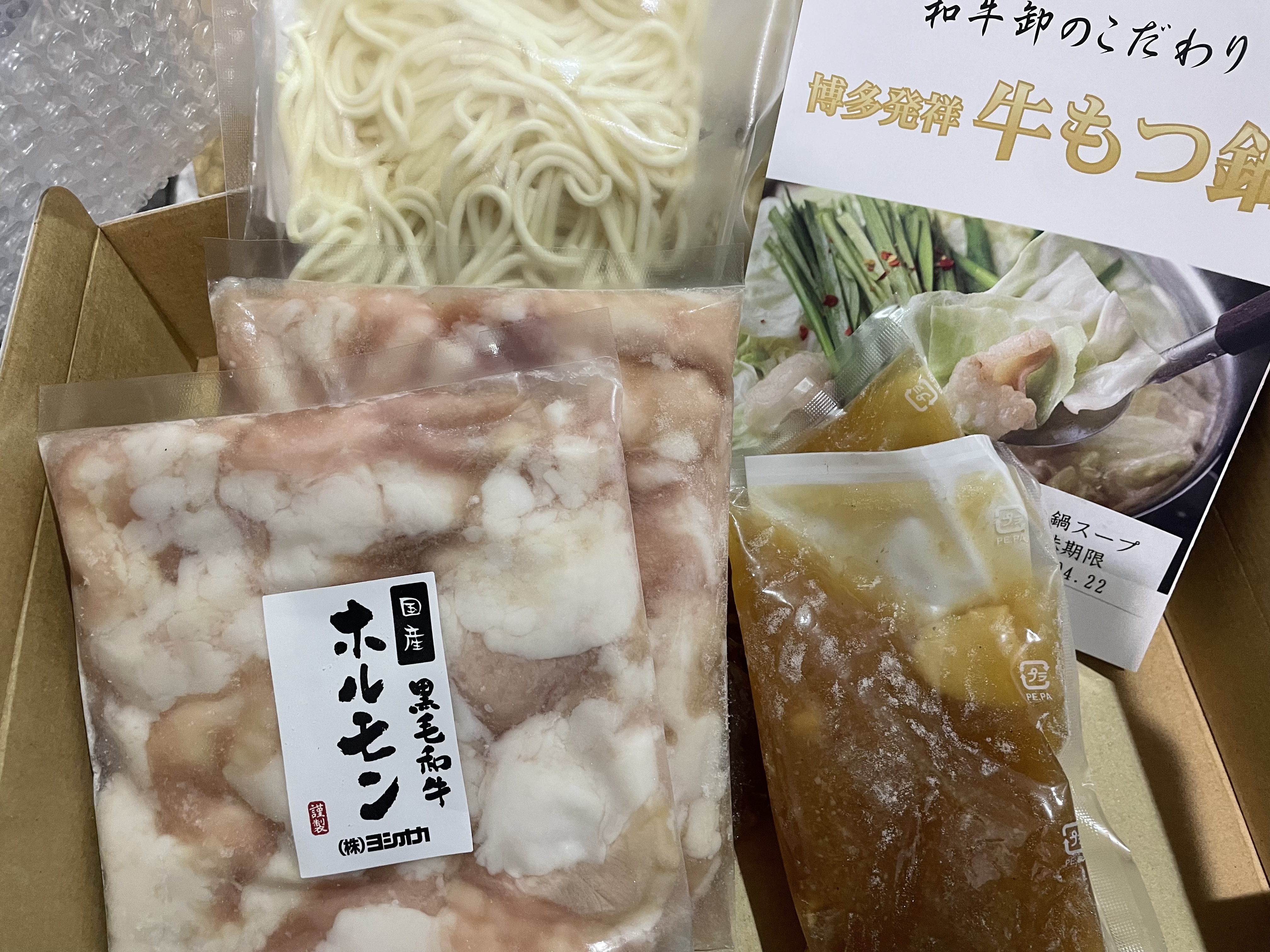 説明書通りに前日解凍して、モツを軽く下茹でして野菜をたっぷり入れたもつ鍋にしました。もつは臭みが全然なくプリプリでとても美味しかったです!スープもあっさりしているのにモツの脂が溶け込んで身体に染みる〜!寒い冬に食べたくなる味!締めのちゃんぽん麺もスープをしっかり吸ってするすると食べてしましました。白米と卵を入れて雑炊にしても美味しいと書いてあったので今度は雑炊で食べてみたいなぁ!