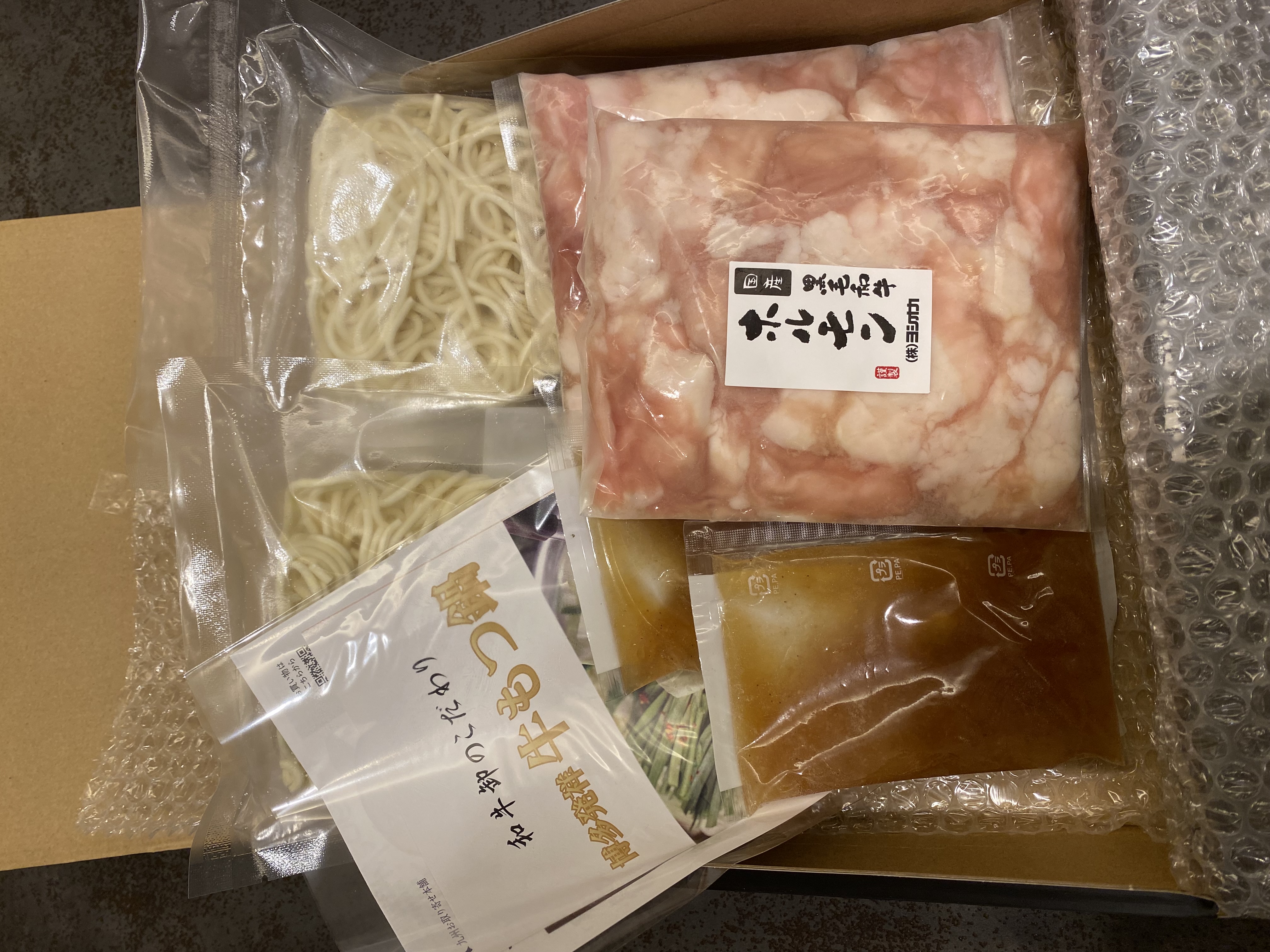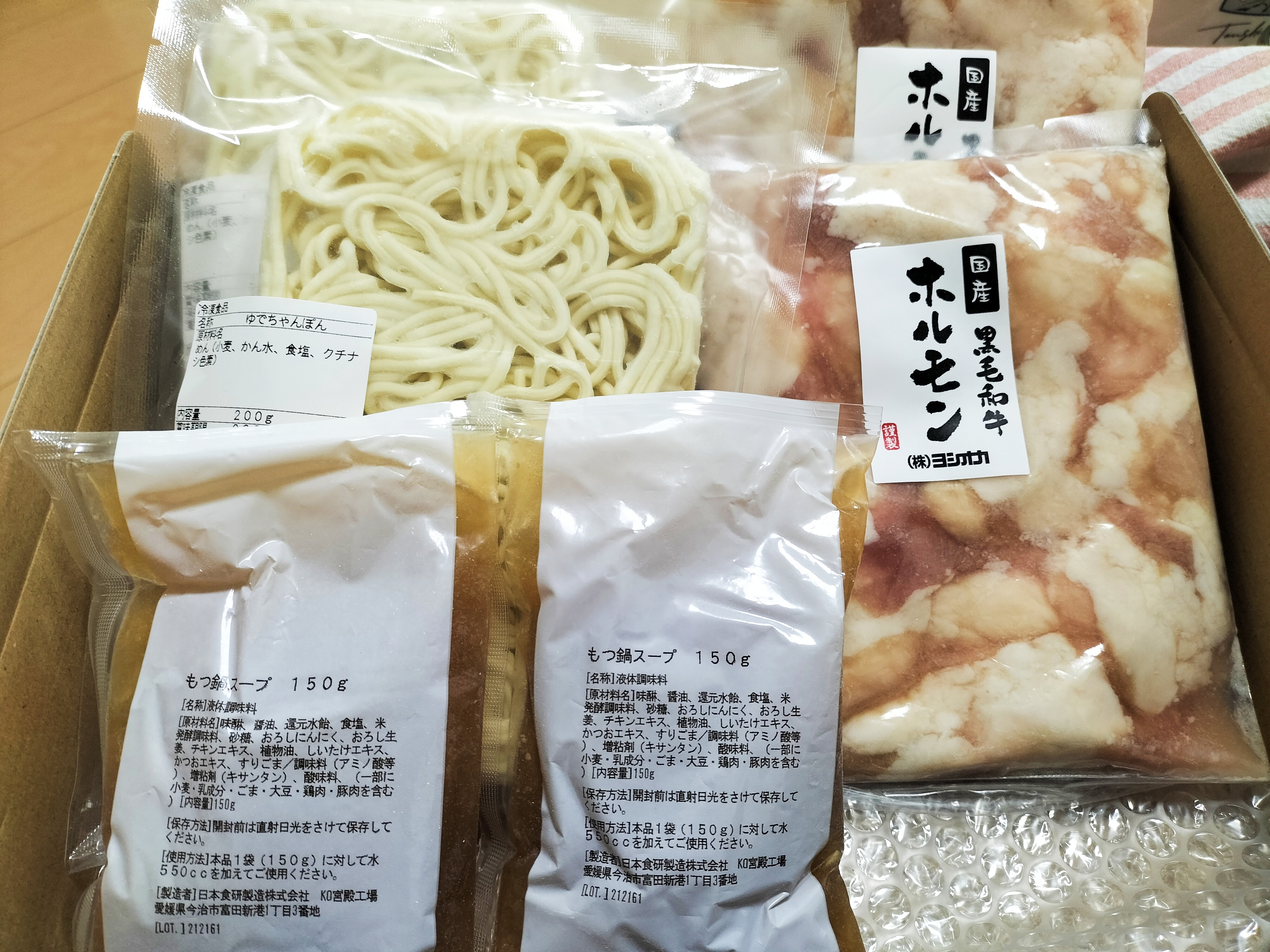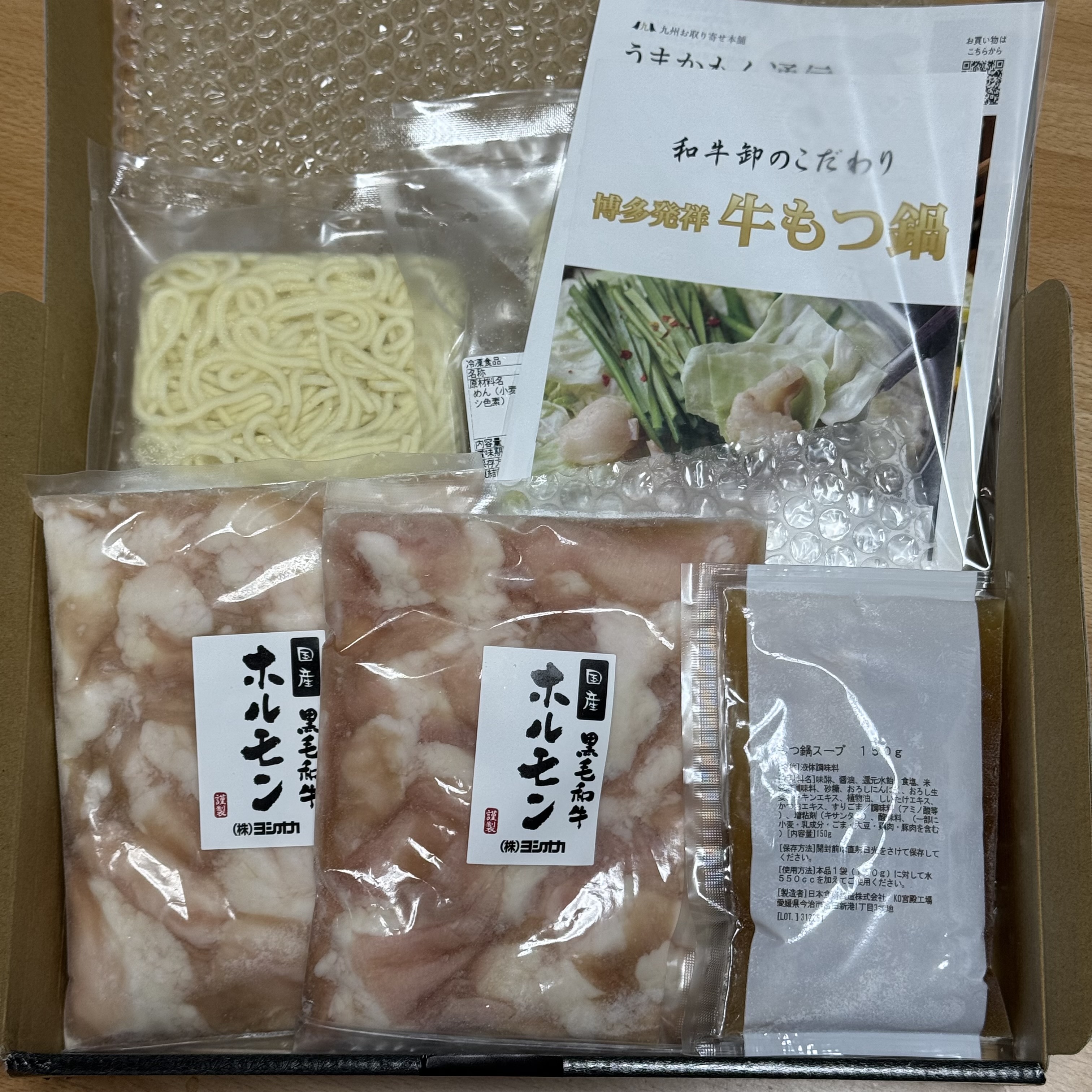 「もつ」 「特製スープ」 「ちゃんぽん麺」をセットにして専用BOXにてお届けします。