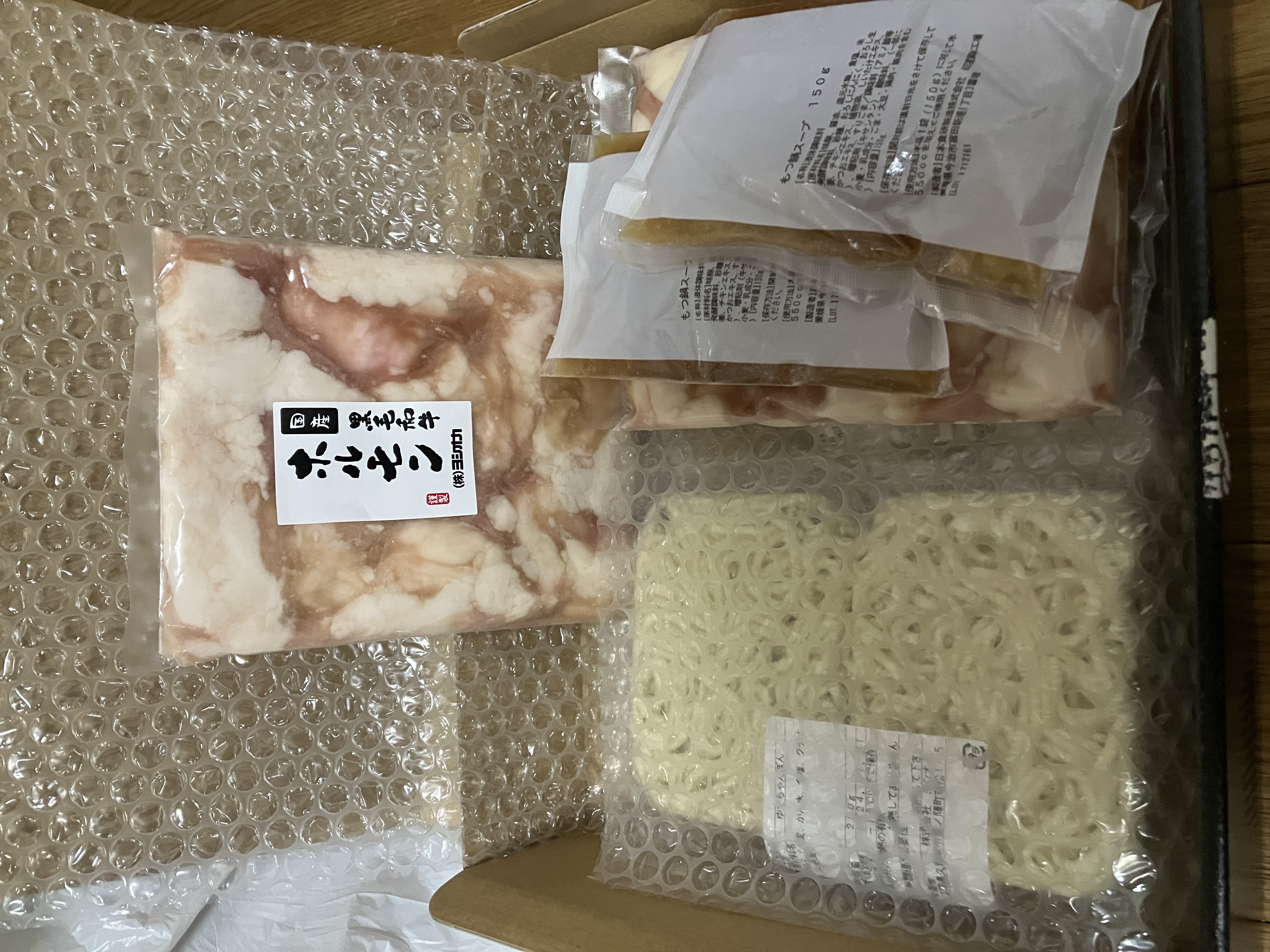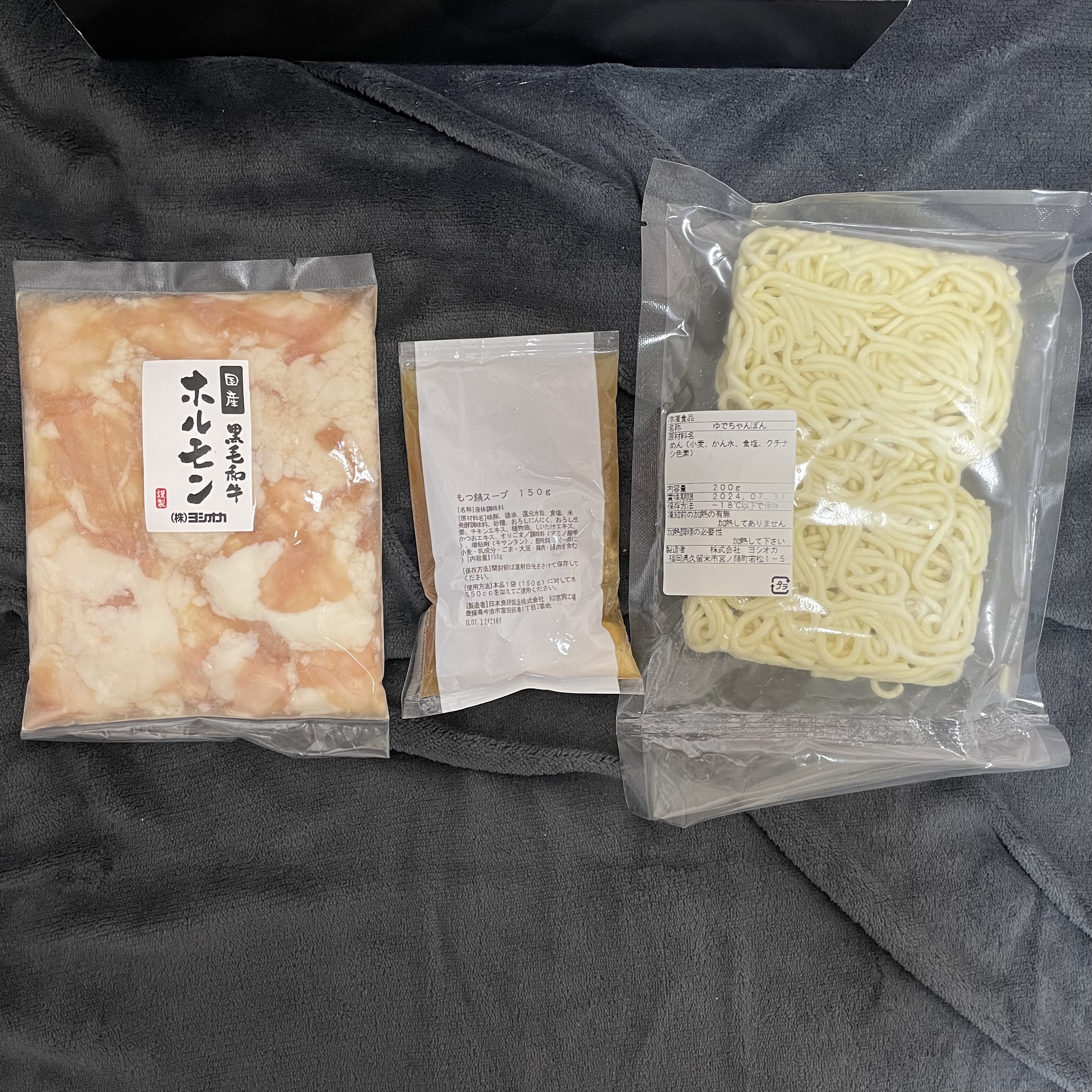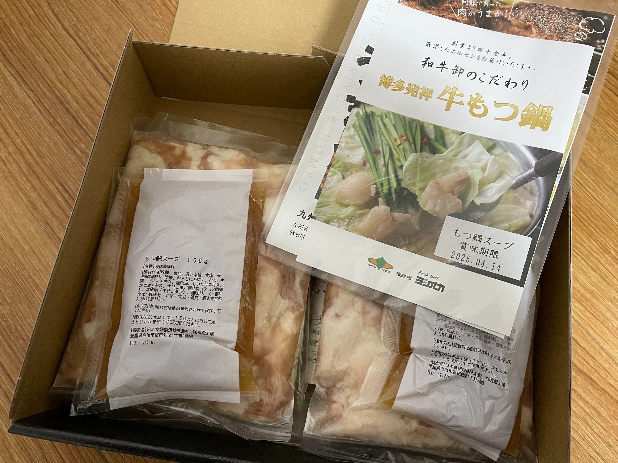 「もつ」 「特製スープ」 「ちゃんぽん麺」をセットにして専用BOXにてお届けします。