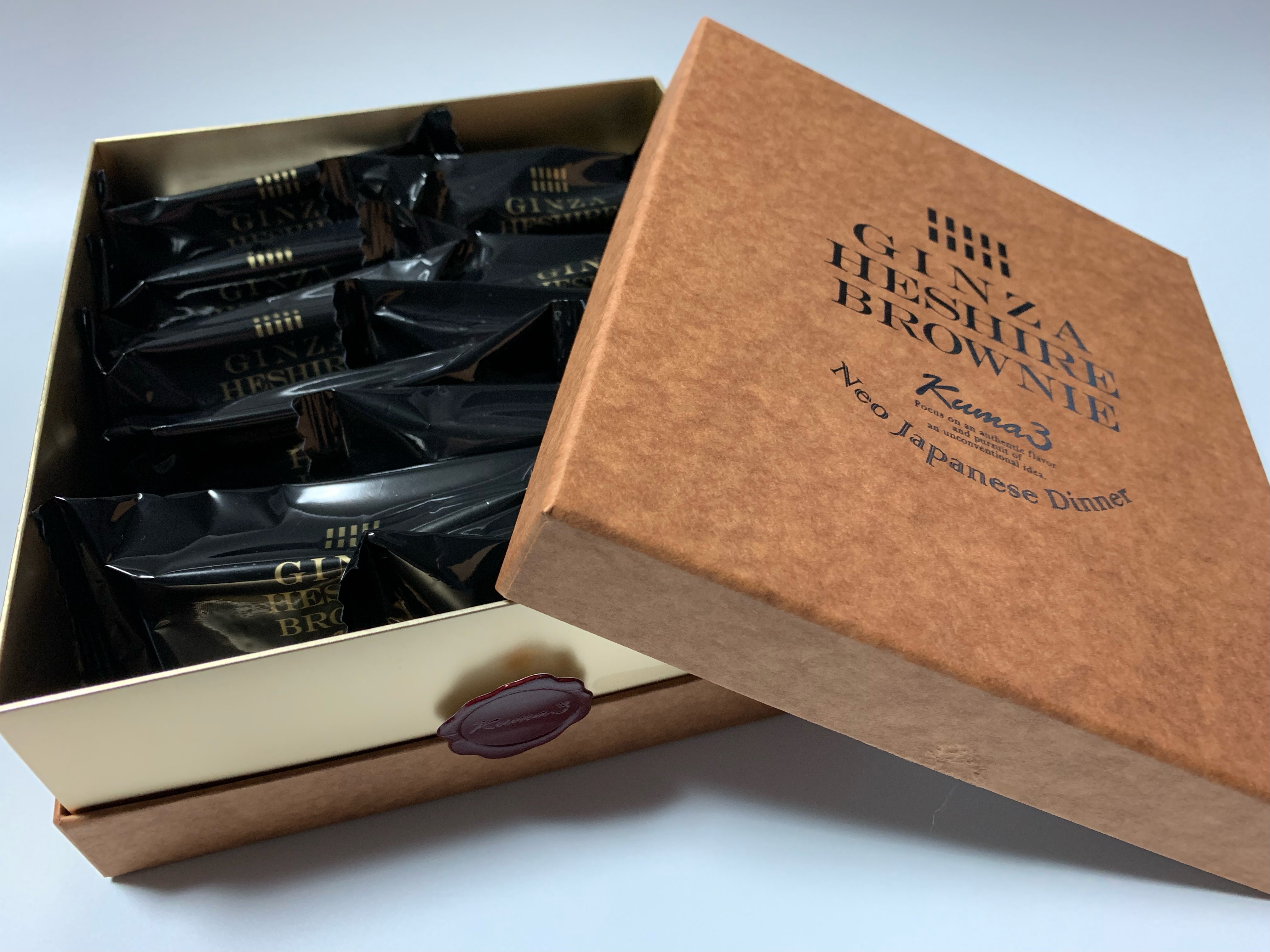銀座の日本料理「Kuma3(クマサン)」がプロデュースした「ブラウニー(プレーン)」です。フランス中西部の伝統ある「最高級発酵バター」やフランス産ヴァローナ社の「高級チョコレート」、長崎県五島列島のブランド塩「んまか塩」等の厳選素材にこだわった「オトナの極上ブラウニー」。封蠟で閉じたスタイリッシュなボックスで届くので、贈り物や手土産にピッタリです。冷蔵庫で3時間以上冷やしてから食べるのがおすすめ。独特の風味と食感をより一層感じられます。