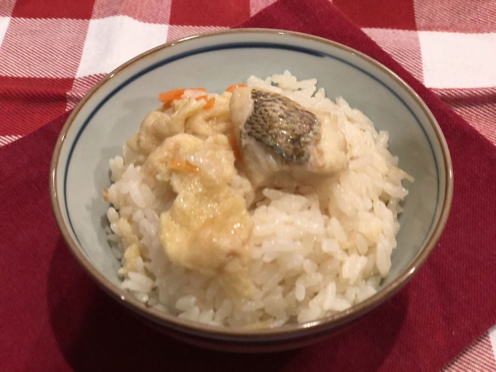 さっそく実食。焼いた鯛の身は、引きしまった食感と旨みを感じました。ご飯も上品な味わいで、箸が止まりません。なんといっても、初めて食べた「松山あげ」が絶品でした。味がしみて、噛みしめるほどに口の中に旨みが広がります。鯛の身とご飯を何度も噛みしめて、旨みをしっかり味わいました。