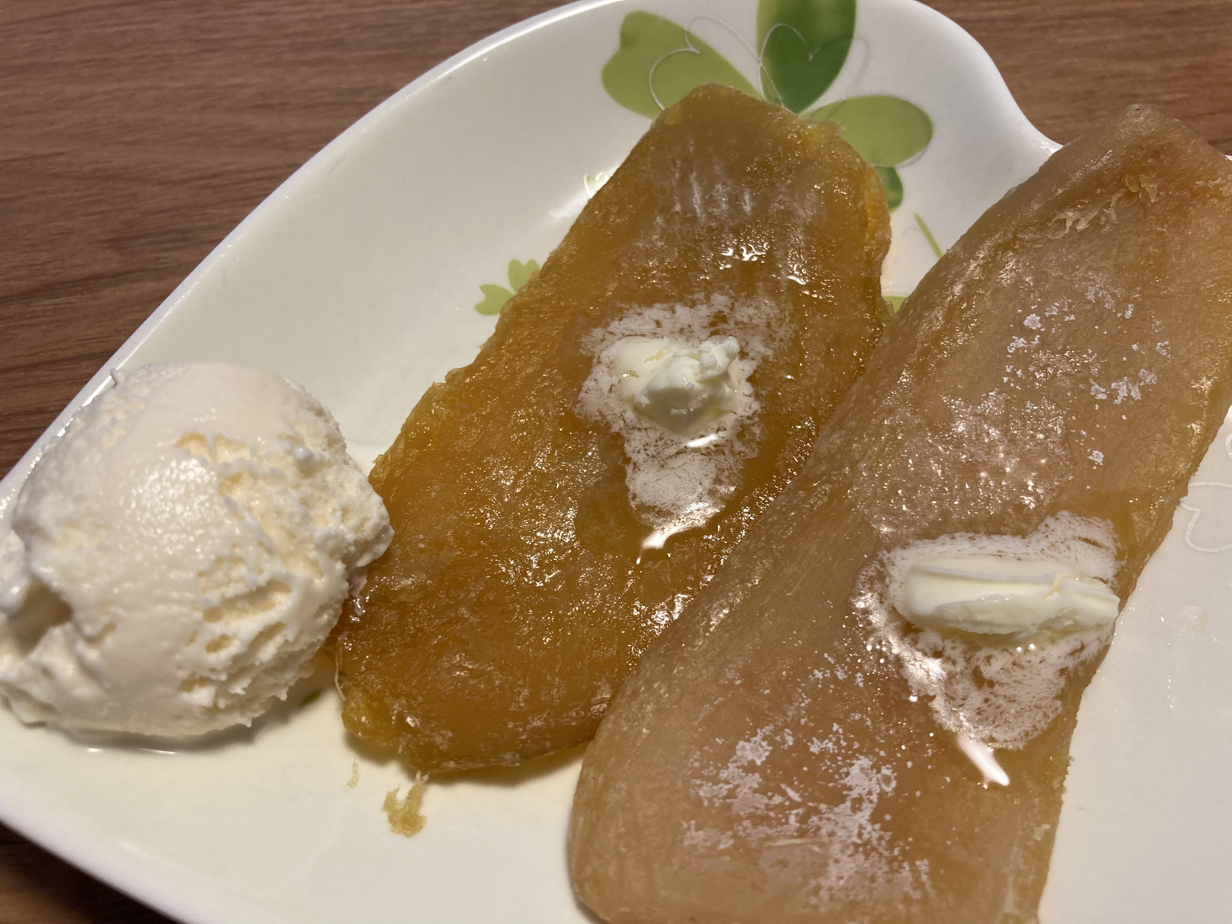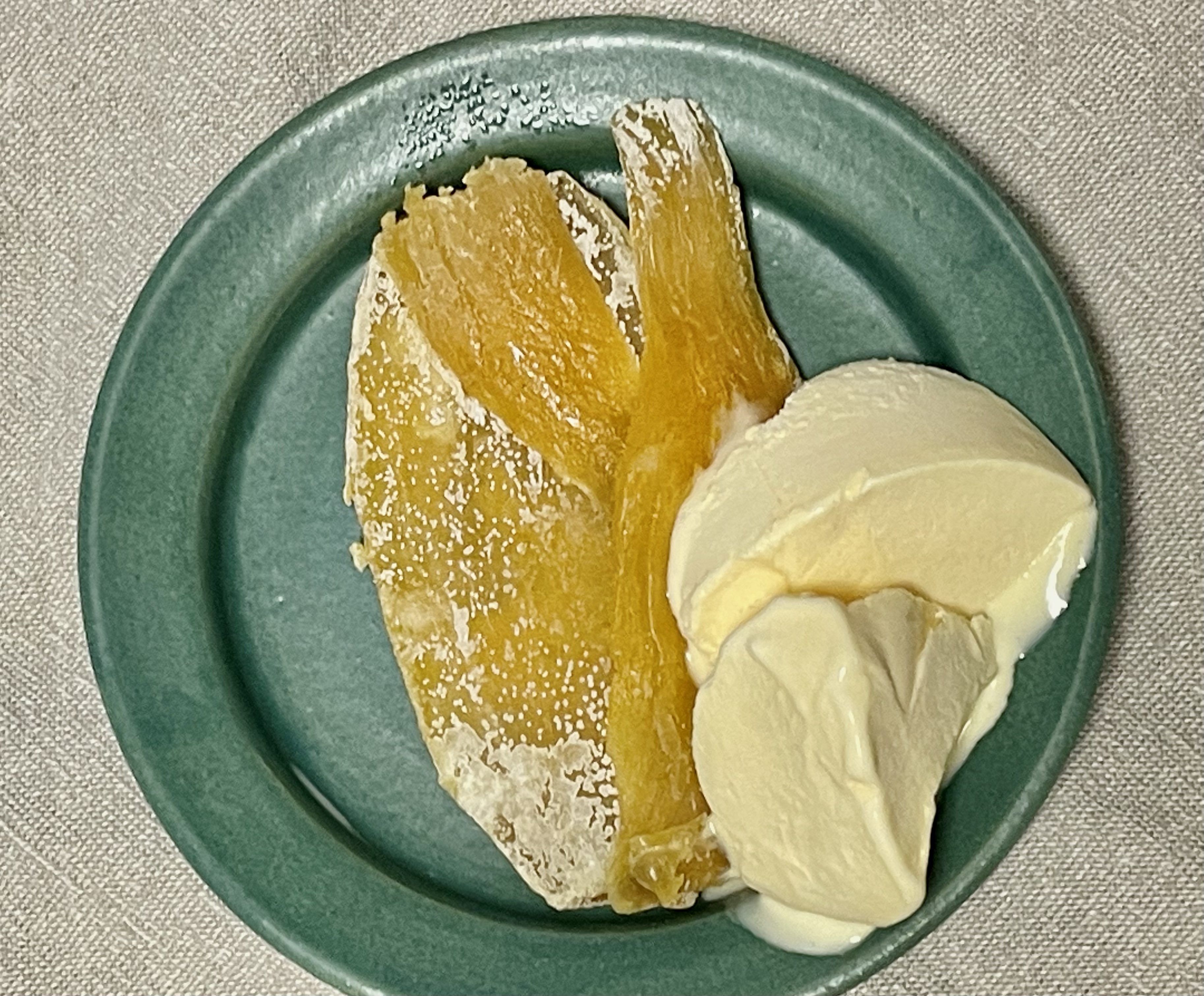 ・温めた干し芋にバニラアイスをのせるこれ、めちゃくちゃおいしいです。