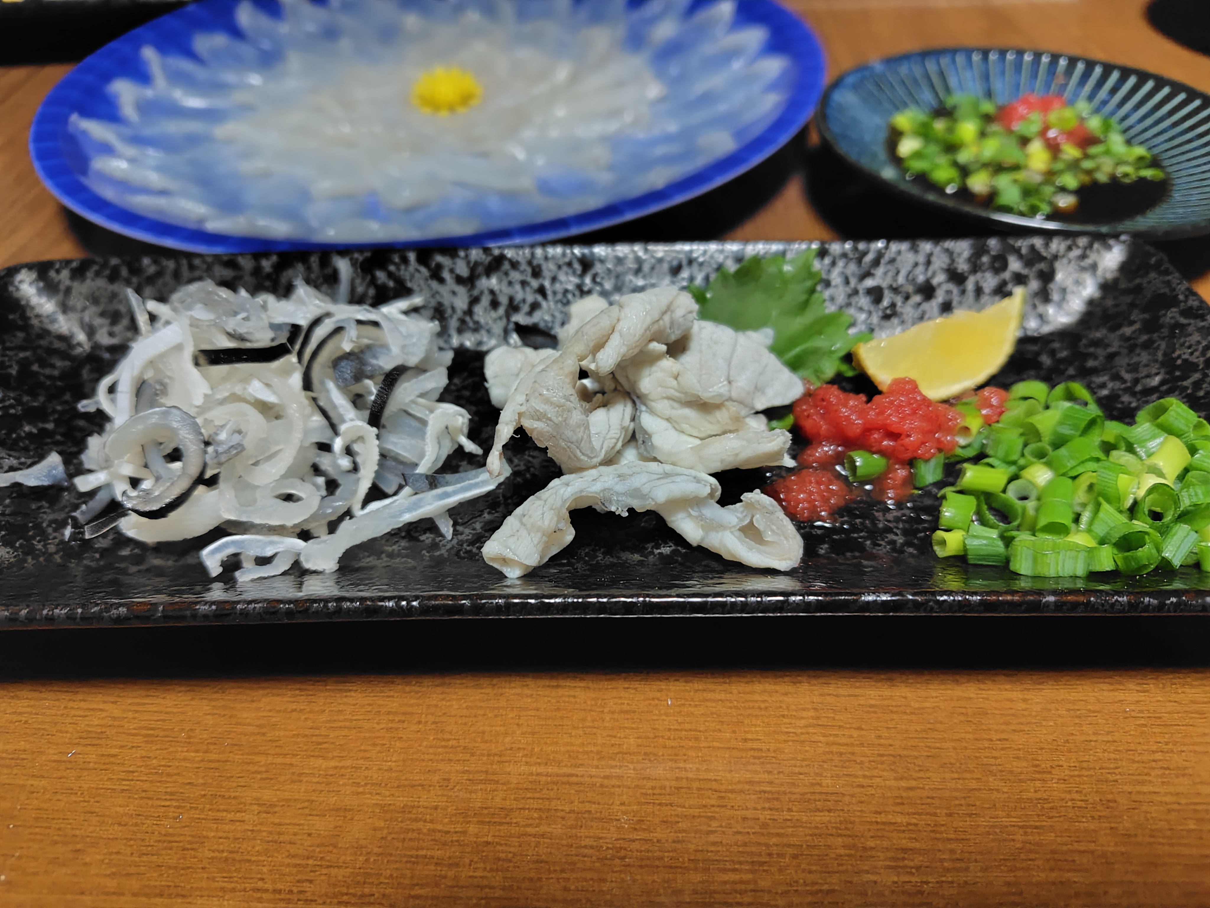 夕食、てっさの登場です。
