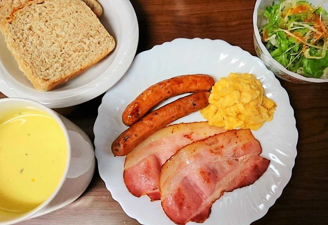 ベーコンもカリっと焼いて食べると高級ホテルの朝ごはんに出てくるような香ばしいベーコンでした♪いつも食べているベーコンとは美味しさの格が違うので是非食べて欲しいです!