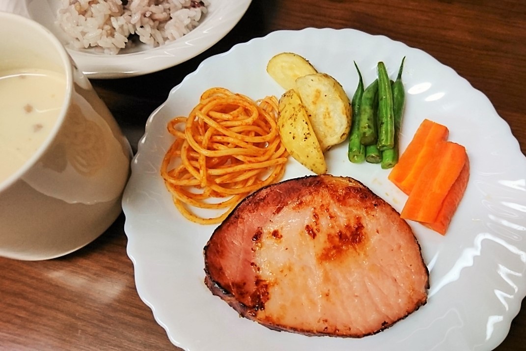 スライスのハムとセットで、ブロックのハムもありました。ブロックのハムは薄く切るのに苦戦しましたが厚みがあるのも、また美味しい。少し分厚くして朝食の焼きハムにしても良い感じです。ご飯もパンどちらでも合う万能なハムです。