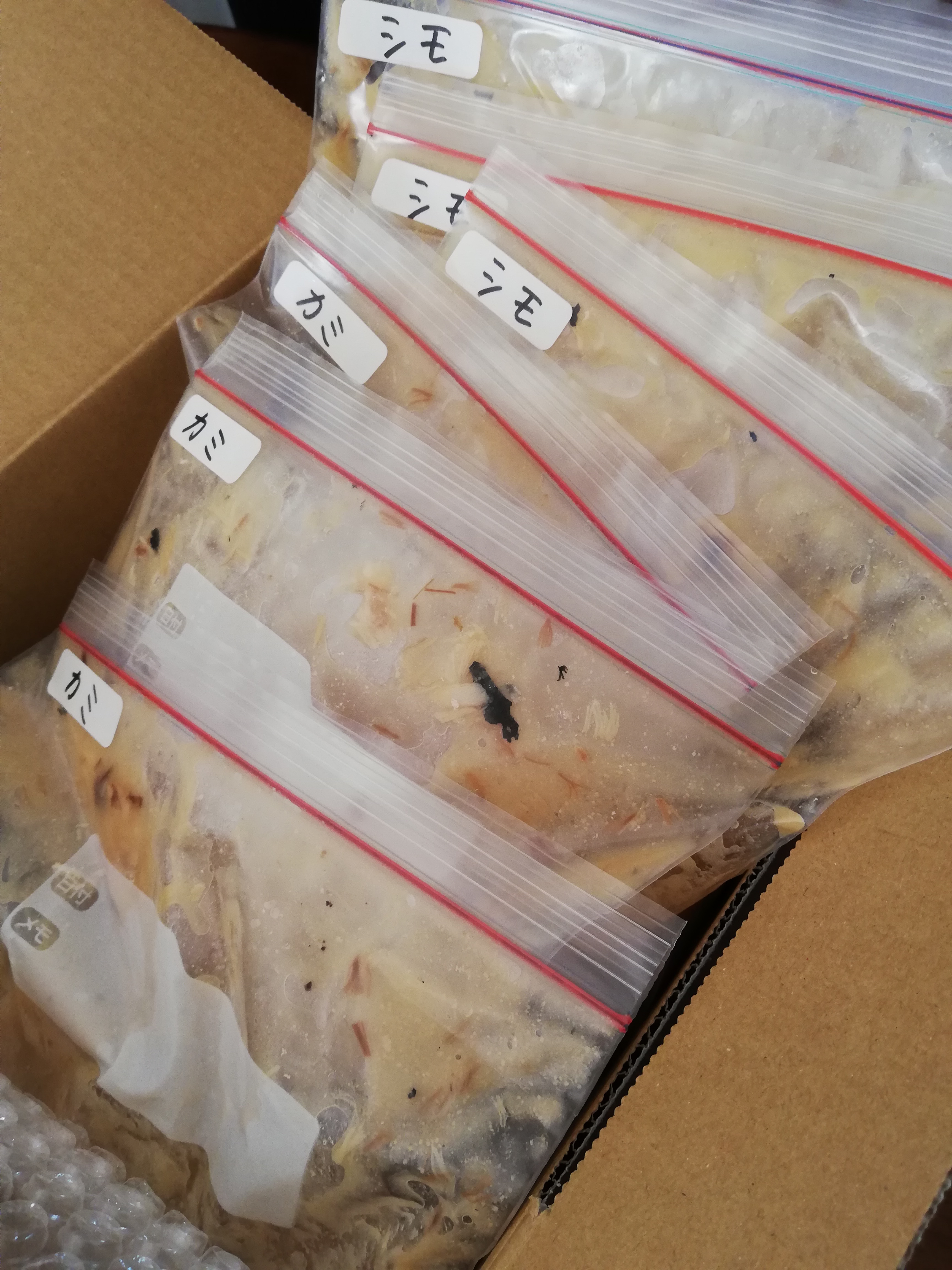 奥渋(渋谷の奥)にある魚屋の「さばの味噌」のセットです。柔らかく煮込まれたさばは、骨まで丸ごと食べられます。カミは、サバの頭よりの部位で、脂がたっぷりでトロっとした食感。シモはしっぽよりの部位で、身の弾力が感じられ、さばの旨味を感じられます。同じさばでありながら2種の味わいを楽しめるセットです。メディアで紹介された人気の商品です。